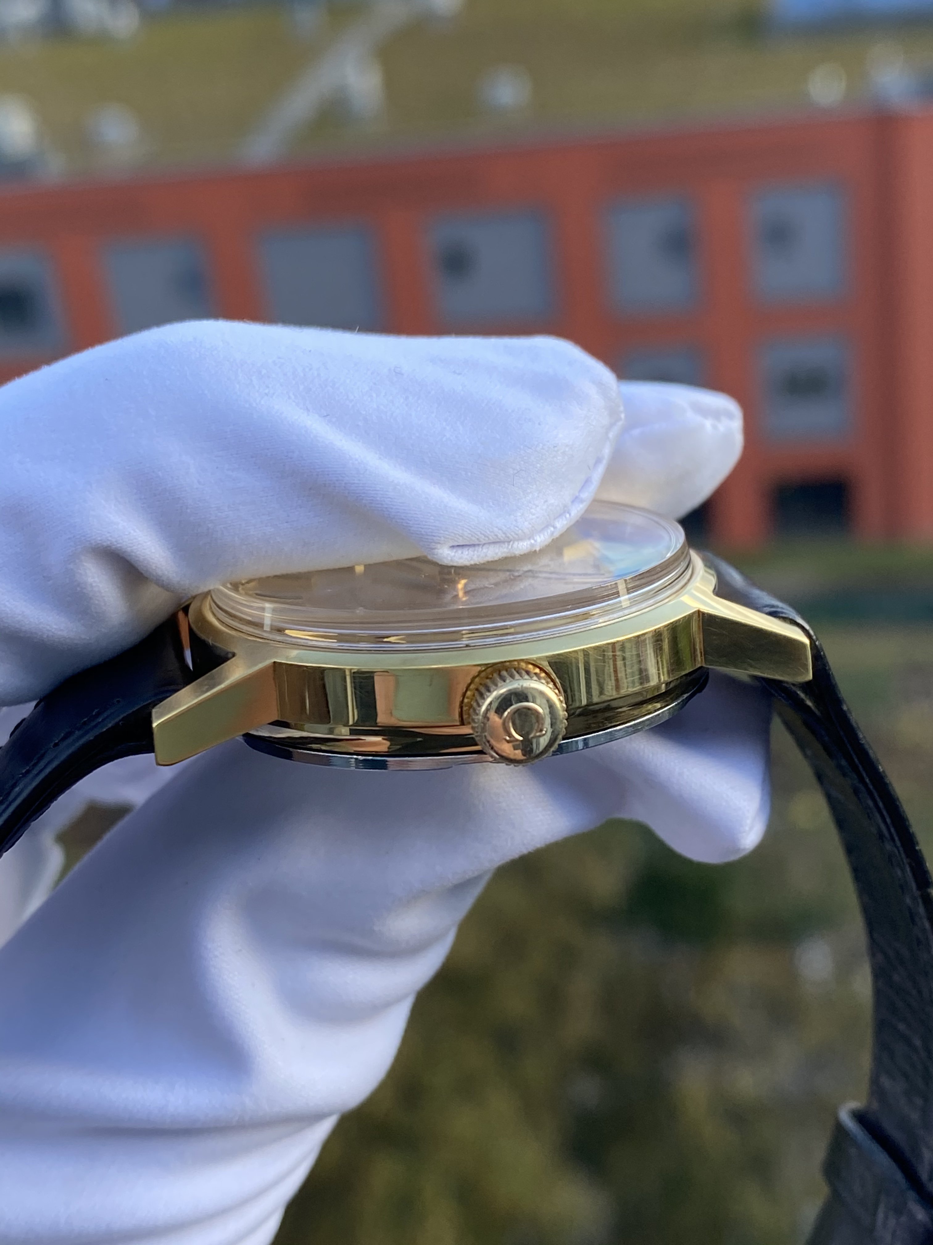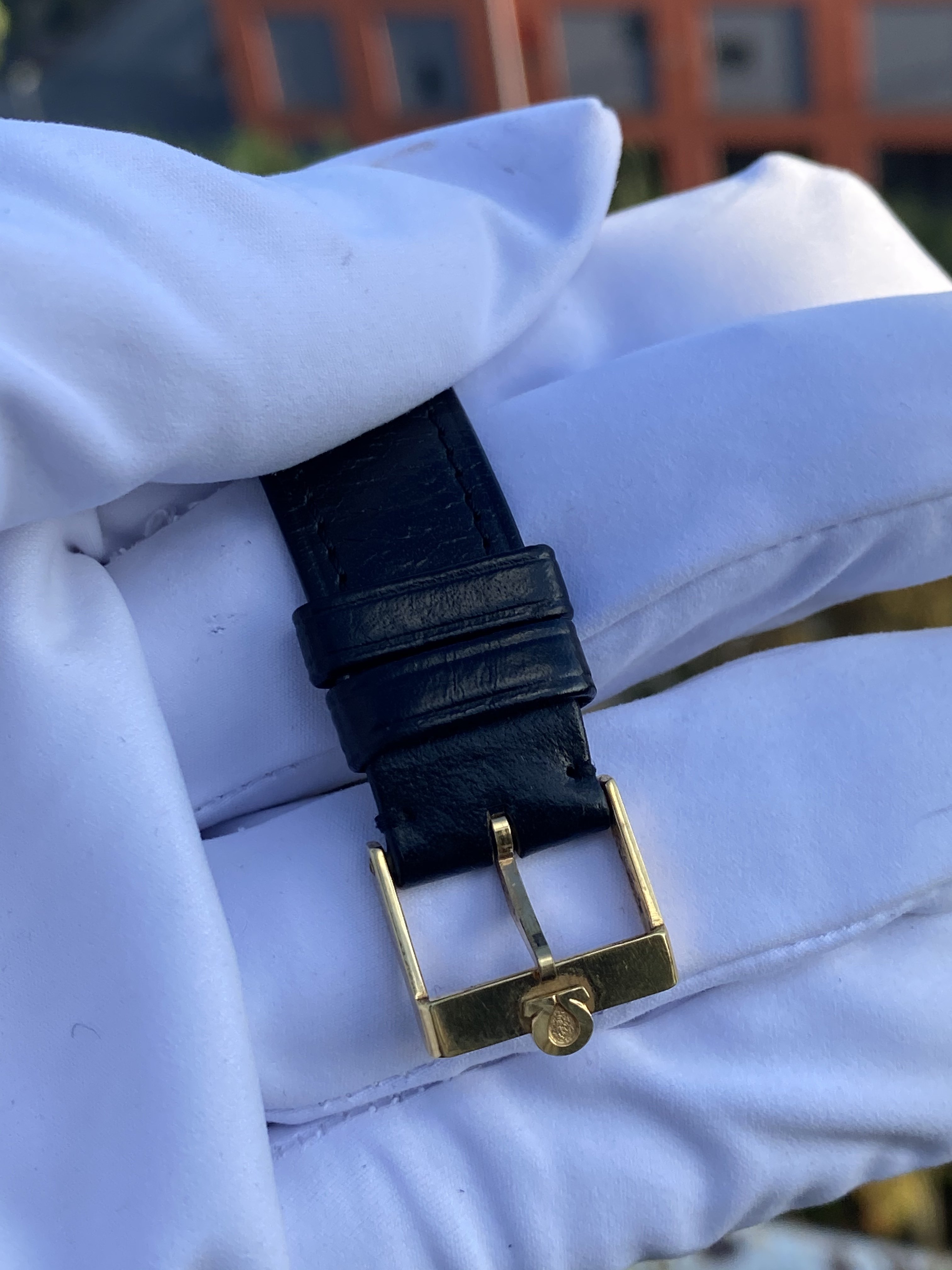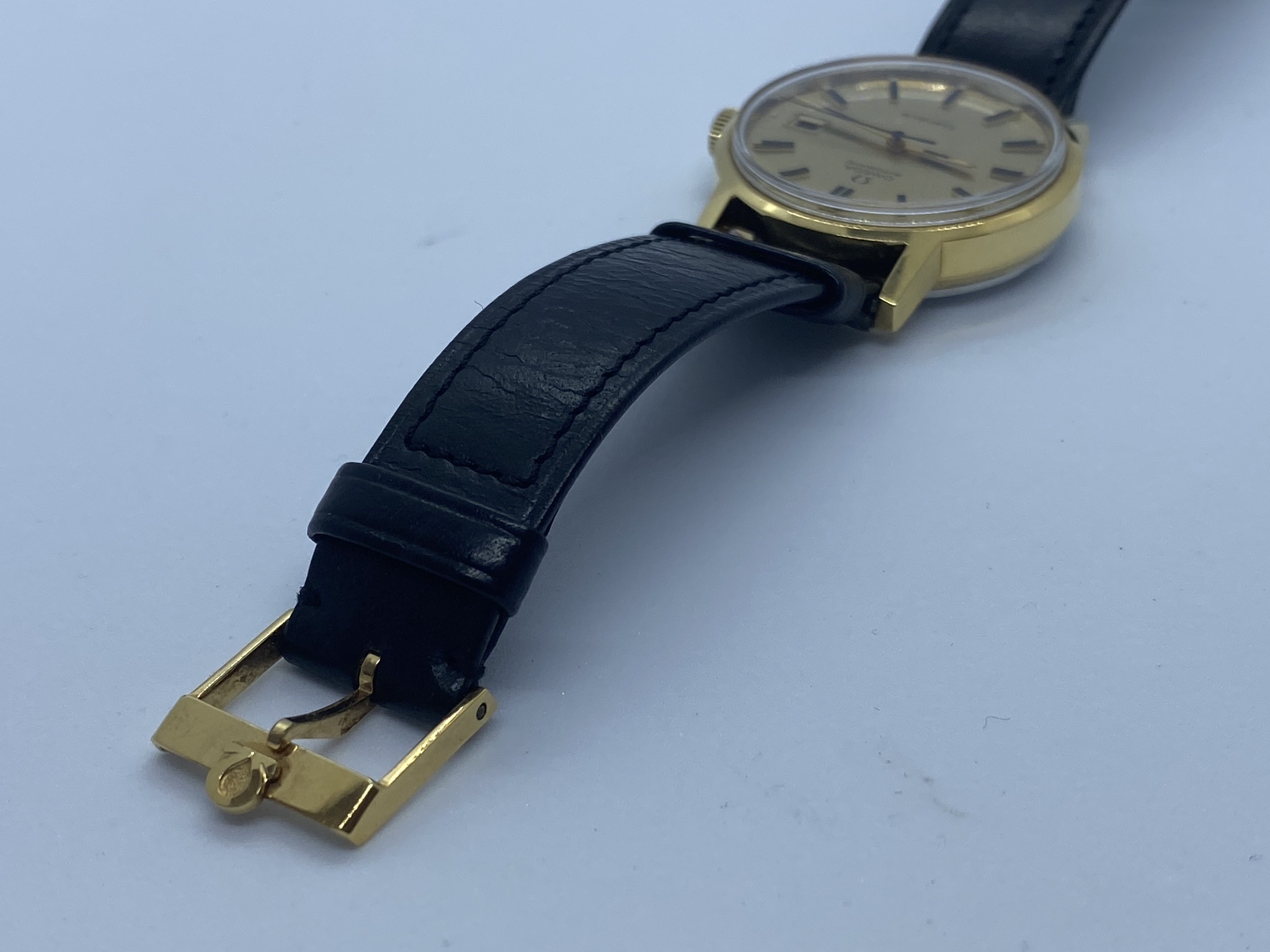 For the watch as displayed, including the Omega-strap and correct buckle for the Genève, I’m asking