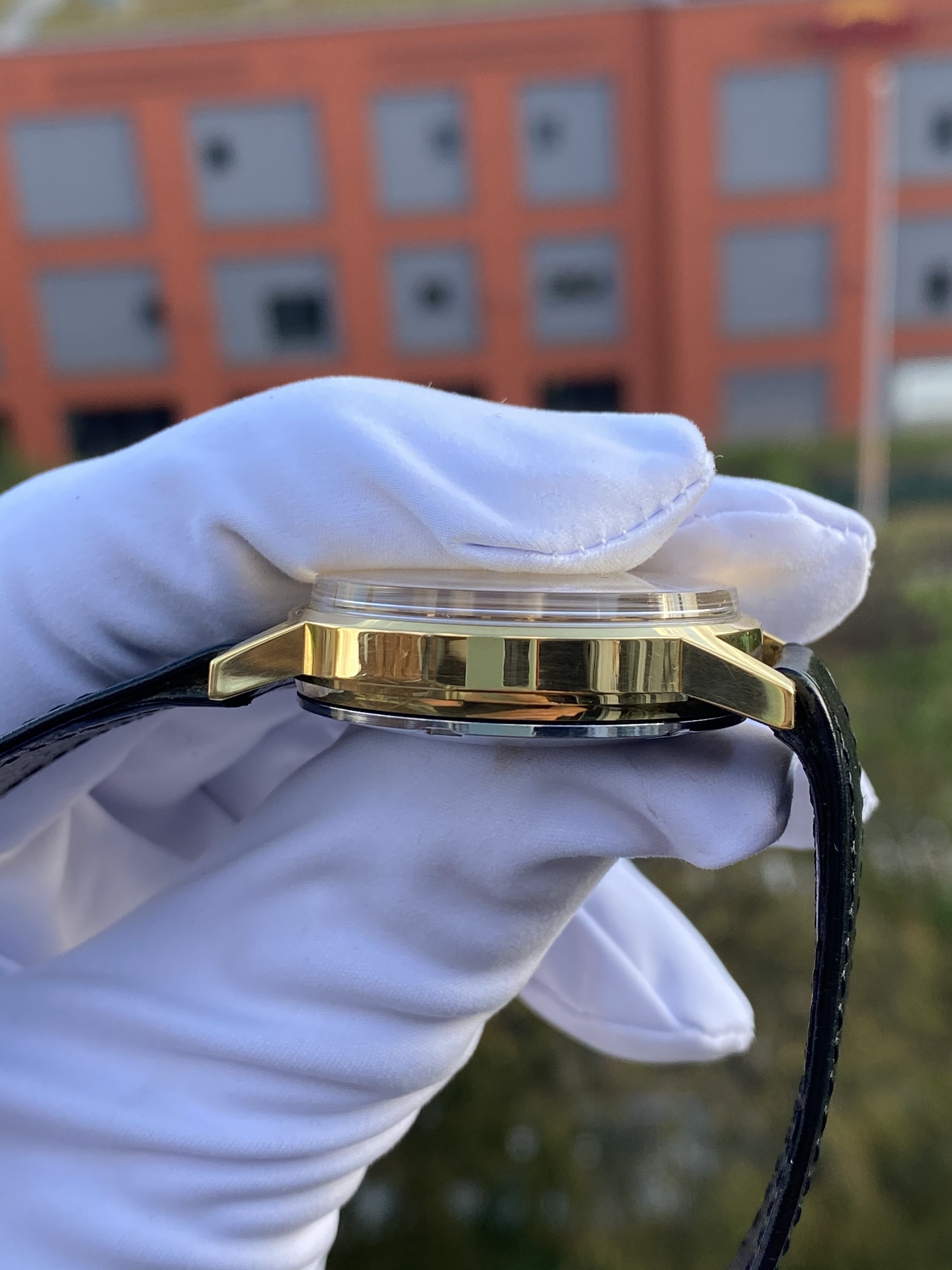 I’d say it’s in a very good condition, only very small scratches on the case, please refer to the pictures for details - they are not manipulated and part of the description. The most traces of time can be found on the case back in form of small scratches from opening, (but it is also in good shape, including the brushing in the center circle) and some wear on the crown.