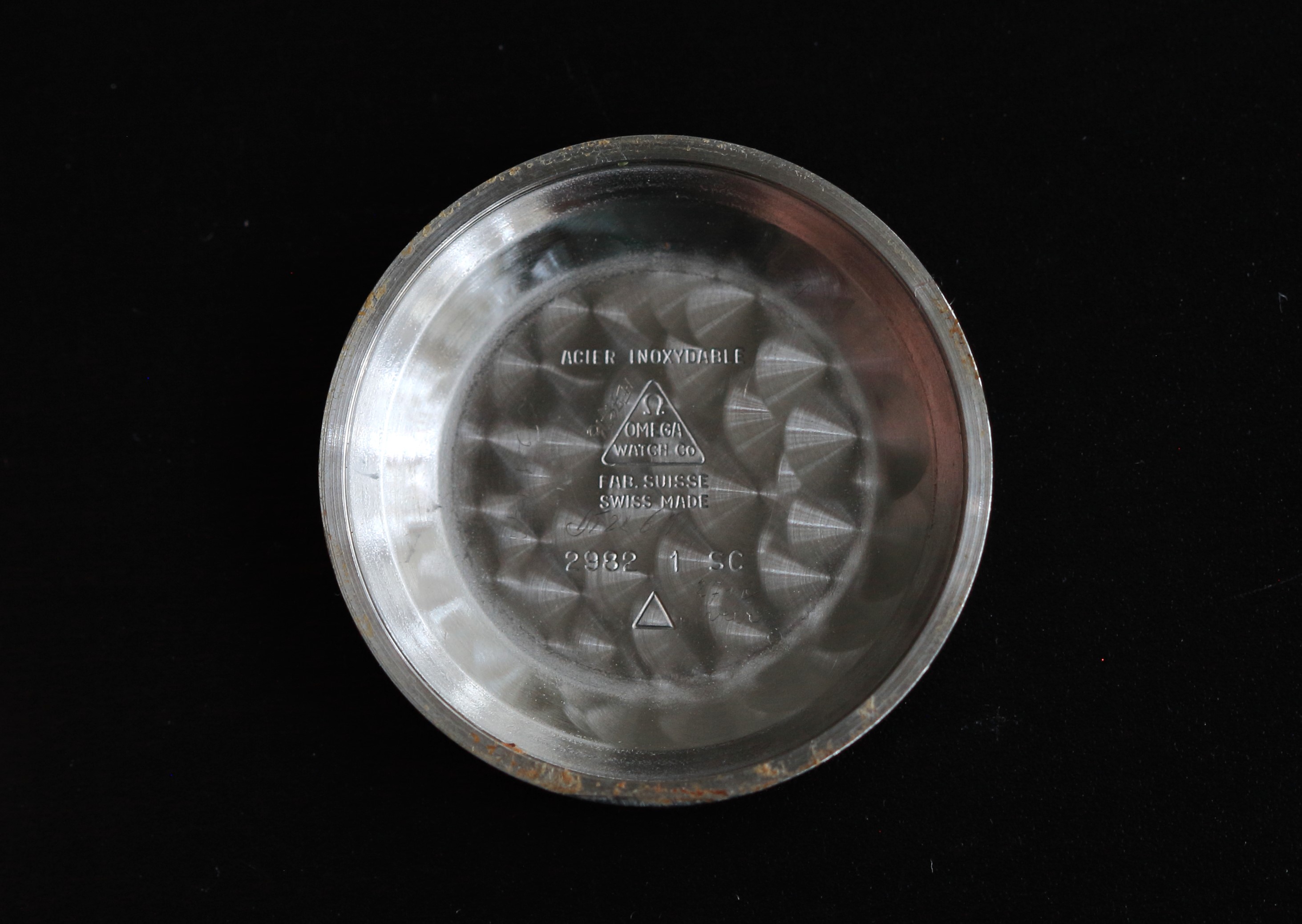 The 34.5 mm steel case is in very good shape retaining the distinctive facets on the lugs. One small ding on the bezel. Original crown.