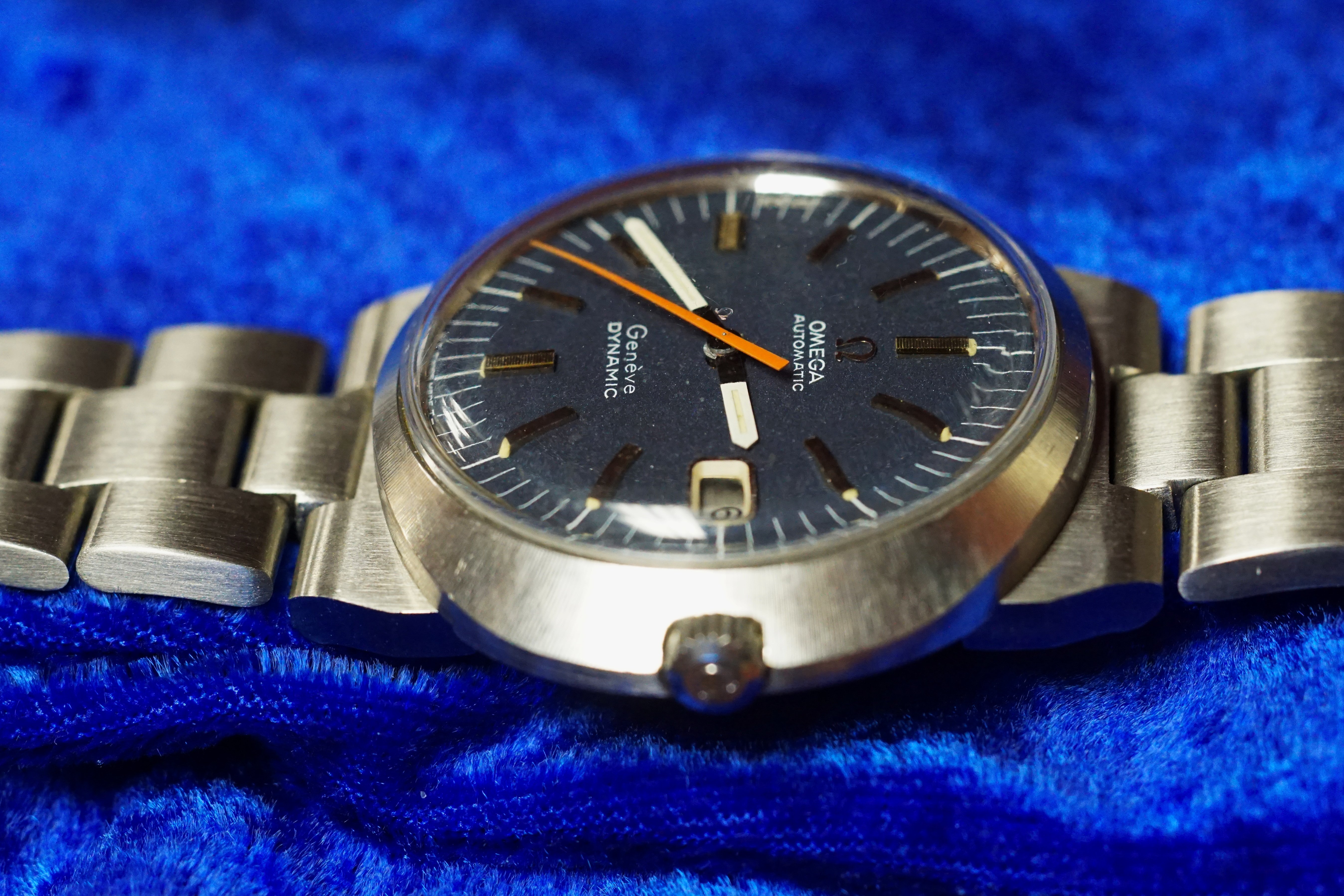The Corfam strap that came with this watch was completely wore out. I have purchased a few of the reproductions, but they will only fit my wrist at the last hole, and are uncomfortable. The bracelet that I have fitted to this watch is a solid stainless reproduction that I source from the UK. It is a perfect fit to the retaining ring and slot on the case back. And it is demonstrably better than the Omega version. Granted, the original was from an era where most bracelets had folded links but, I own one on another Dynamic (too short of course), not only is it loose and jangly, the center links can be easily dented. Also it appears that you may have to unfold the links to size it. So I am perfectly content to sport this with a faux bracelet. I will provide an email to the seller for anyone who asks.