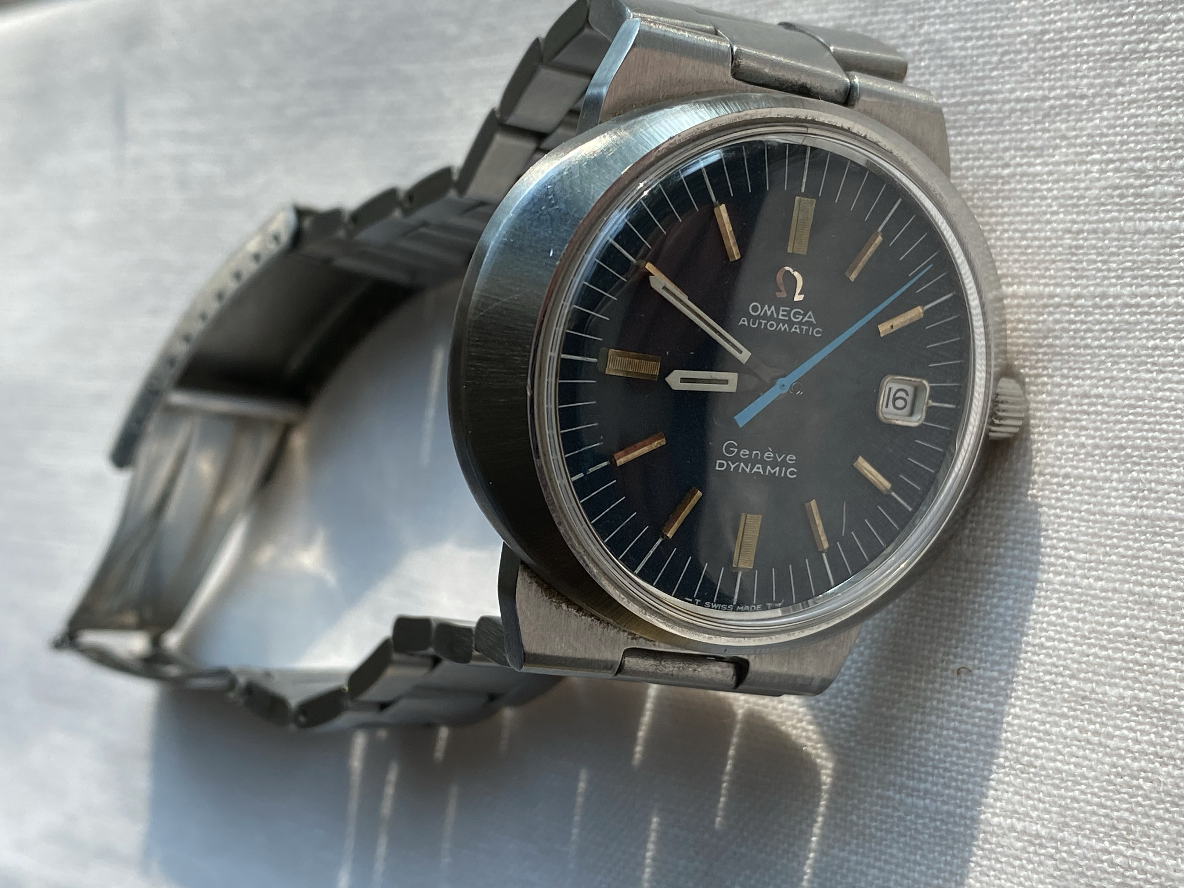 ·Hello, Forum Friends! Today I ask your consideration for a beautiful example of Nixon-era design, this Omega Genéve Dynamic. The watch has a beautiful, subtle blue, somewhat textured dial with a blue seconds hand and a quick-set date complication. This was a very comfortable and fun watch to wear and drew lots of compliments.