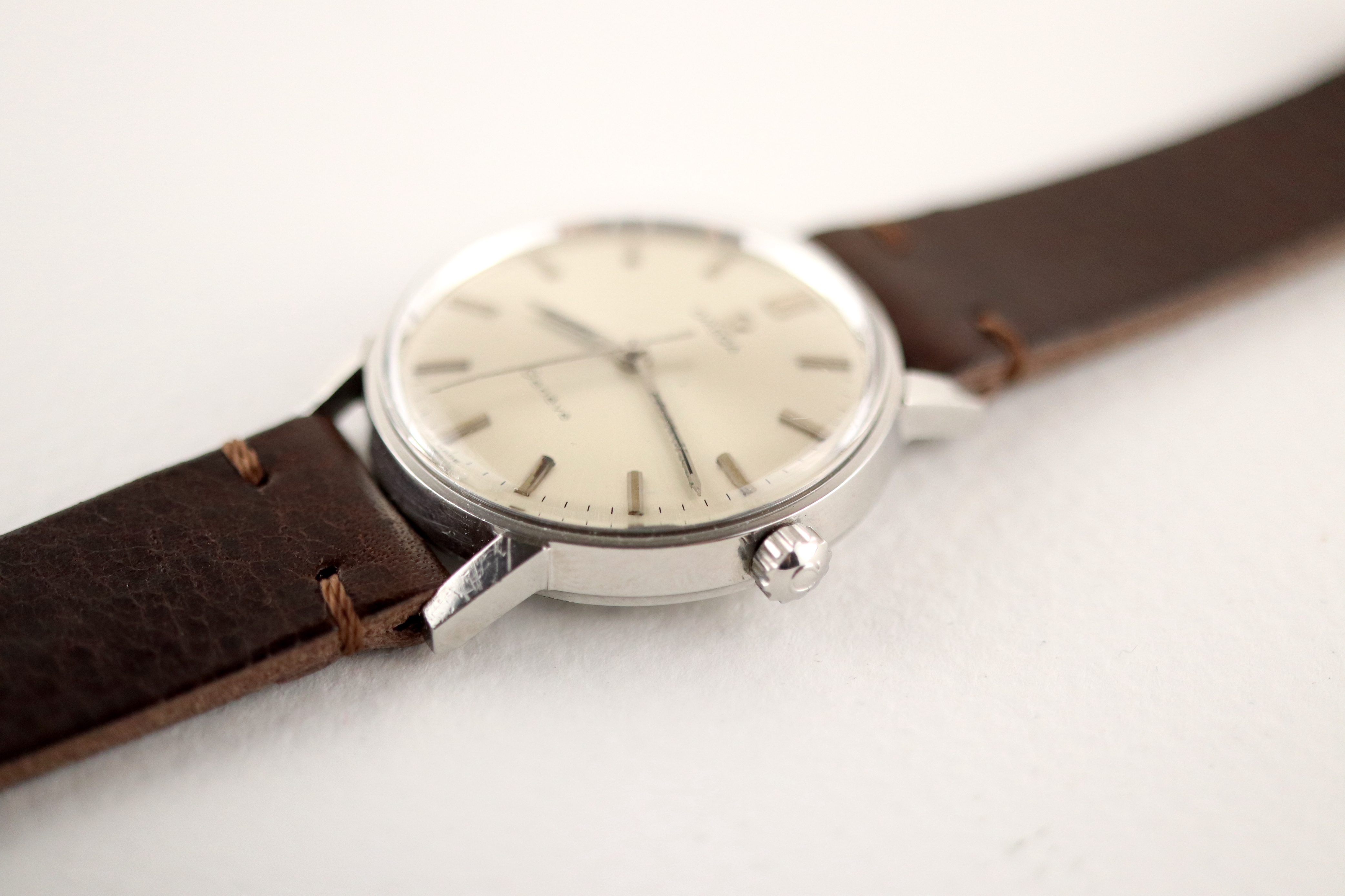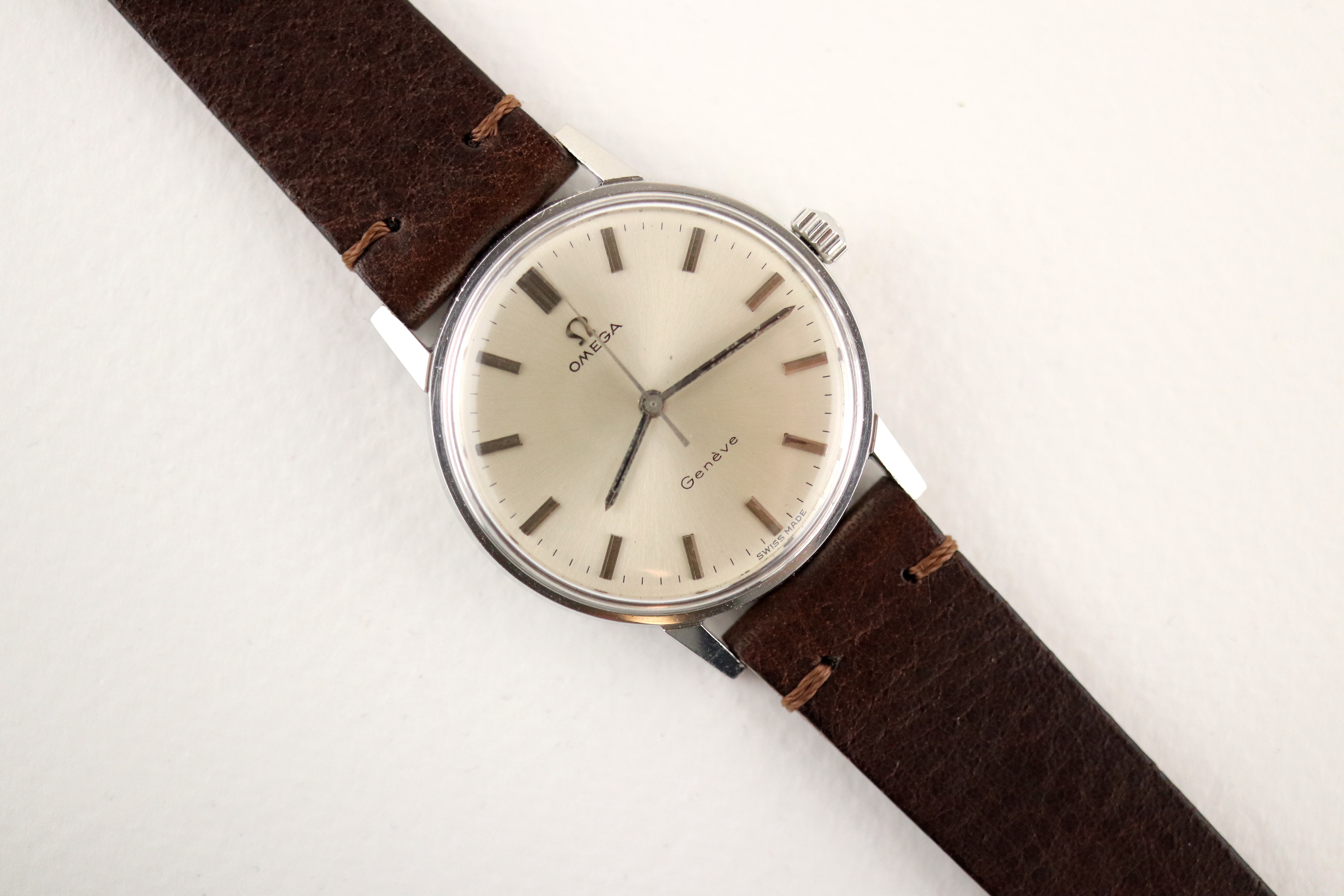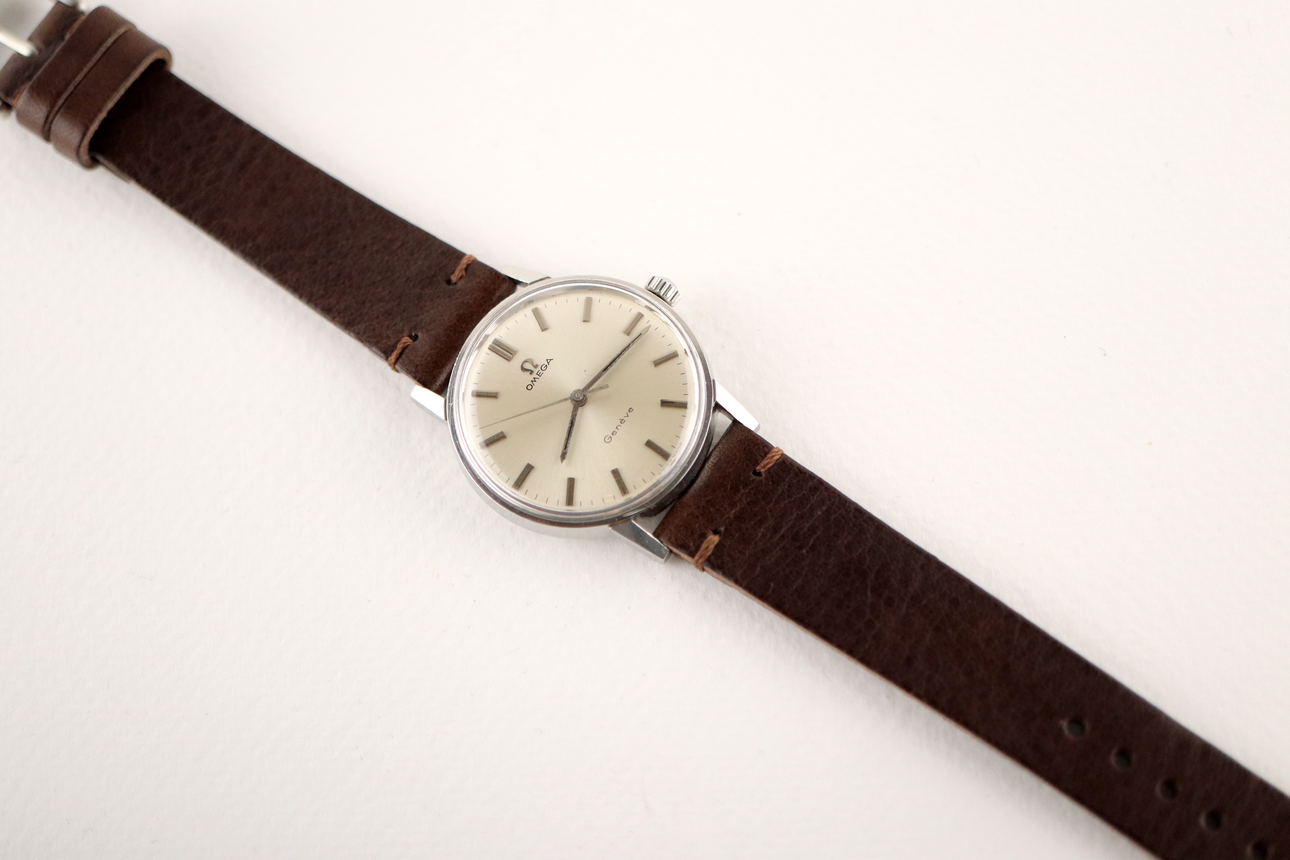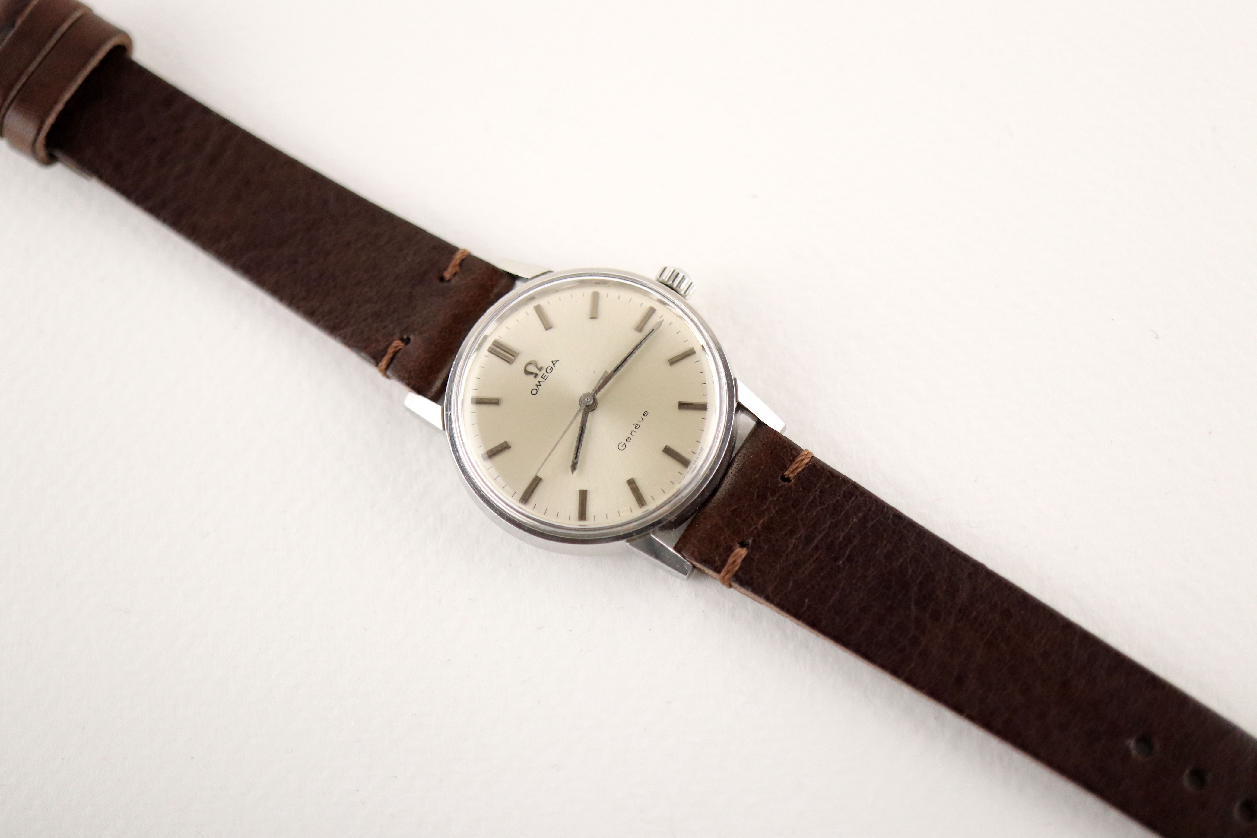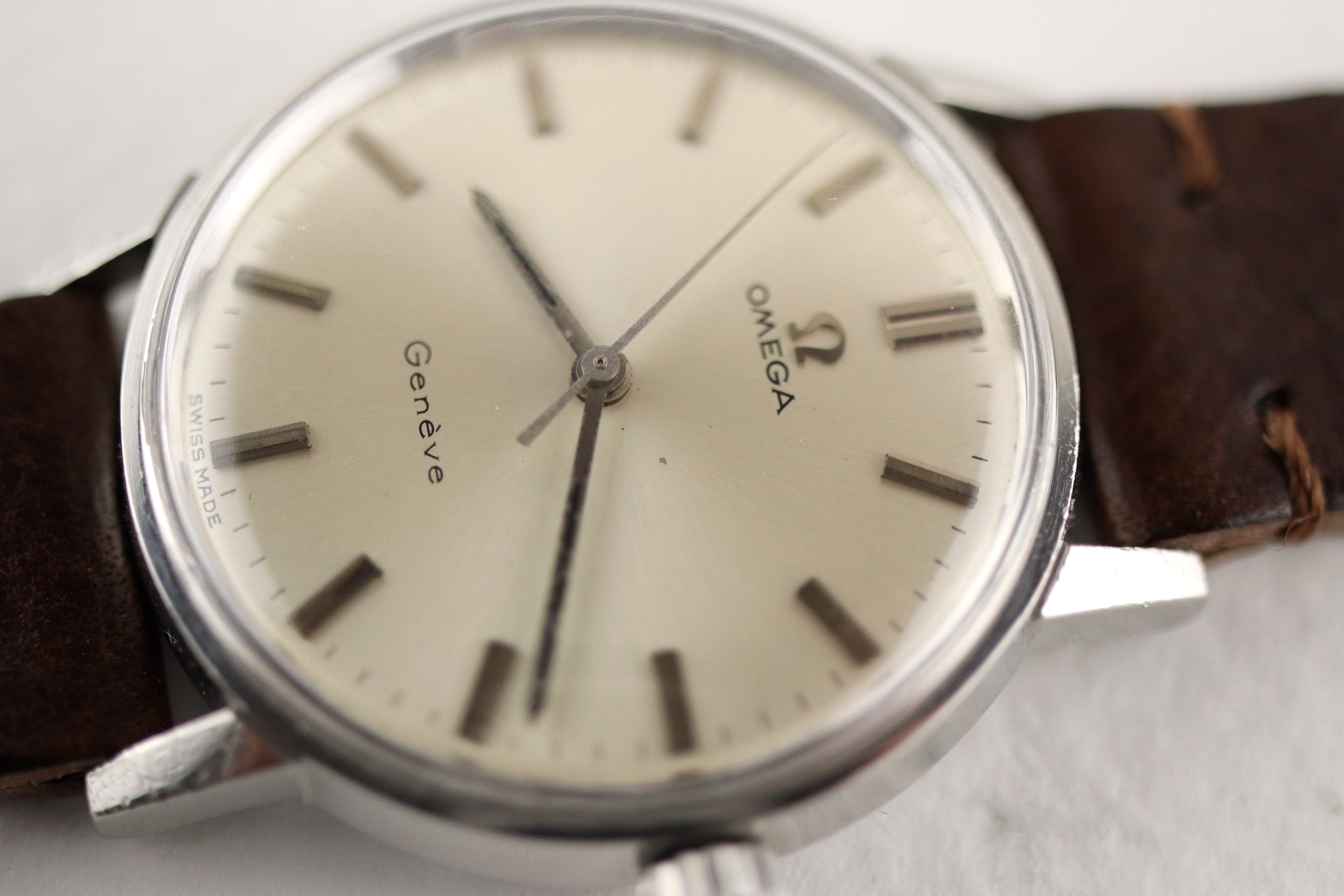 ·For sale, I have an Omega Geneve reference # 135.011. It has the Caliber 601 which is a hand-wind movement. There is a small spot on the dial that I tried to show in the pictures. Watch has just been serviced and comes with a 2-year warranty. The watch will come with your choice of either a new brown or black leather strap.