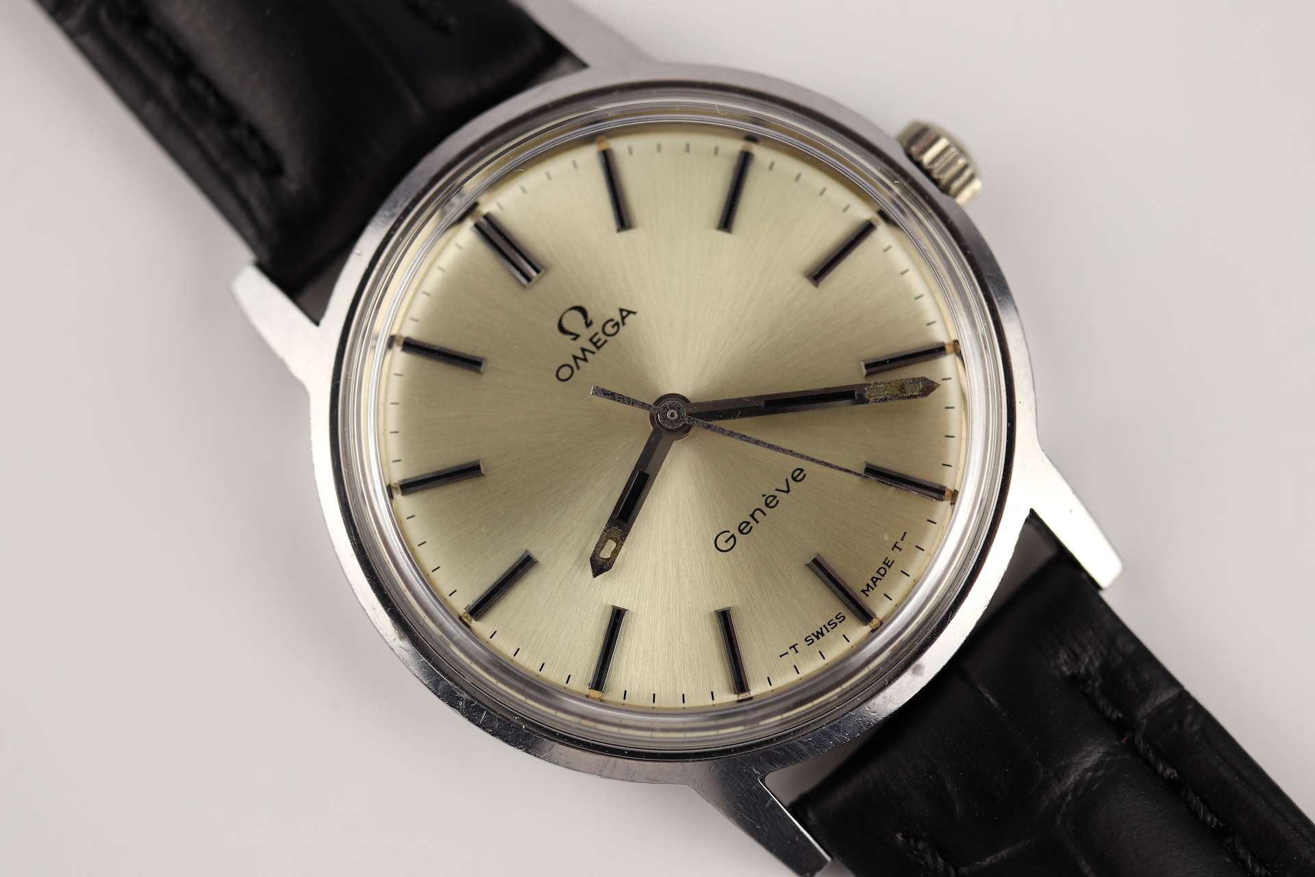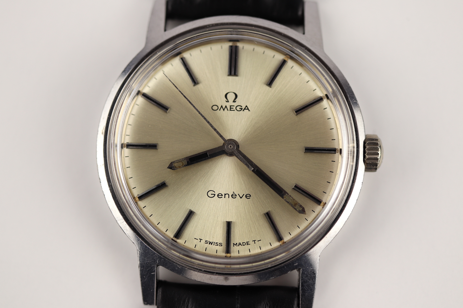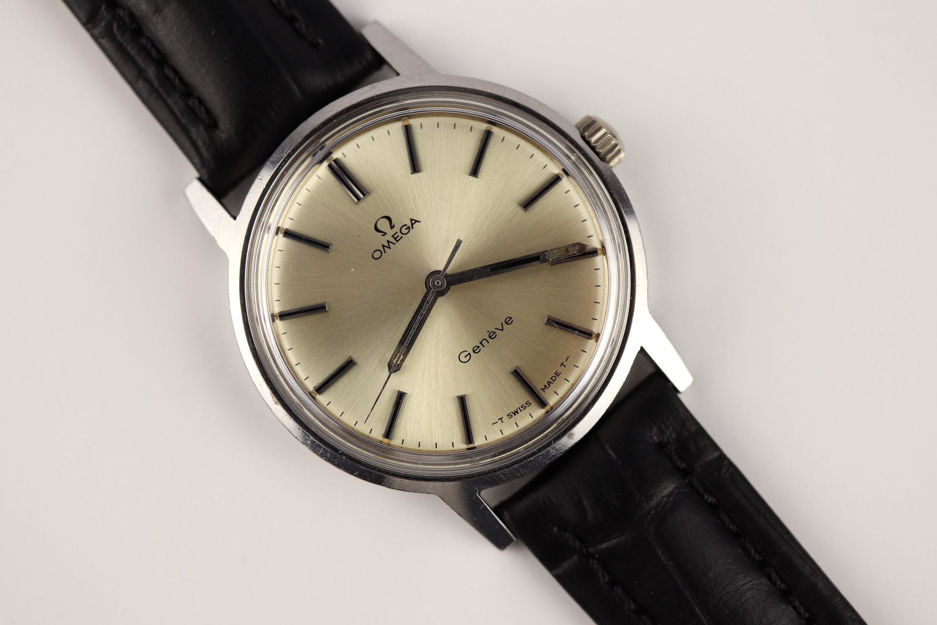 ·For sale, I have an Omega Geneve Ref: 135.070. It has the Caliber 601 which is a mechanical movement. Case measure 35mm without the crown. The watch was just serviced and is working fine. Crystal and stem were replaced. The serial number would suggest the watch is from 1970. The watch will come on a new leather strap.