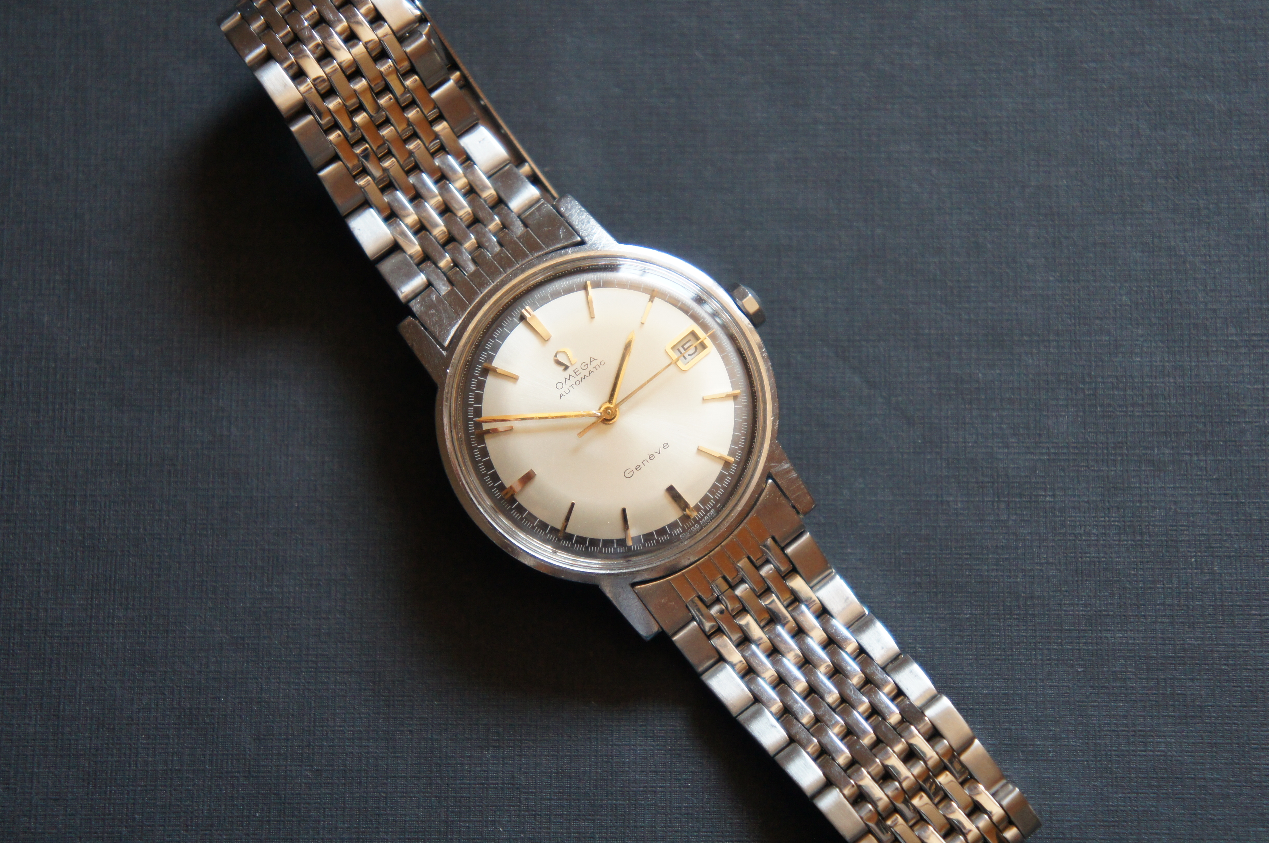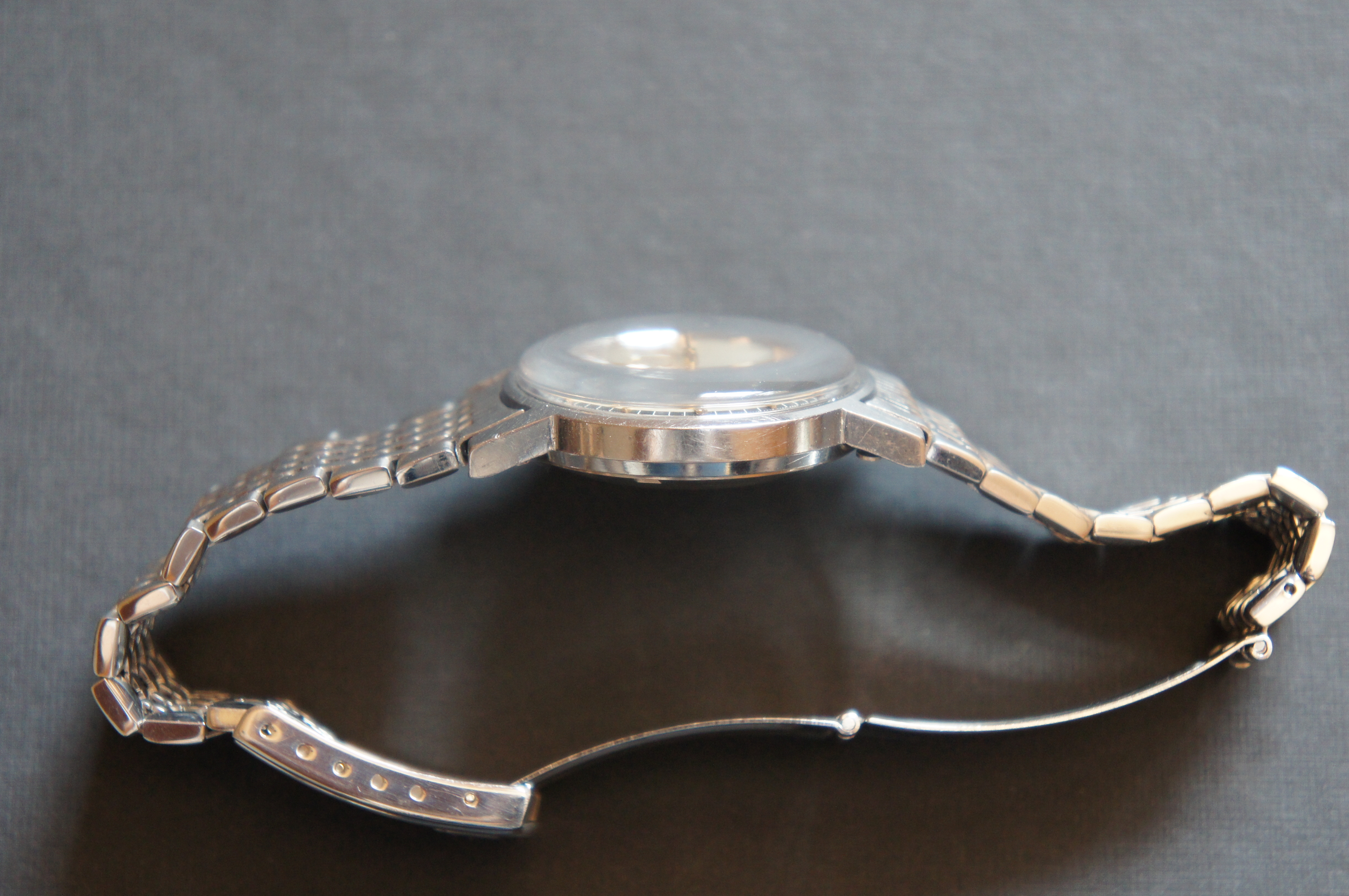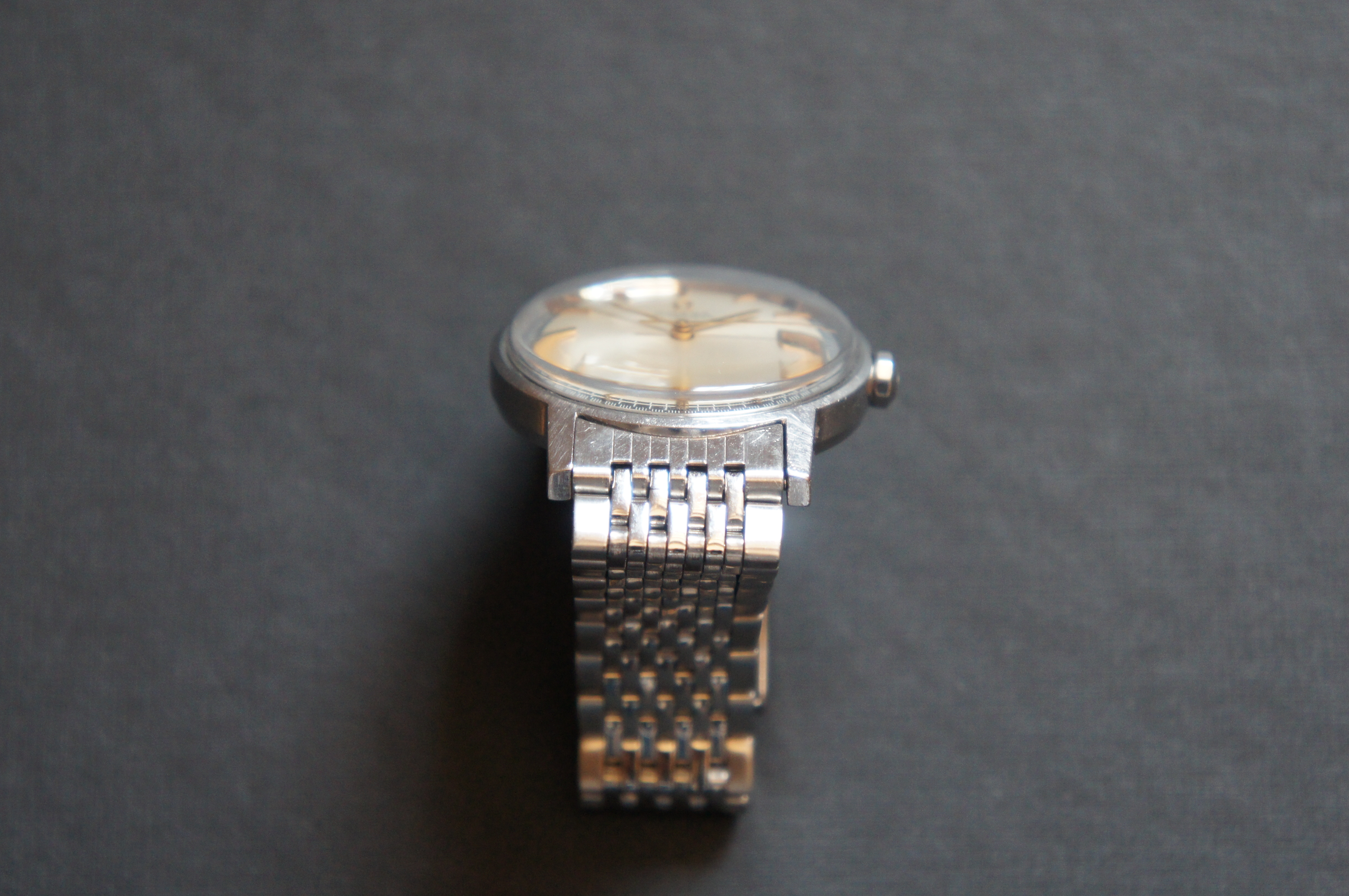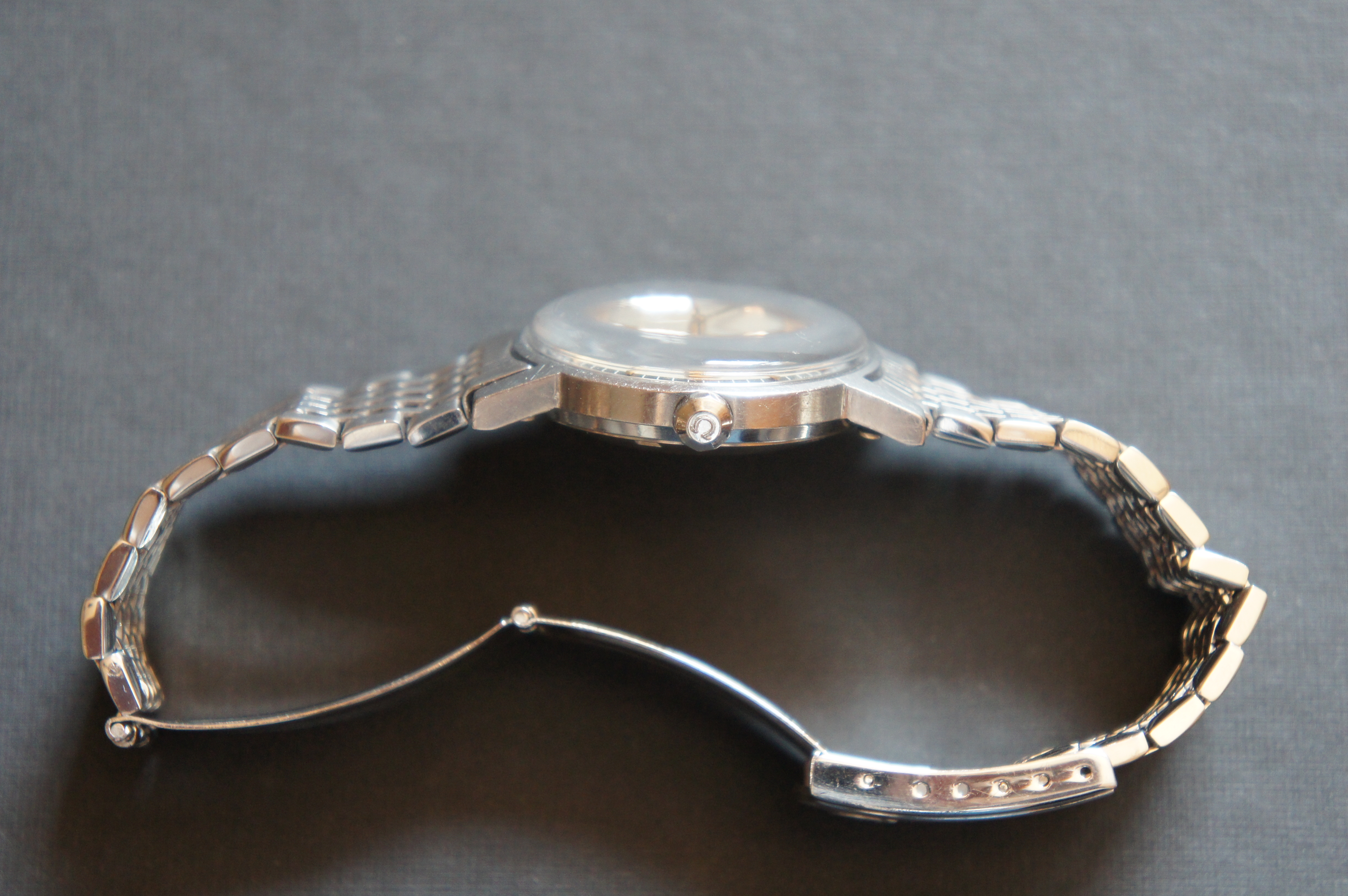 I'm selling this very interesting Omega with BOR. As you can see from the pics, the dial looks lovely and is quite rare, in pristine condition and has very attractive gold indexes. The case has only minor wearing signs with very sharp edges. Bracelet fits a very large wrist and looks very good.