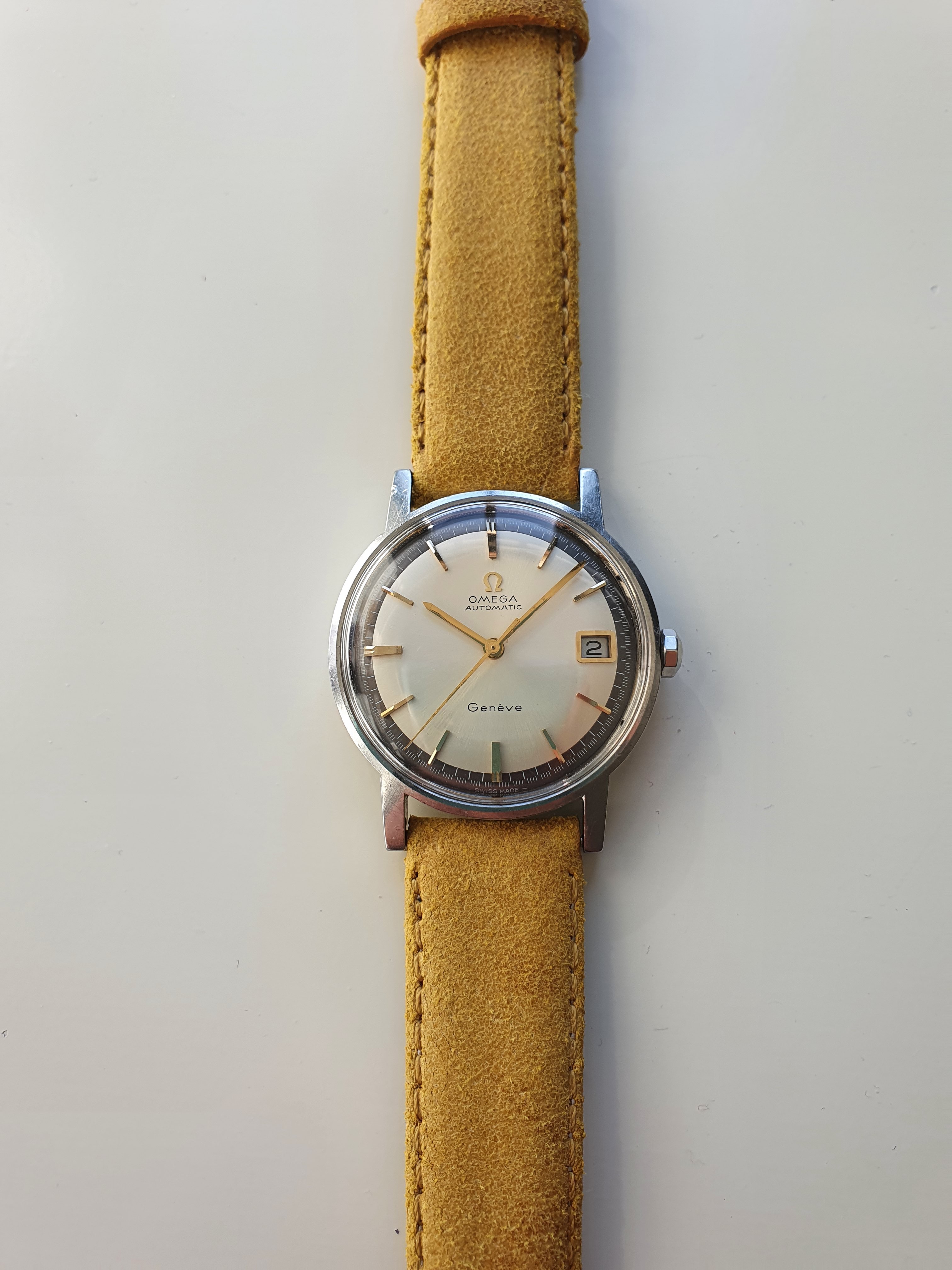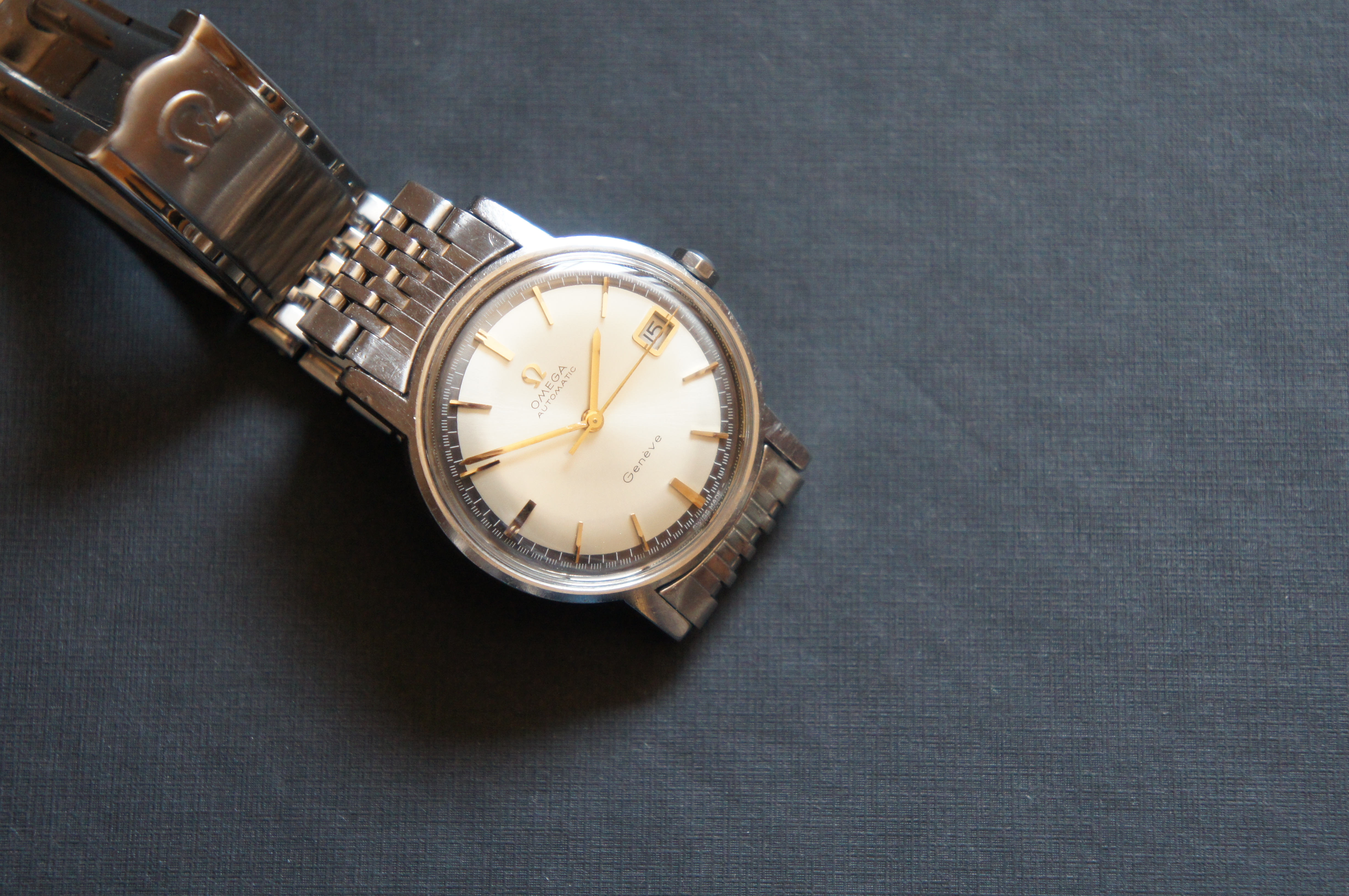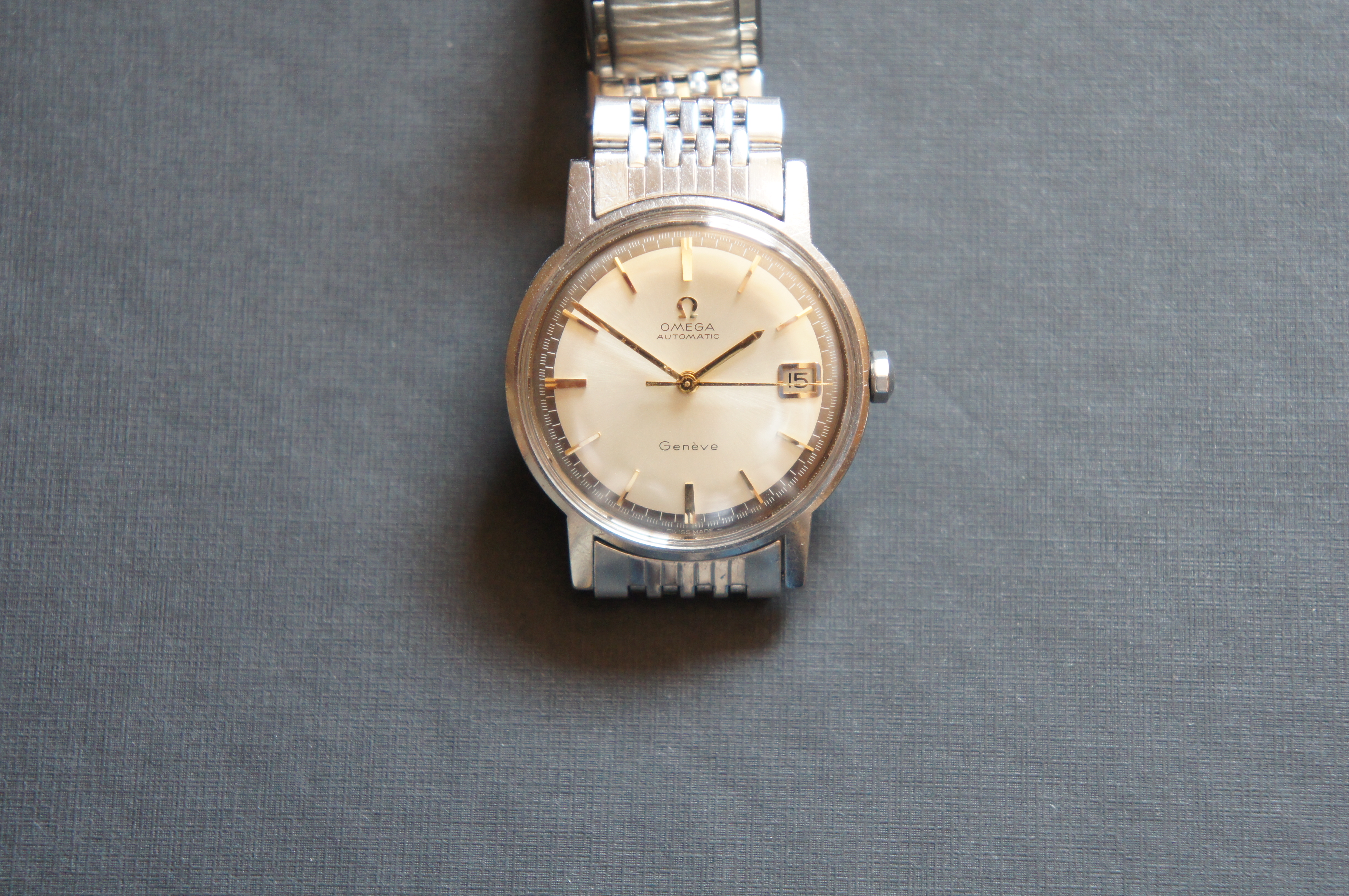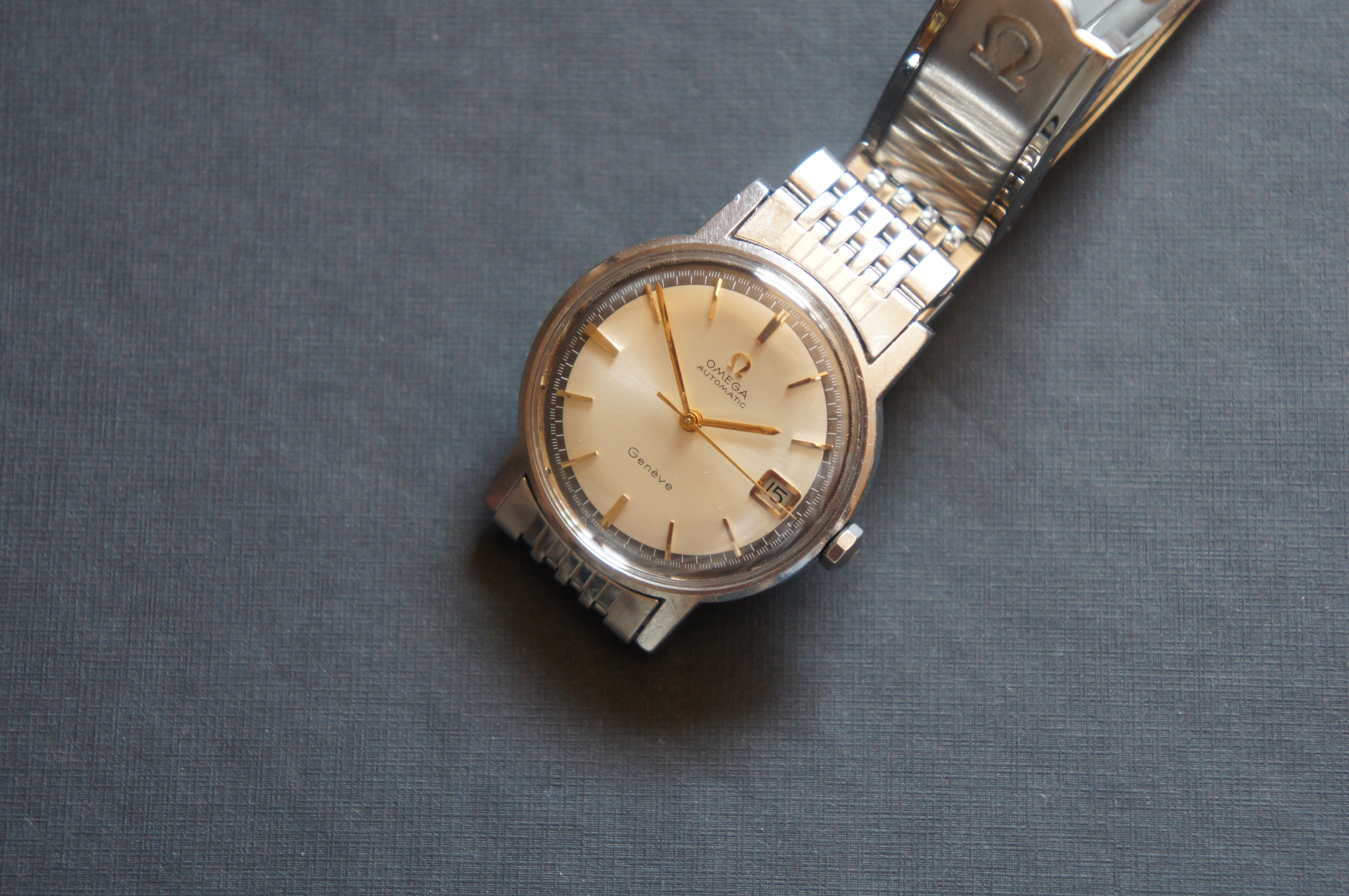 I'm selling this very interesting Omega with BOR. As you can see from the pics, the dial looks lovely and is quite rare, in pristine condition and has very attractive gold indexes. The case has only minor wearing signs with very sharp edges. Bracelet fits a very large wrist and looks very good.