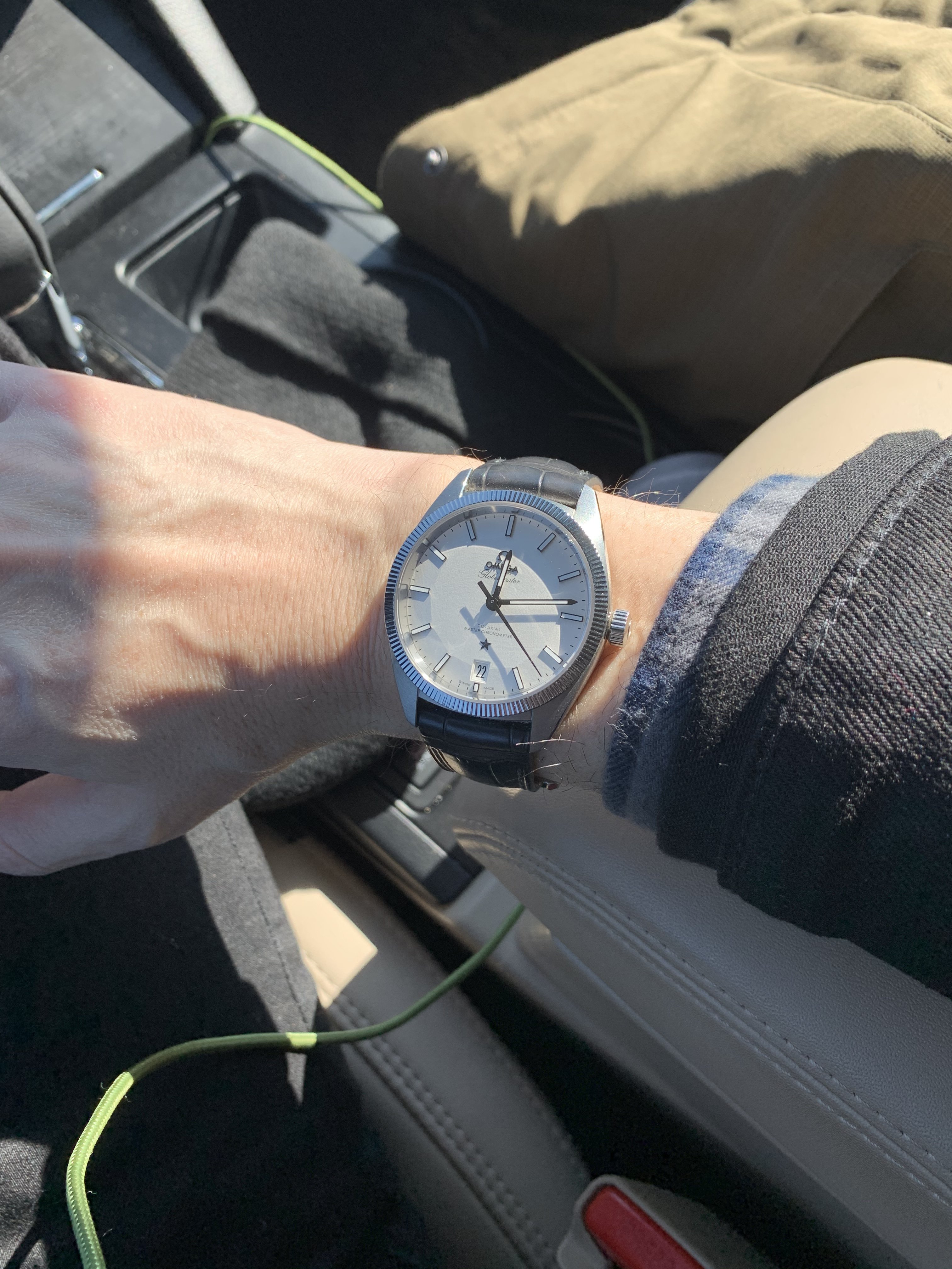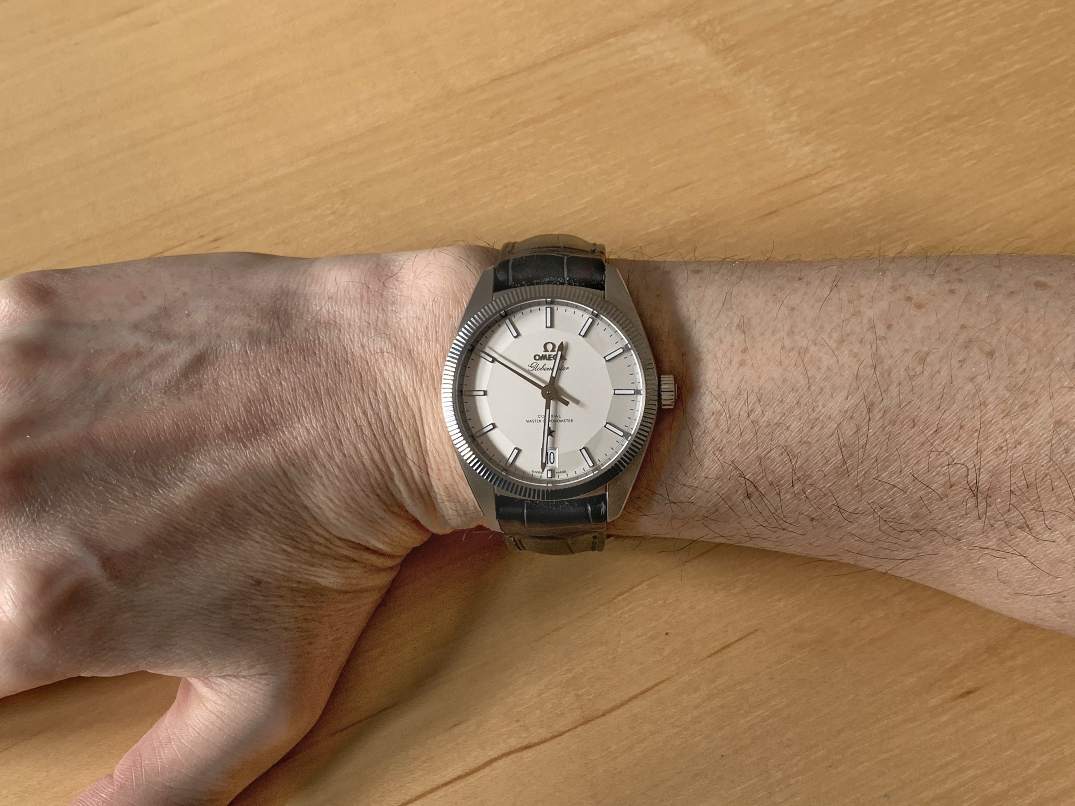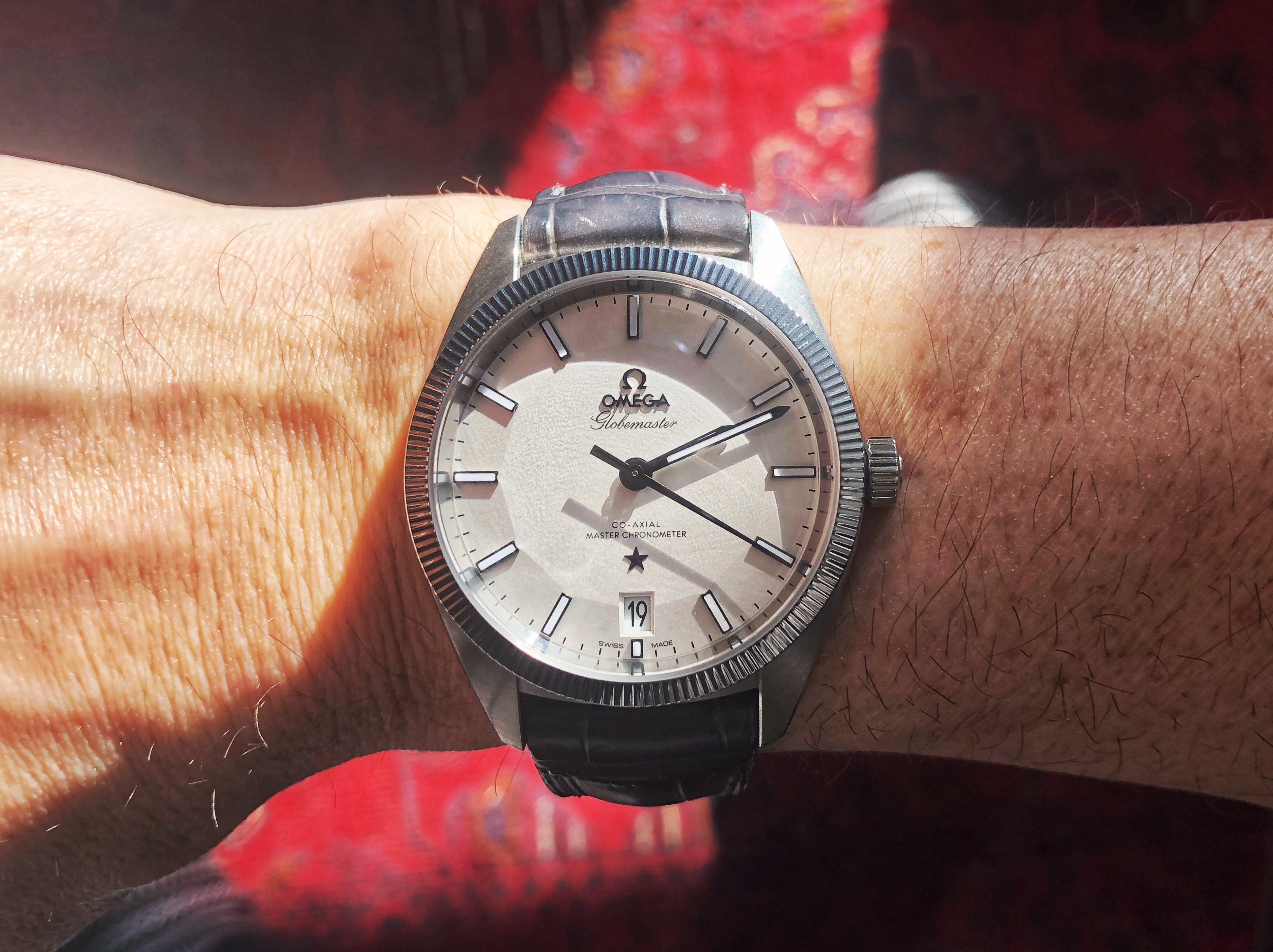 To me the dial looks silver under natural light. That makes sense to me as natural like tends to have a blue tint to it, so will bring out the cooler tones in colors. There’s also differences between a sunny day and overcast, but it definitely looks silver in natural light to me. It really is subject to change depending on the lighting. It looks creamy under warm white light, and looks a cool crisp silvery white under florescent light. I’ve included a bunch of my own photos to try and capture the watch under different light from different angles, but I feel you need really get a true sense until you can see it in person. Unfortunately the bright lights in the OB tend to wash the dial out. I remember being in the OB wondering why the dial looked so different than all the promotional photos.