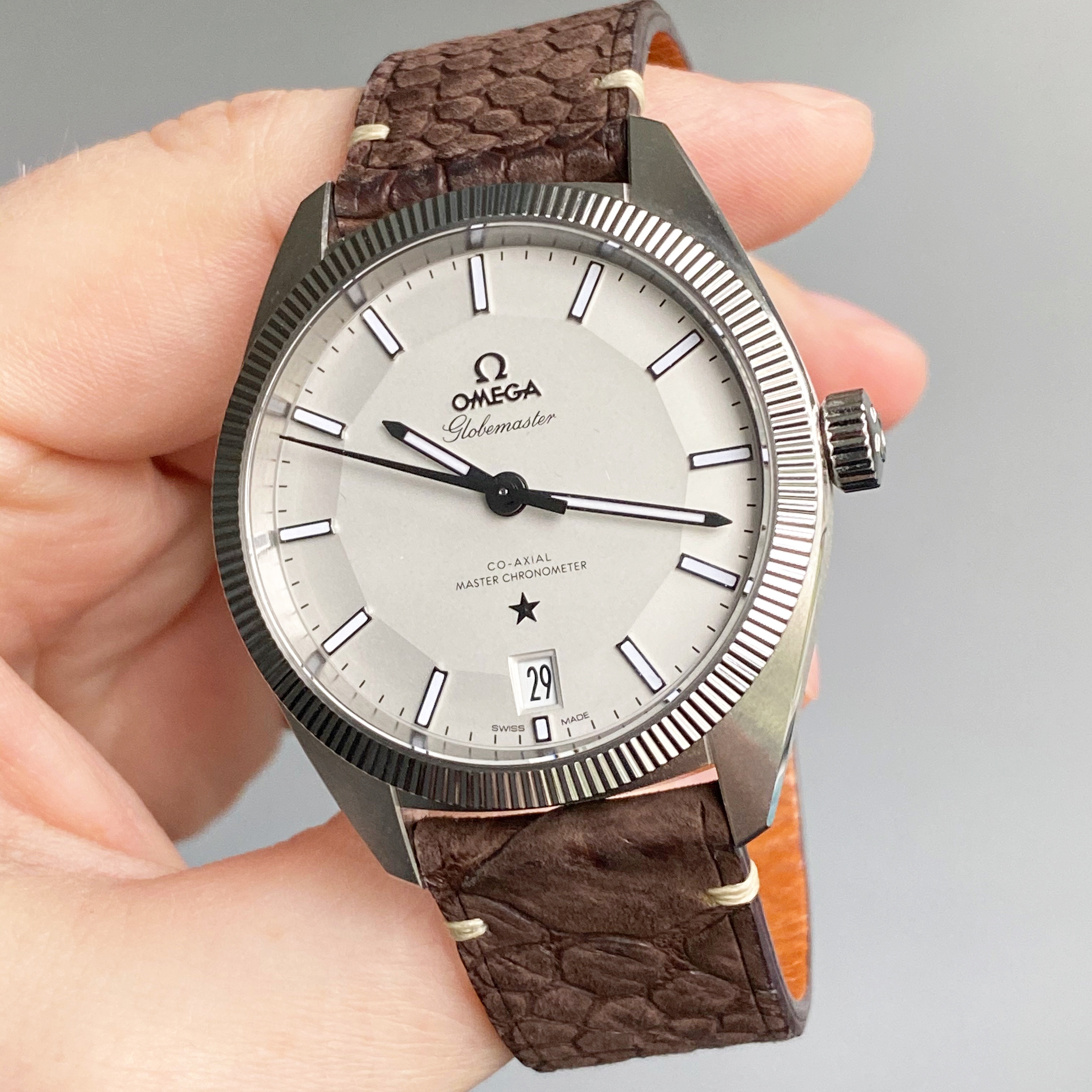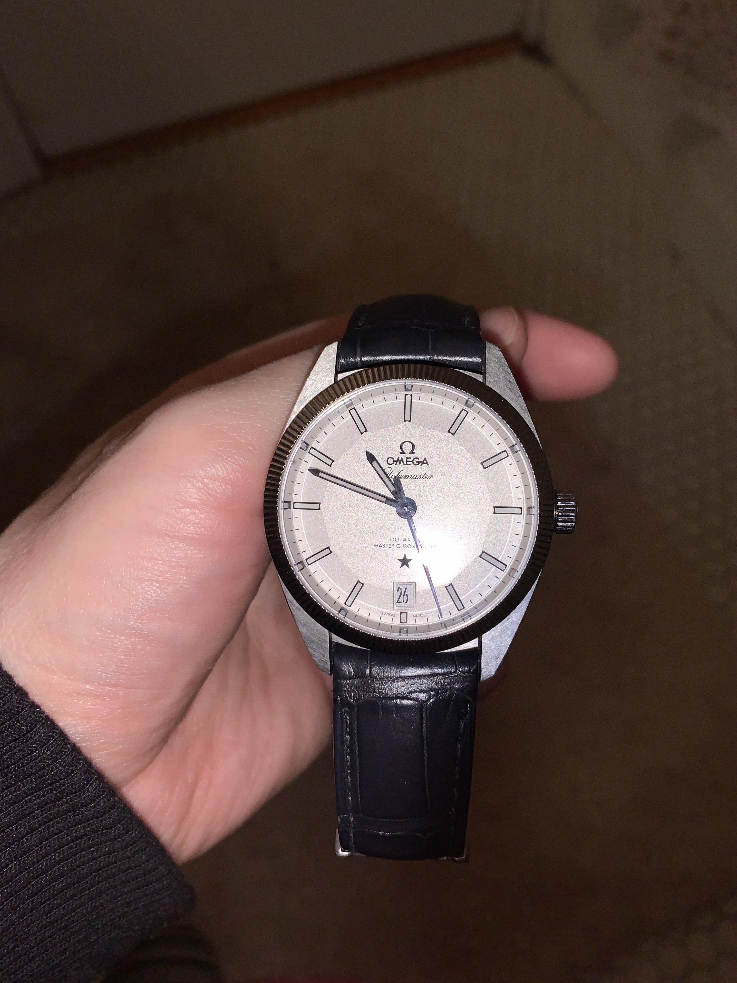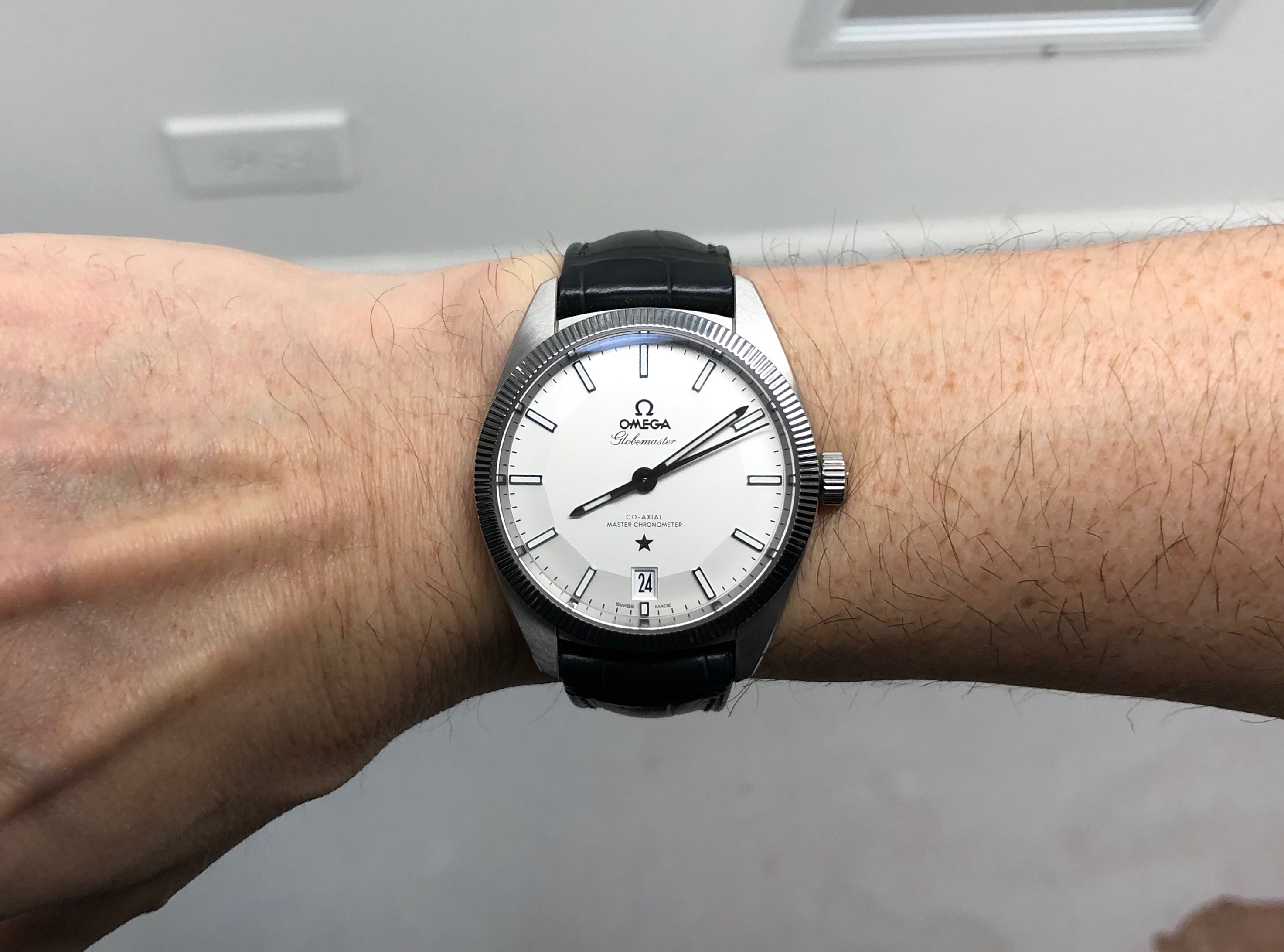 To me the dial looks silver under natural light. That makes sense to me as natural like tends to have a blue tint to it, so will bring out the cooler tones in colors. There’s also differences between a sunny day and overcast, but it definitely looks silver in natural light to me. It really is subject to change depending on the lighting. It looks creamy under warm white light, and looks a cool crisp silvery white under florescent light. I’ve included a bunch of my own photos to try and capture the watch under different light from different angles, but I feel you need really get a true sense until you can see it in person. Unfortunately the bright lights in the OB tend to wash the dial out. I remember being in the OB wondering why the dial looked so different than all the promotional photos.