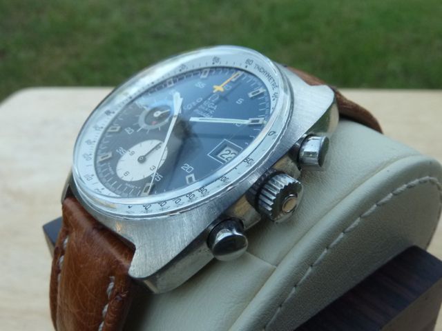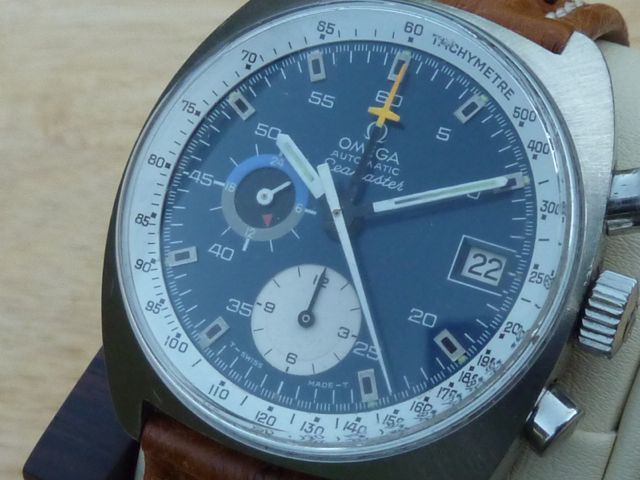 ·For your consideration is a super-nice Omega Seamaster Chronograph with the Cal. 1040 Omega movement. This was Omega’s first automatic chronograph, and it is a very nice model. The dial is striking, and changes blue hue as you rotate the view of the dial. Watch has a few normal wear scratches, but has not been cleaned or polished. The dial is is in super condition. Movement is very clean, with no rust or spots. I can send a picture of the movement if you would like, I forgot to take a picture when I made the others.