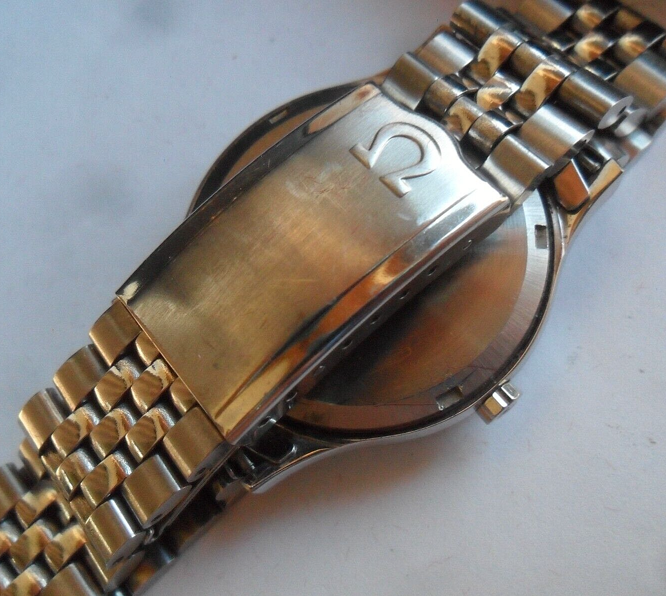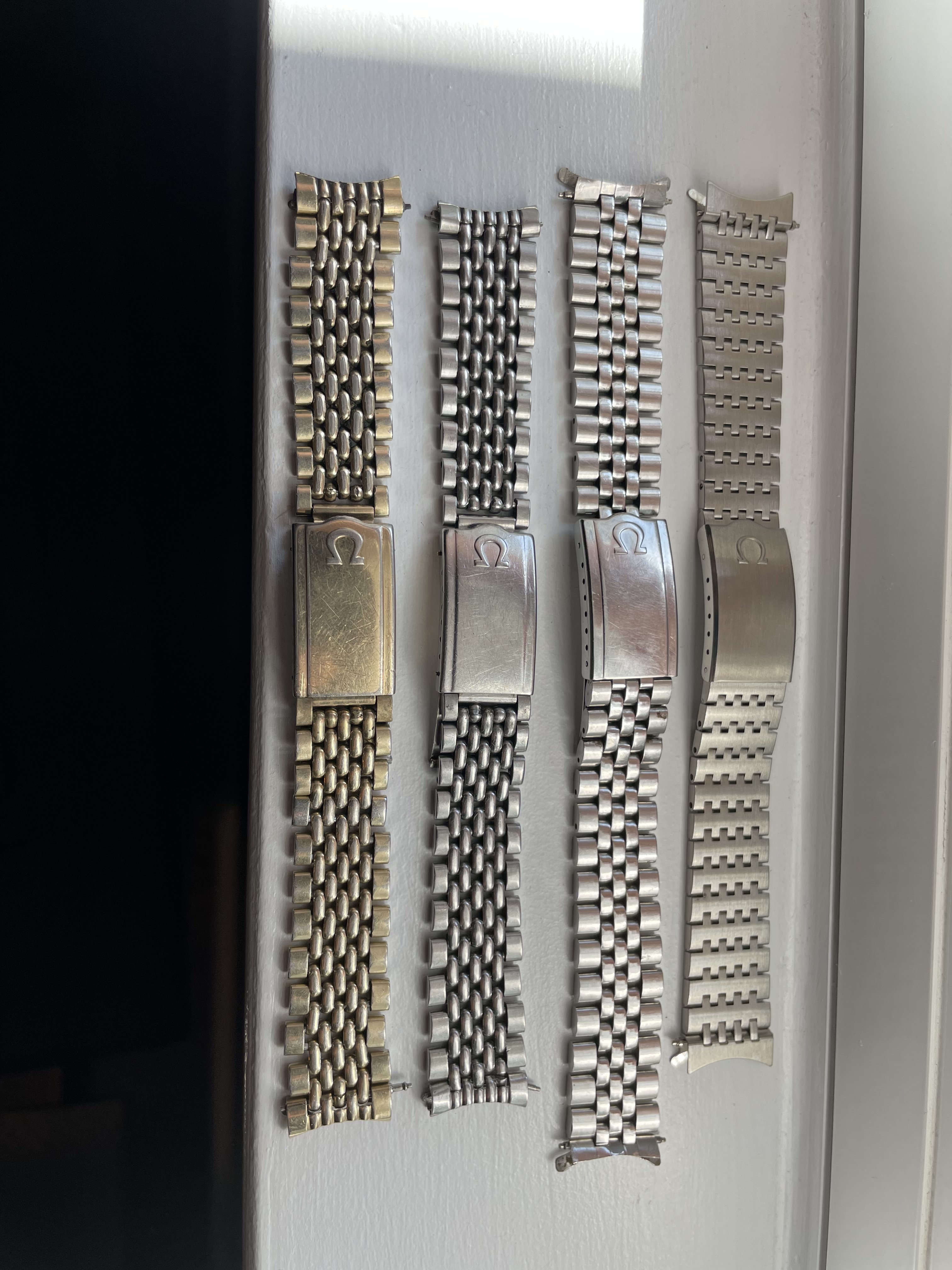Cut to a few weeks ago, I'm again scrolling eBay at some wee hour of the morning, as one normally does, I came across a similar Omega No.12 clasp with the jubilee style round bottom links available for sale, albeit without end links. Turned out that it was the same bracelet that was posted here on OF (first set of images with the blue background). After some quick back and forth the seller and I agreed on a price, I decided to purchase the bracelet, and it arrived shortly there after.