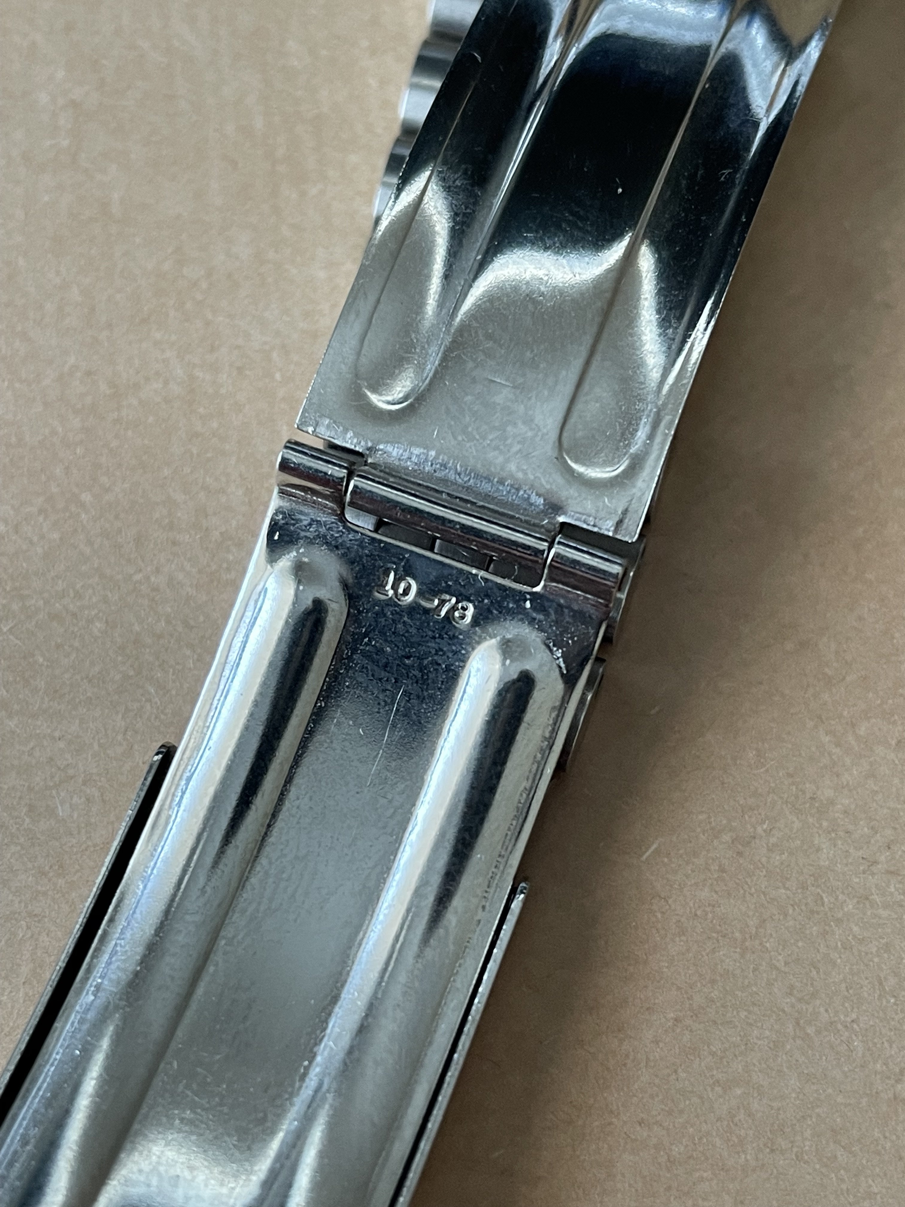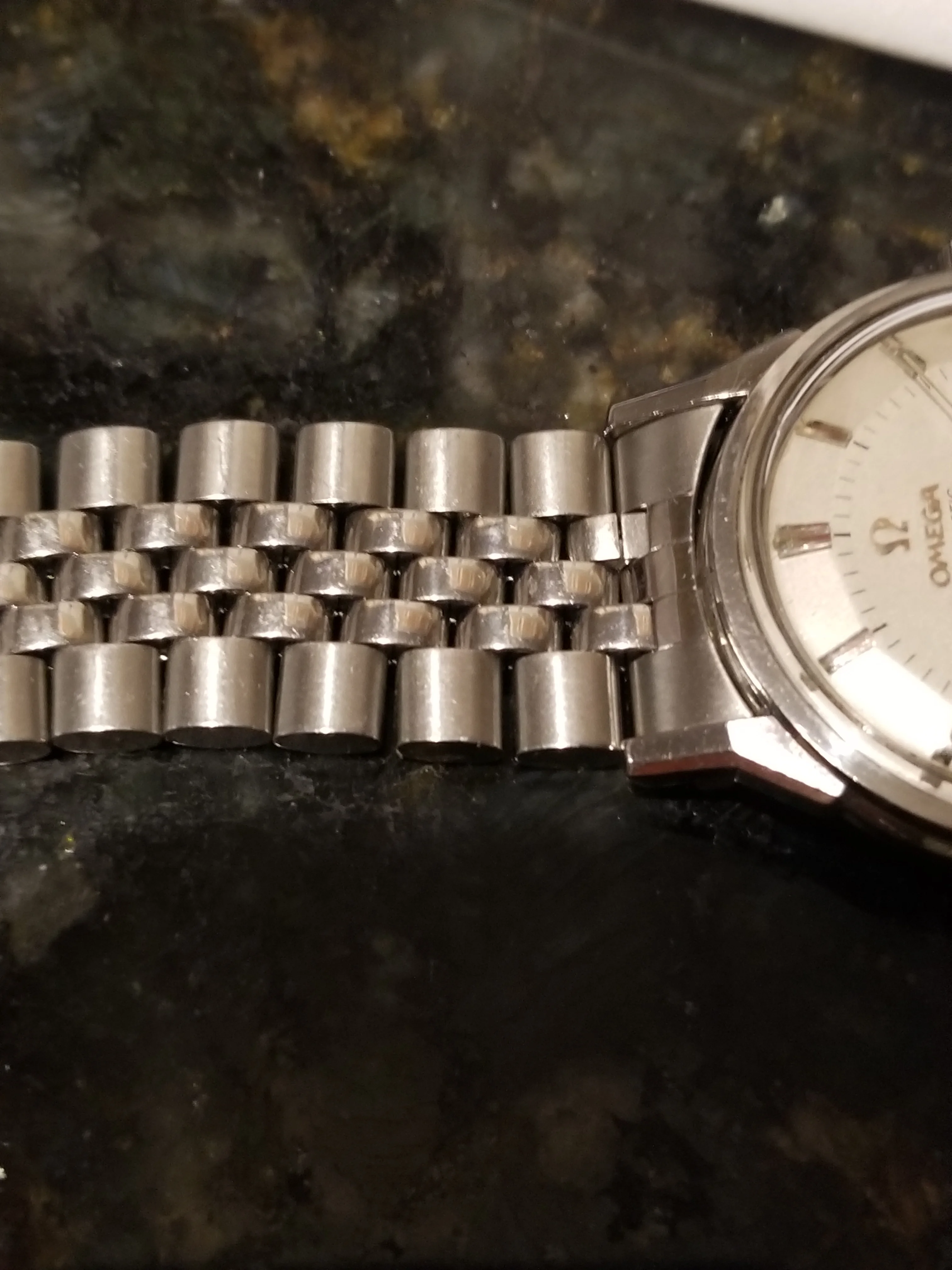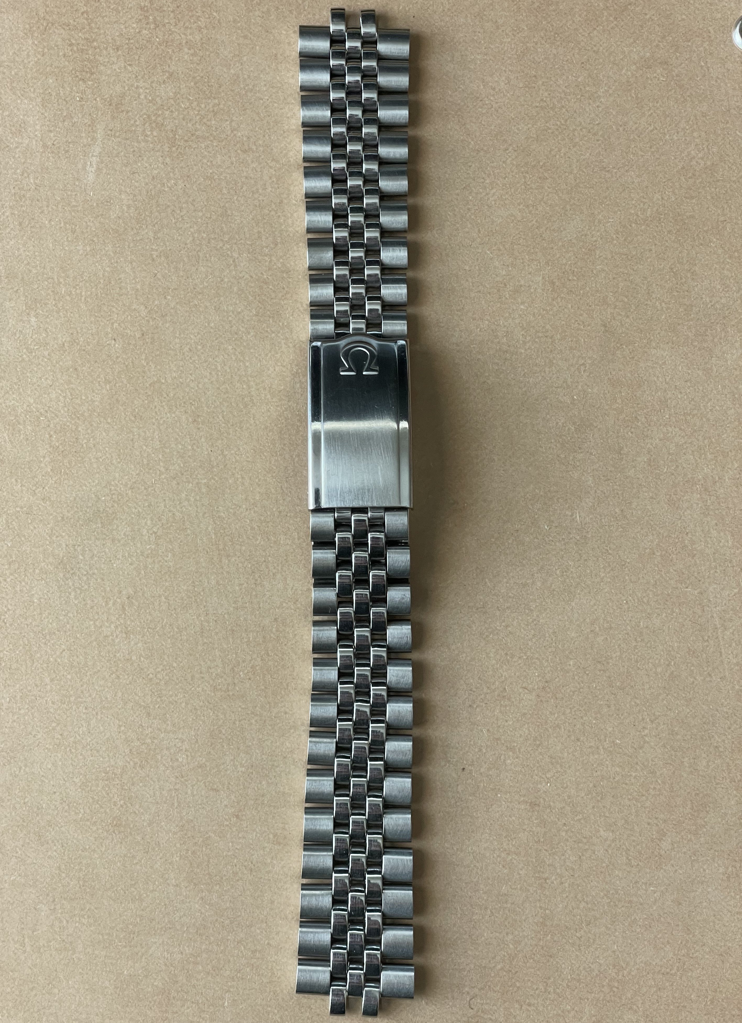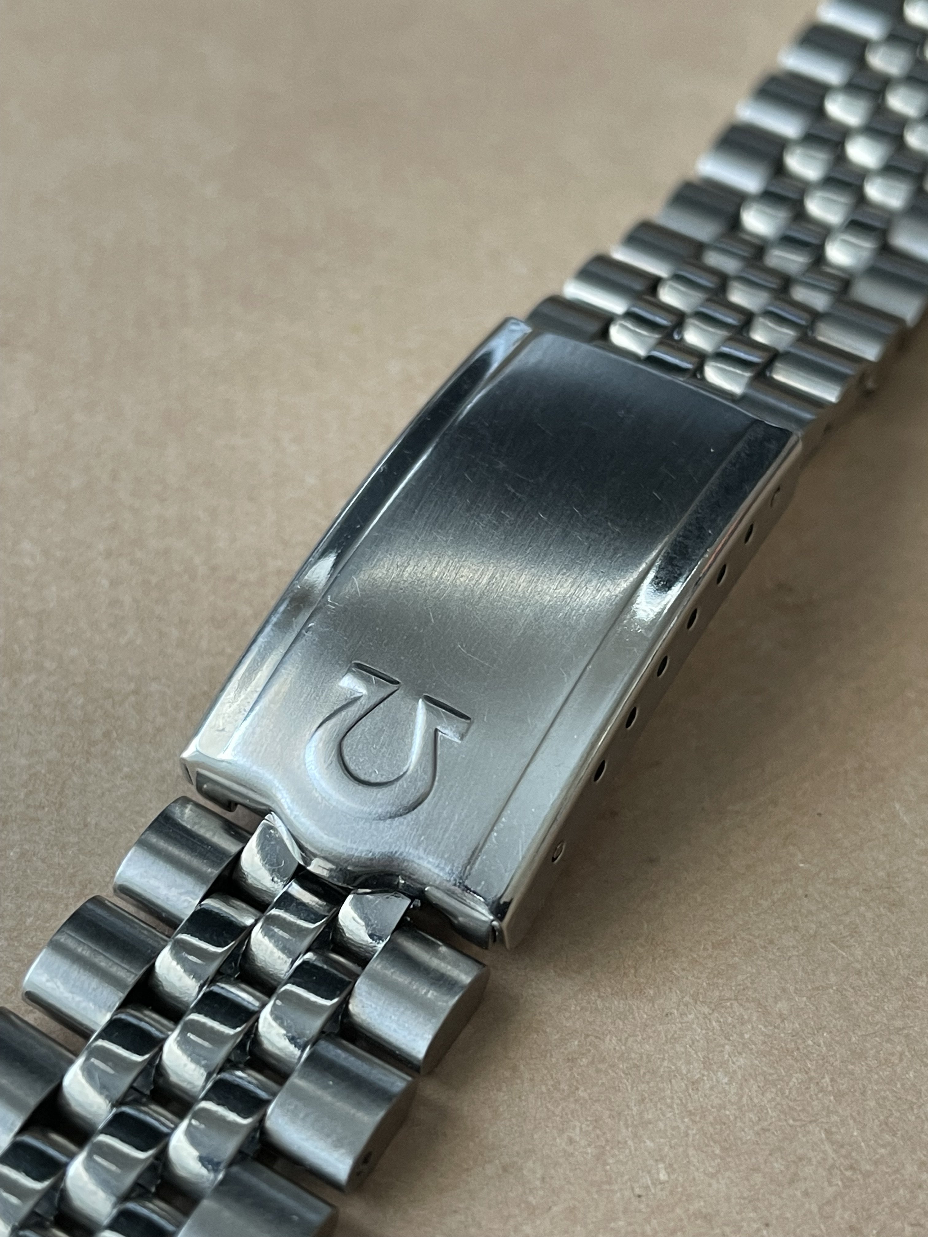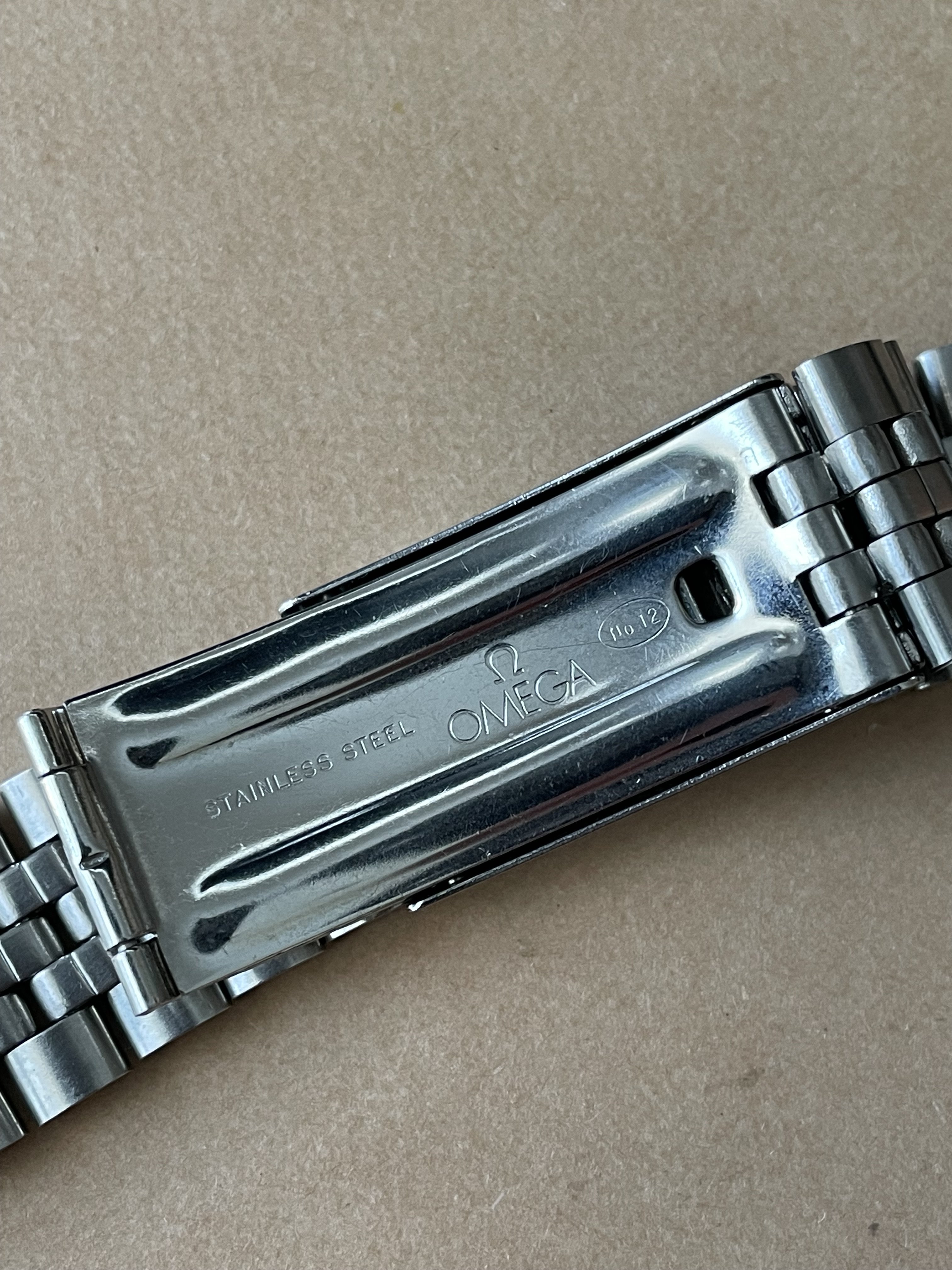 Back in February there was a thread, linked here, asking for information about a Jubilee style bracelet with an Omega No.12 signed clasp (no bracelet reference stamp) that the OF member had picked up at an estate sale. I had recently purchased a 1381 ref. bracelet with 772 end links which is somewhat a Jubilee style, but the one posted in above linked thread really intrigued me as it looked dead on to the 5 link style Jubilee, with equal width 2-3-4 links, used by some other manufacturers. The links of the bracelet were also not the more common flat bottom style links of the 80s era 1381 bracelet but were rounded similar to the 1098,1171,1125, etc. bracelets of the late 60s and 70s. Here's a couple of the OP's photos for reference: