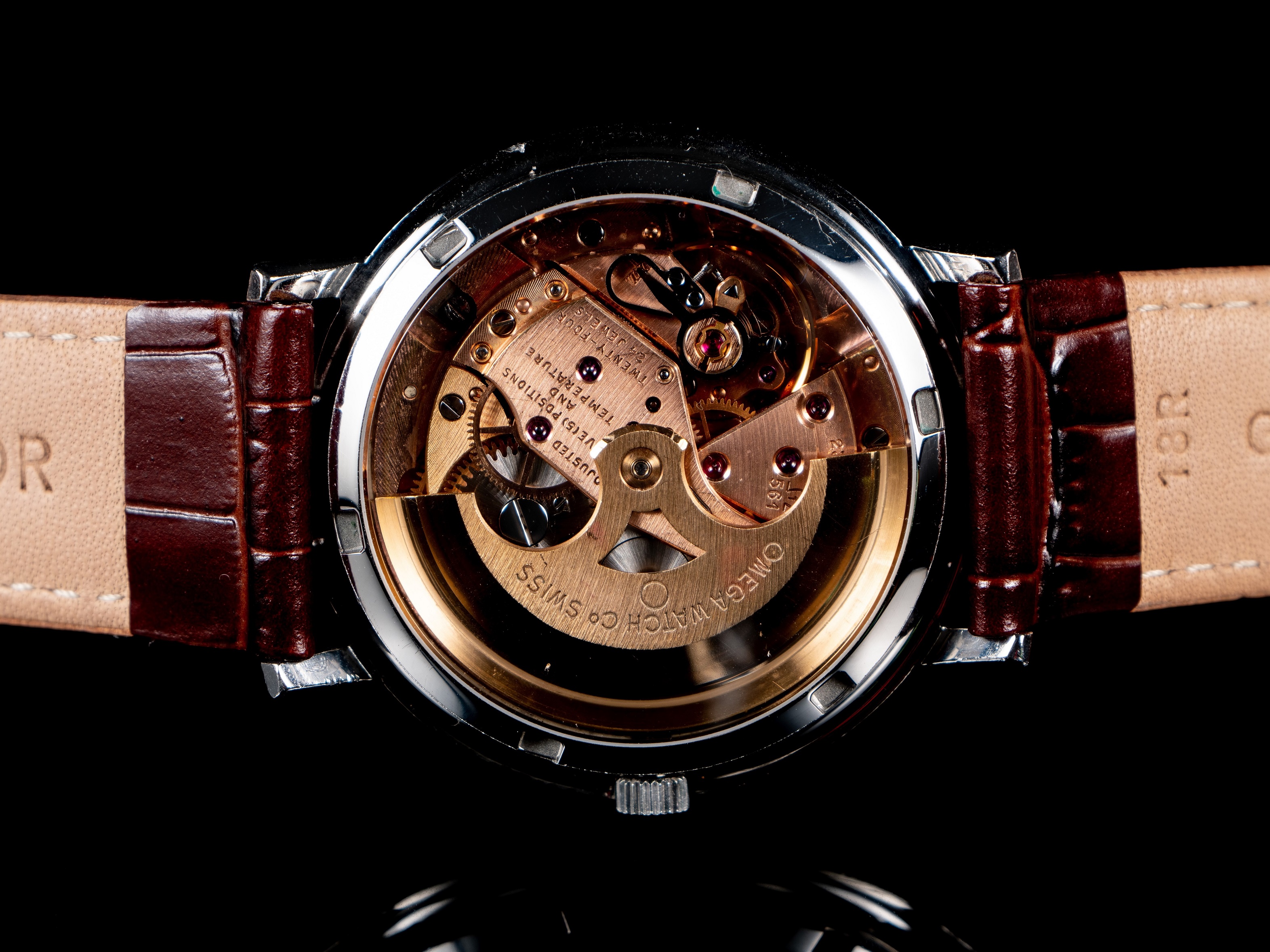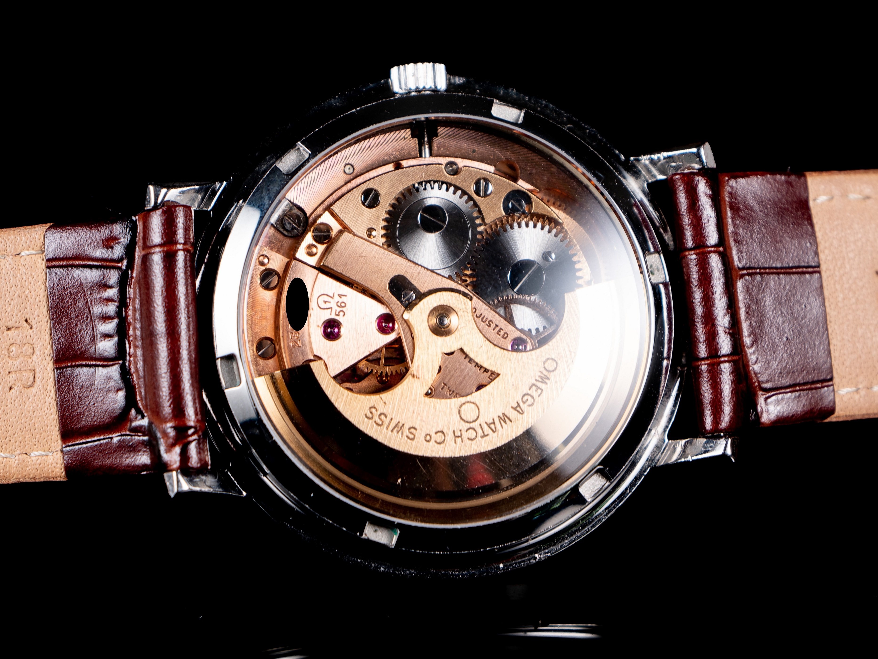 Crystal: Original vintage Omega crystal with the period-correct 'flat foot' logo. Has light scratches that will likely go away with some Polywatch.