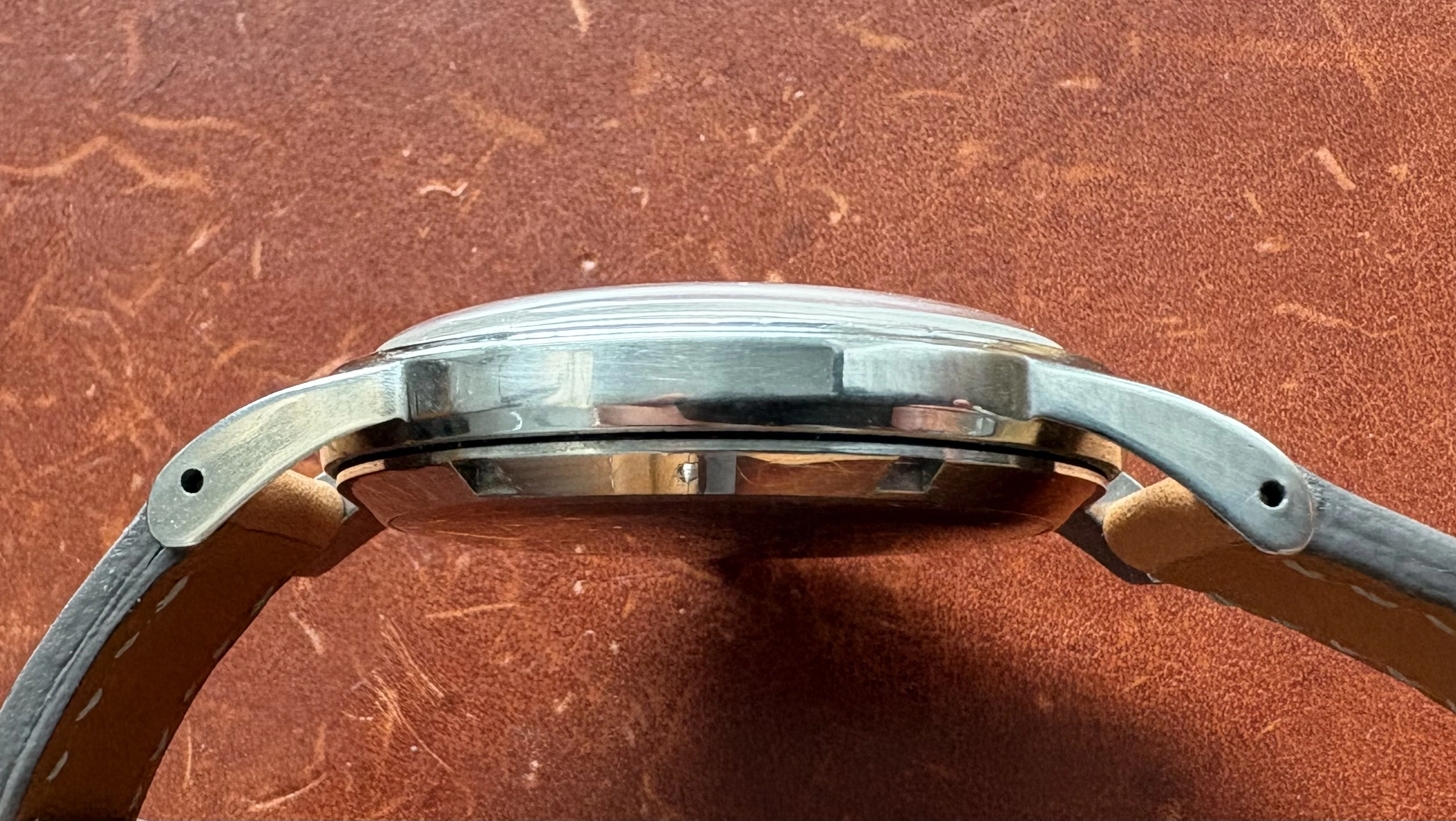 Dimensions: 36mm in diameter without the crown, 18mm lug width