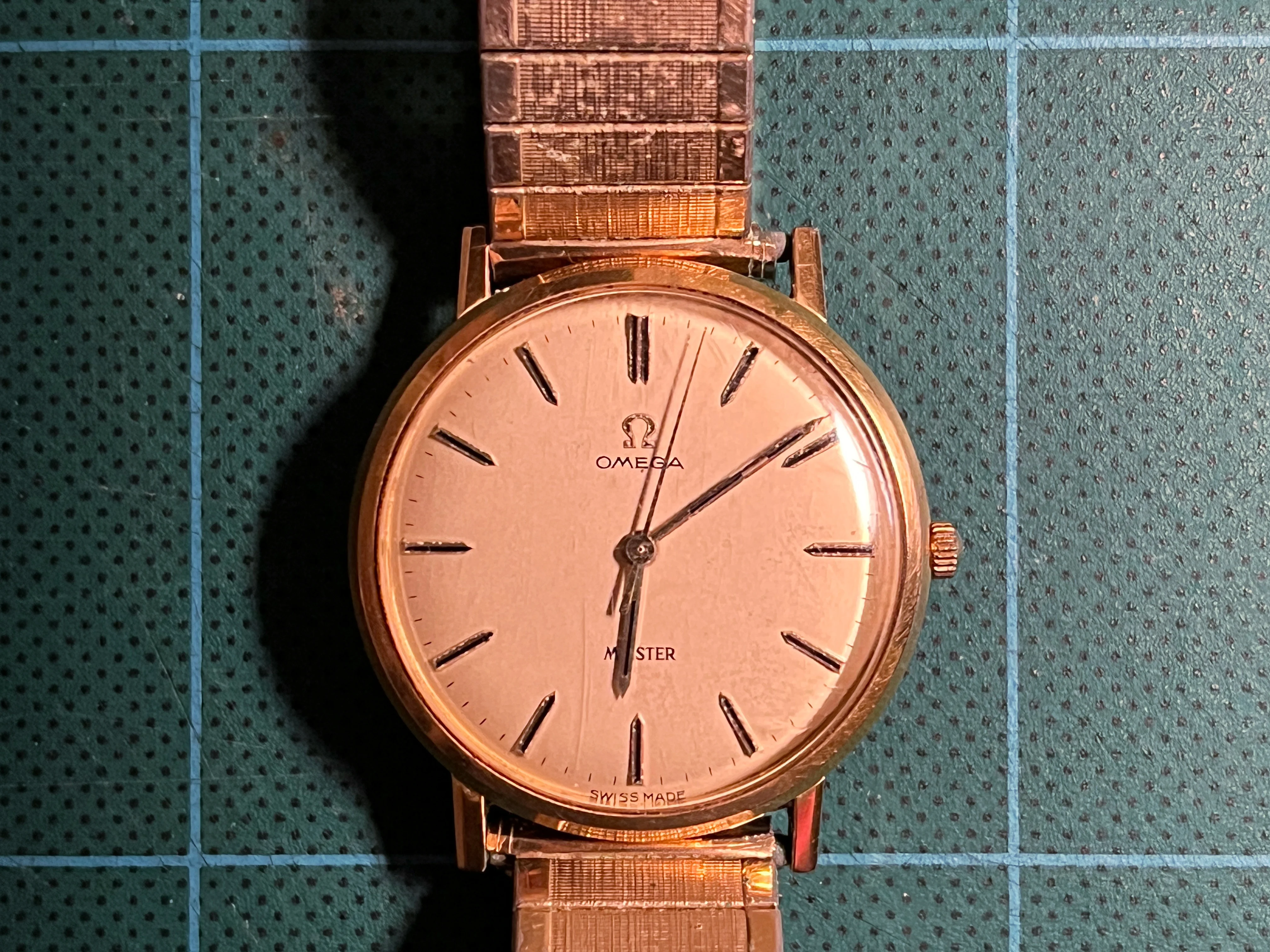 ·| Hi everyone - I have an old Omega with only "Master" on the face. I went through the Omega vintage page and ebay etc and ones that are similar in appearance usually have Seamaster, Deville etc. - so is this a fake? The watch belonged to my father's best friend whose estate I handled. There's no family to ask about it. I don't know if it was his or his father's, he had a handful of items from both - generally 1950-70s range, but some earlier stuff too. It's not in great shape and assume it has no value, but wanted to make sure. Thank you! Tom |
