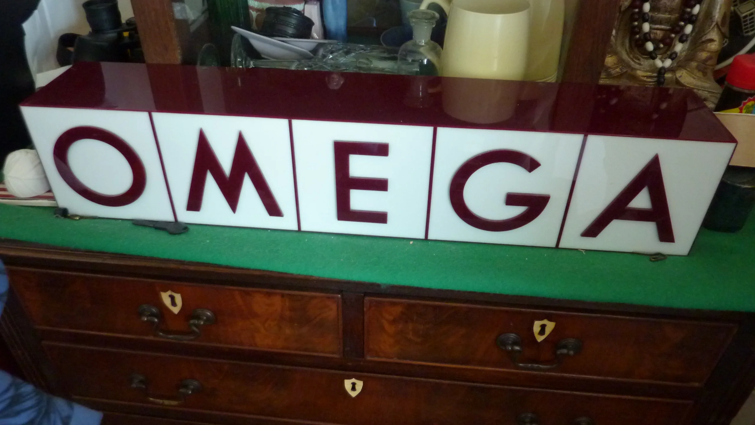 ·Hello, I have a query, I have this 'maroon'? deep purple Omega light box with the letters on a white background which I think is from the 1950/60's, it is; 64 cm L x 13 cm H x 11 cm D and what I am wondering is 'how much', what would be the value of a piece like this? I have looked around and found nothing...