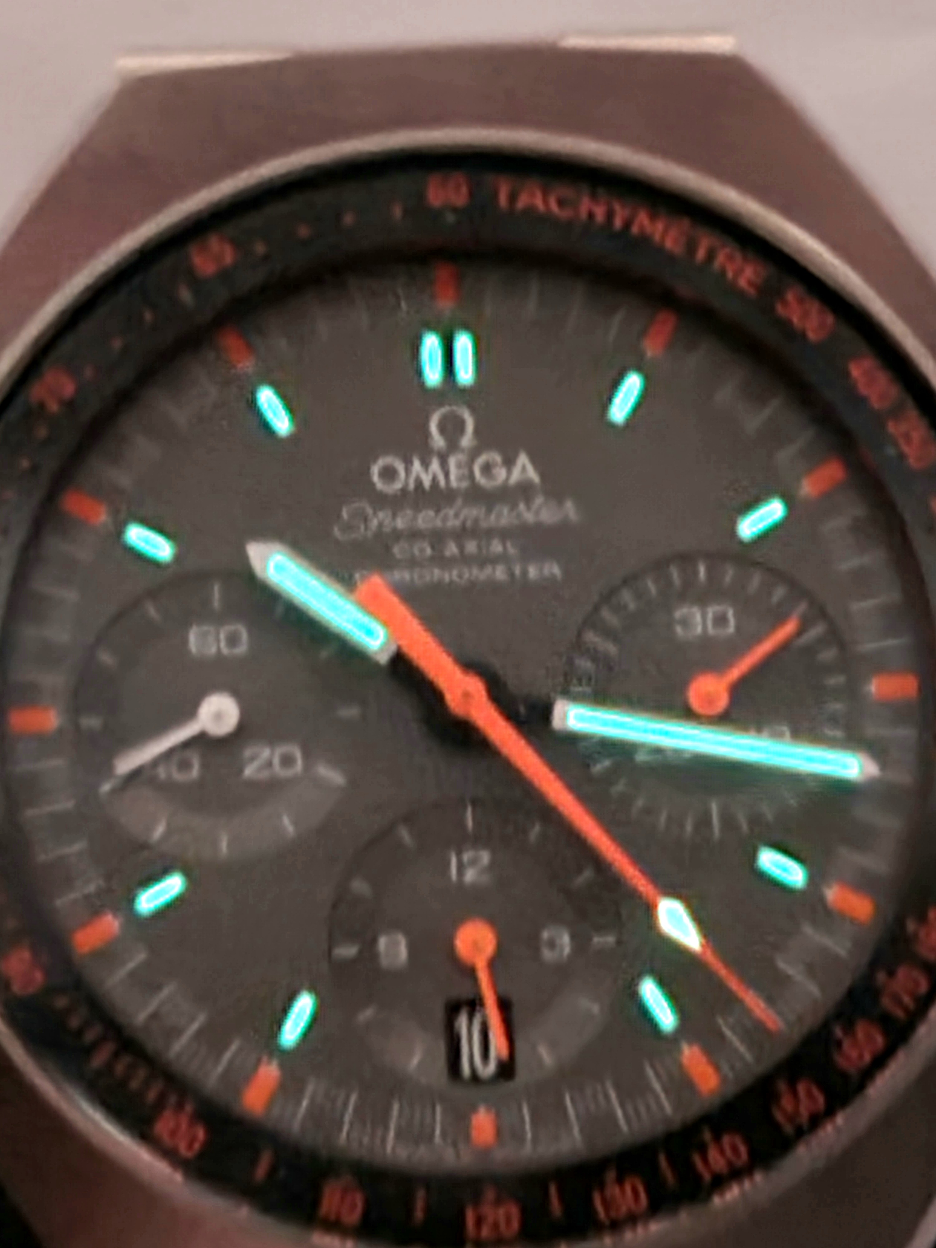 It is clear to see from this pic that something is missing (just look at every marker on the tachymeter ... the solid orange is the orange 'reflector', and half of each marker shows a hole as the reflector is not as wide as the bezel. So either Omega forgot the white ring, or someone removed it. Personally I would never believe Omega could do something this sloppy...but then Rolex also once made a faulty dial, so it could well be. Either way, I don't think there is any mystery (or anything special) here...other than it looks cool and unique, so enjoy it. The holes would bother me a bit...however I am a pedant.
