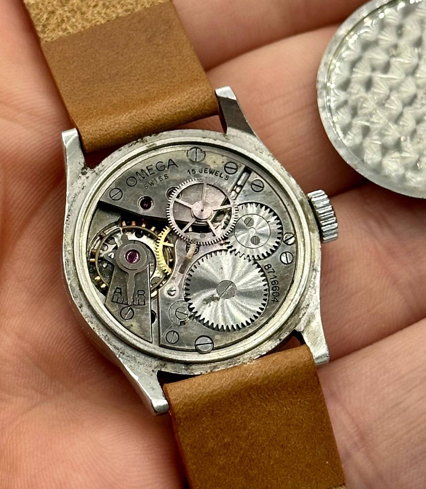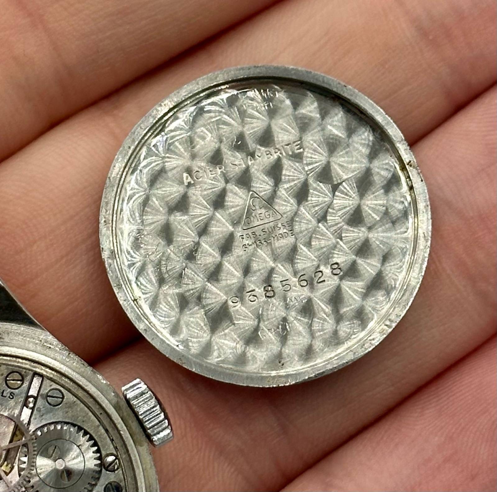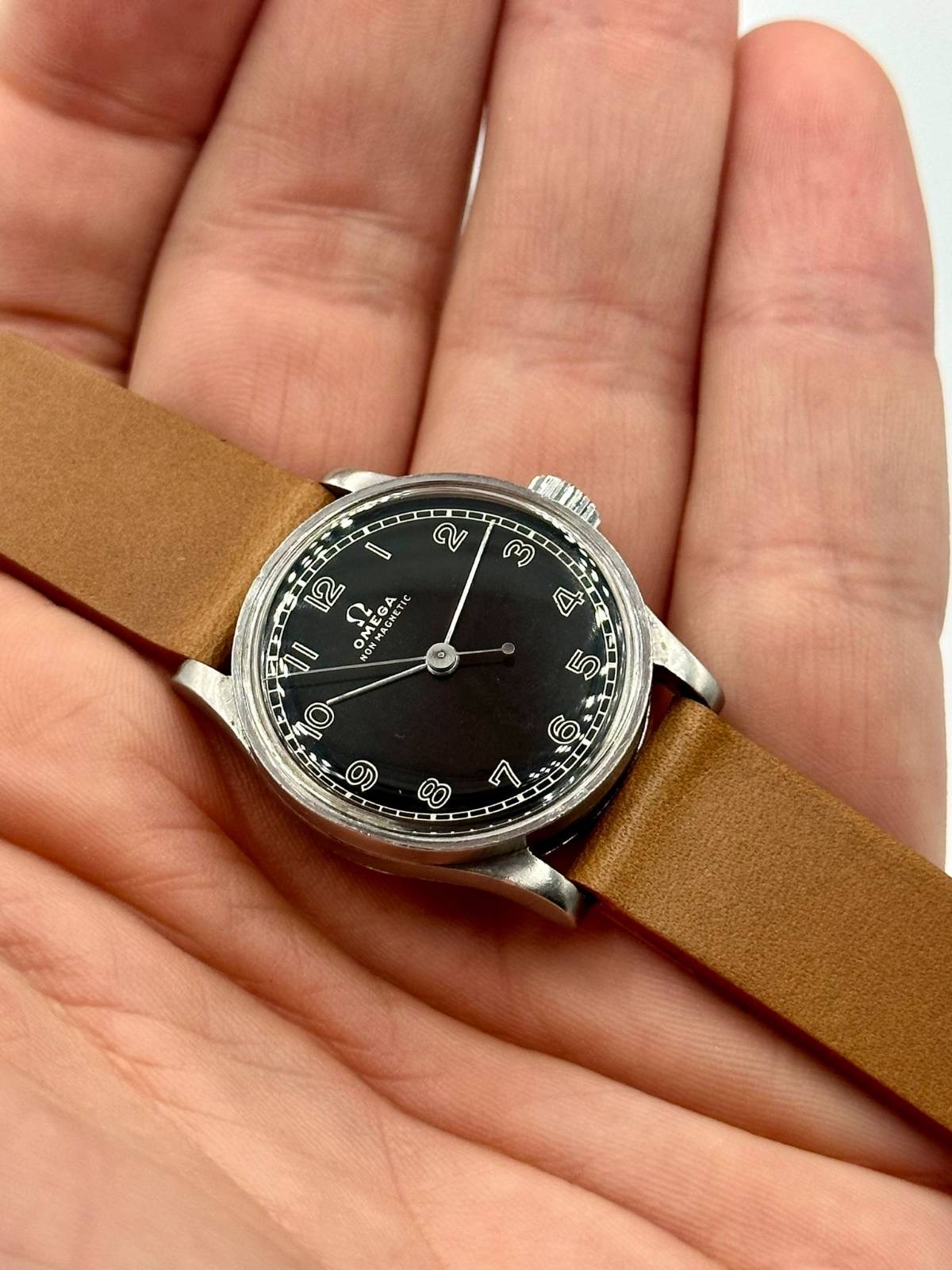 I've done my best, and I *think* it's legit, as I can see black paint above the white (metal??) filled numerals unerneath the paint. I did a comparison with another known (and slightly bigger) gilt dial in my collection - a Mulco. I think I can also see spots of rust on the gilt aspects of the Omega as I do with the Mulco.