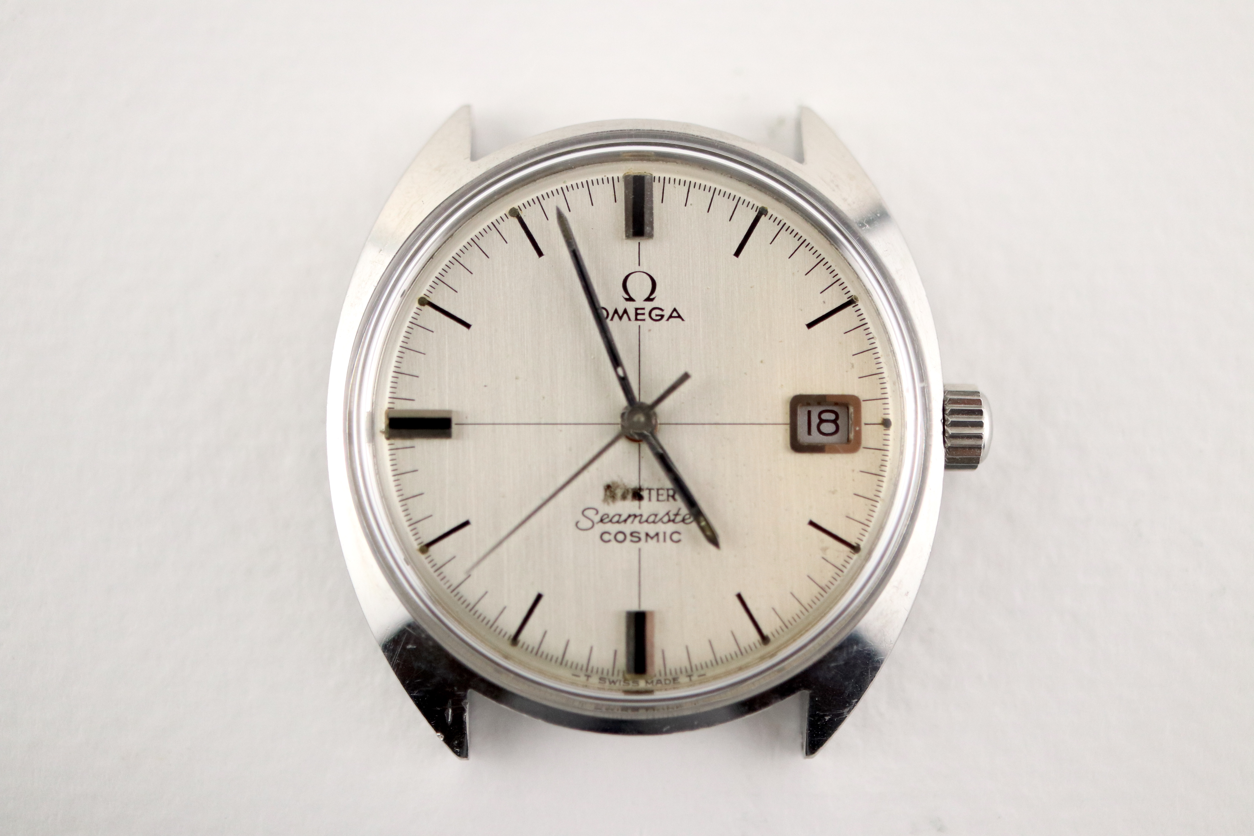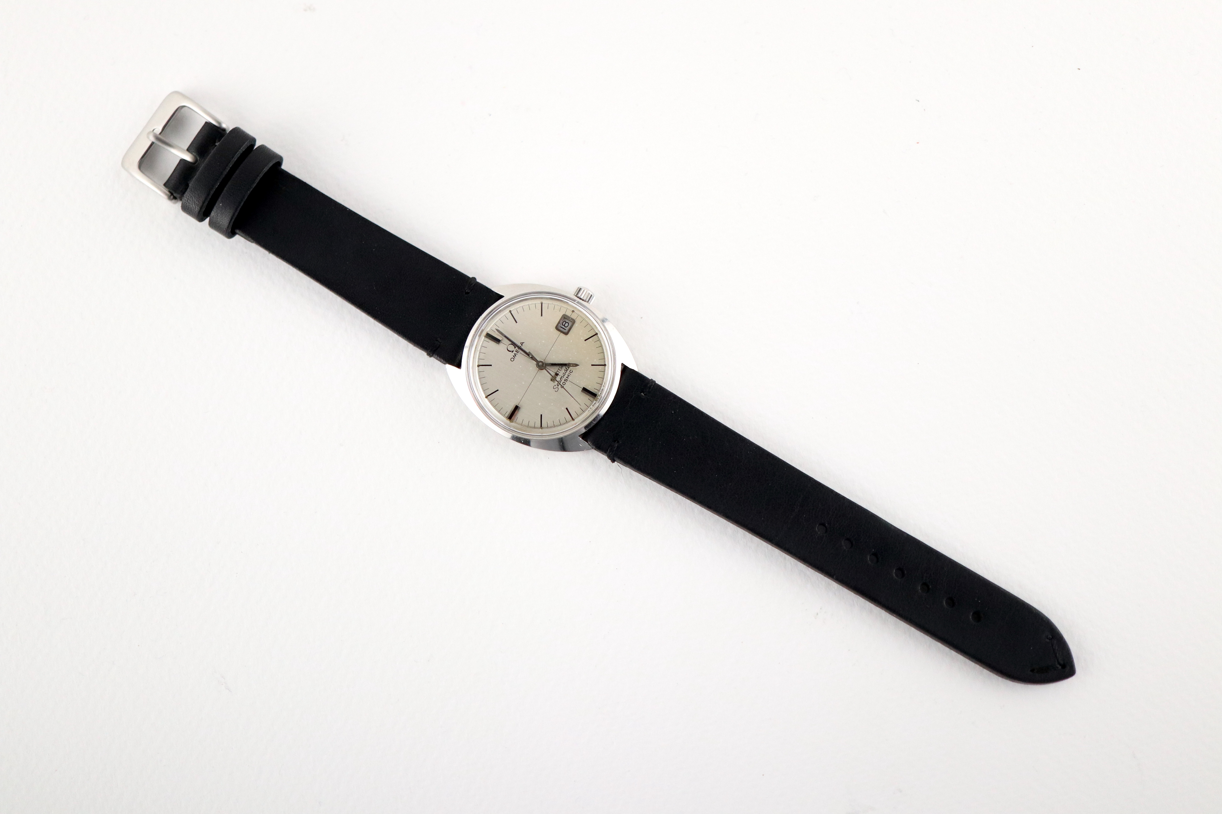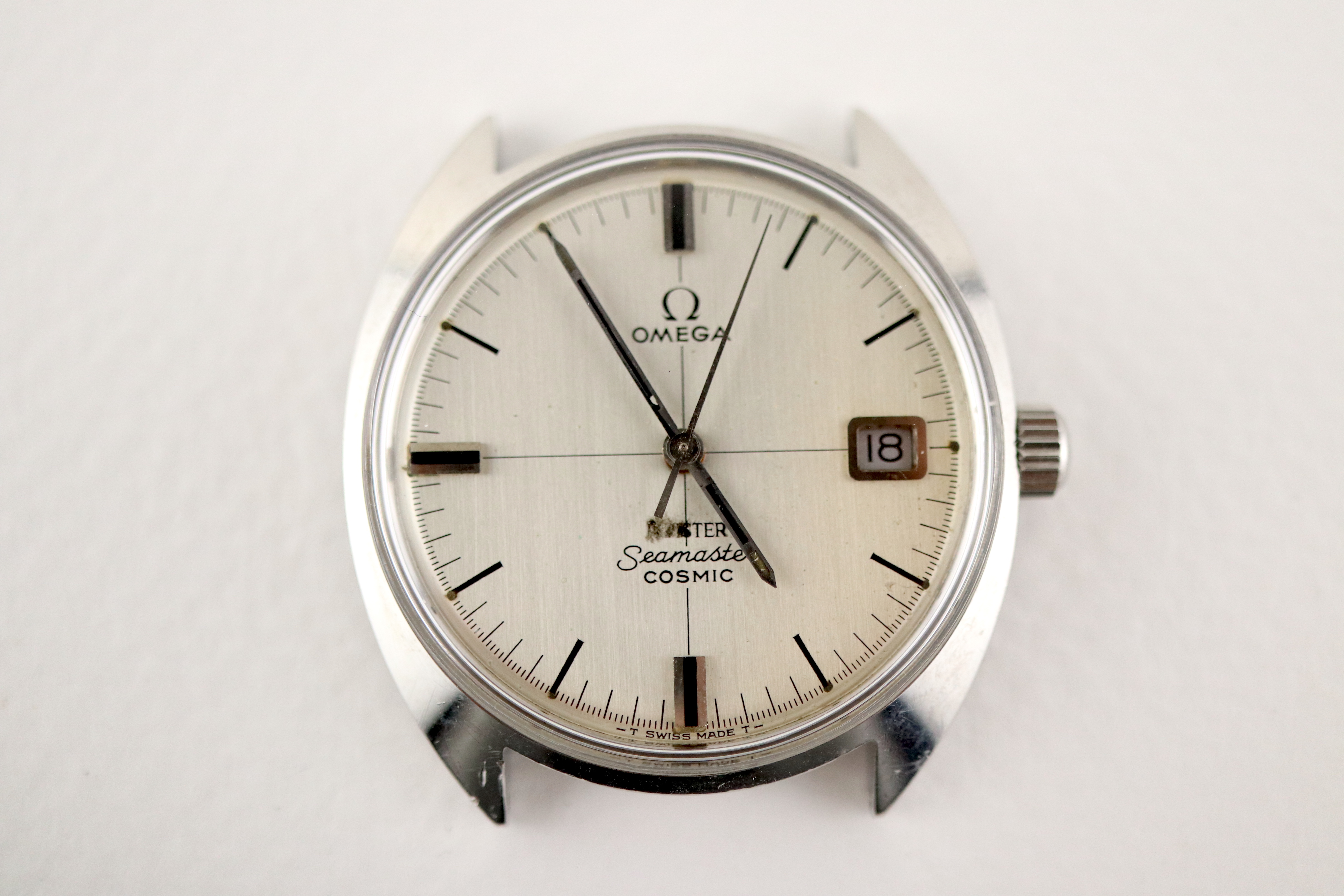 ·For sale, I have an Omega Meister Seamaster Cosmic reference number 136.017. It has the Caliber 613 which is a manual wound movement. The case has some dings and scratches and appears to have been polished in the past. Watch has just been serviced and comes with a 2-year warranty. The dial has some issues with the main one being the Meister print. The first four letters have been rubbed off. The watch will come with your choice of either a new Brown or Black leather strap. You can also have a bracelet for an additional fee if you like. If you need more pictures let me know.