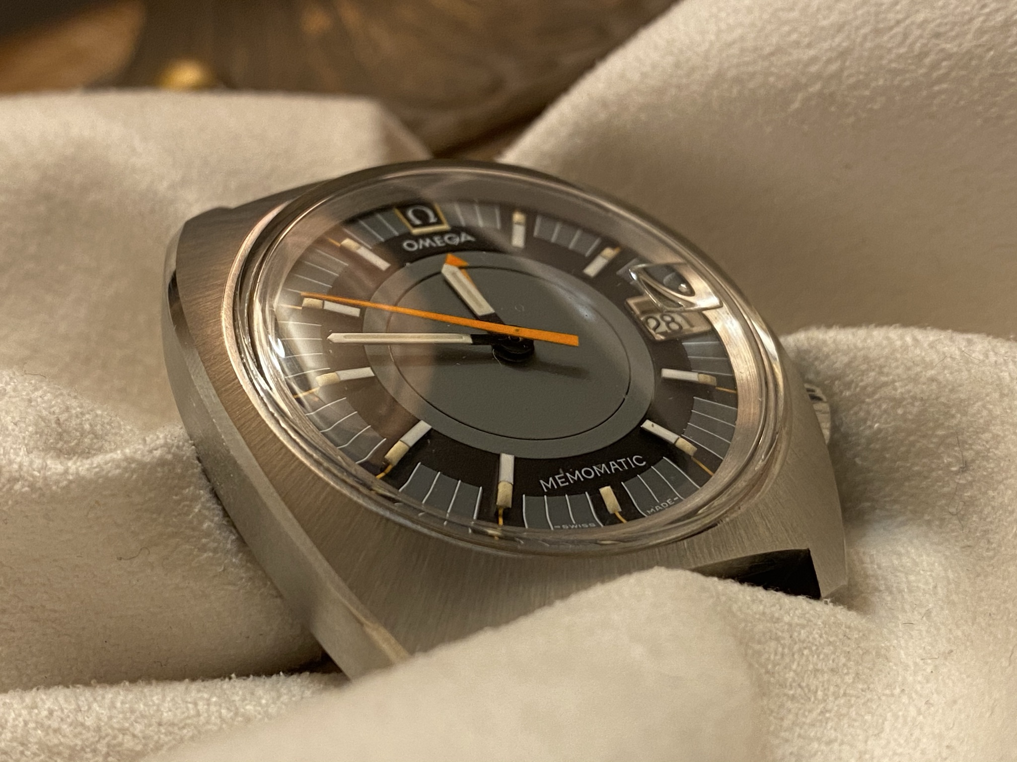 If there are any questions, please do reach out. And, as always, thanks @OF for the space! Now, let's see some pictures. Please note that I tried both harsh, artifical light and a warmer light source to depict the beautiful brushing/sharp edges of the Memomatic, but if you'd prefer any other picture I'm more than happy to take some more.