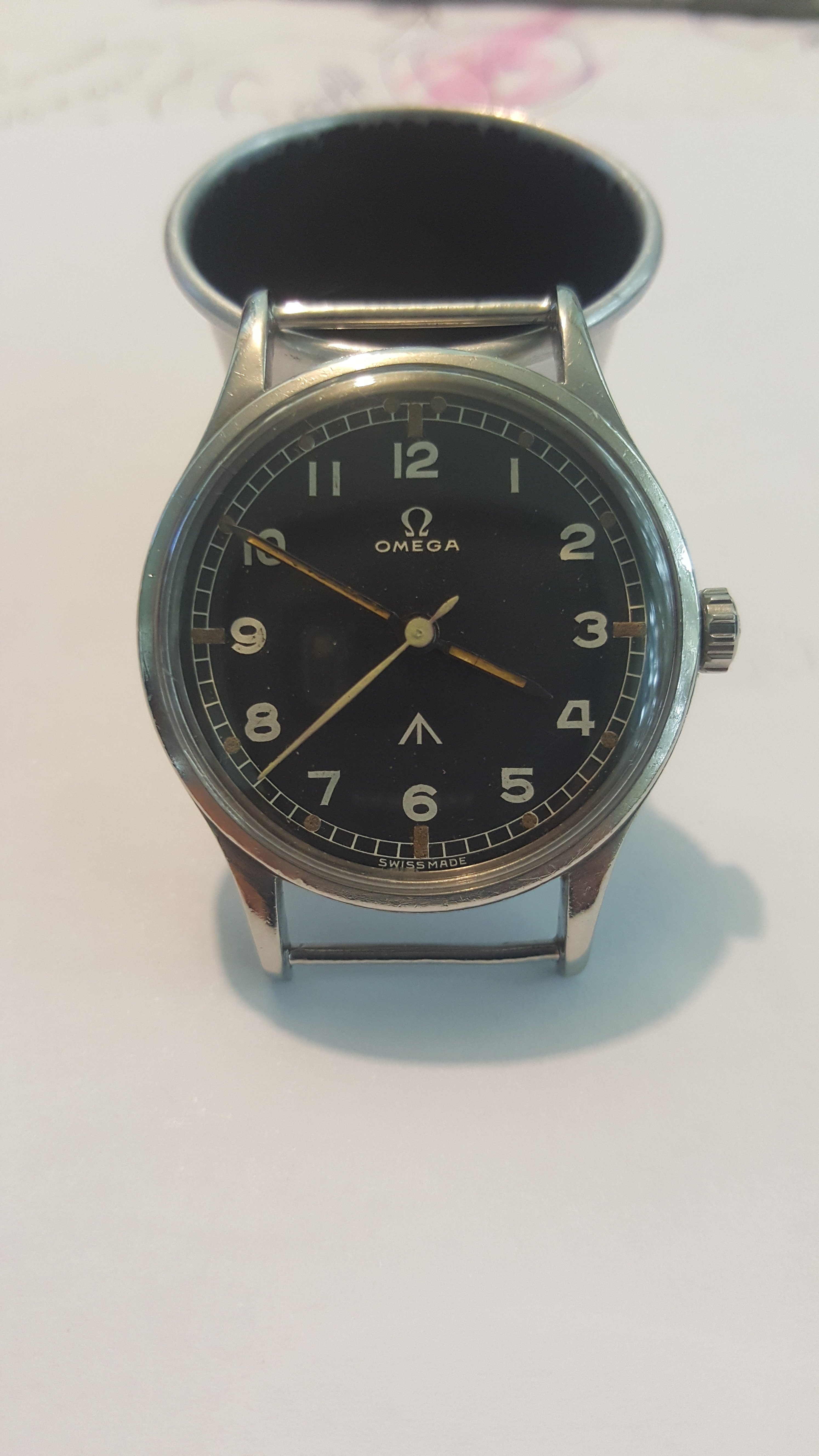 in the moment there are 2 examples on the bay. clearly repainted dial is here: https://www.ebay.com.au/itm/1950s-OMEGA-Military-RAF-Fat-Arrow-Mens-Vintage-Wrist-Watch-6B-542-3416-53/273032565573?_trkparms=aid=222007&algo=SIM.MBE&ao=2&asc=20140106155344&meid=8aa53caaf5ae4c98a6550bc1250dc21d&pid=100005&rk=5&rkt=6&sd=162883931920&itm=273032565573&_trksid=p2047675.c100005.m1851.