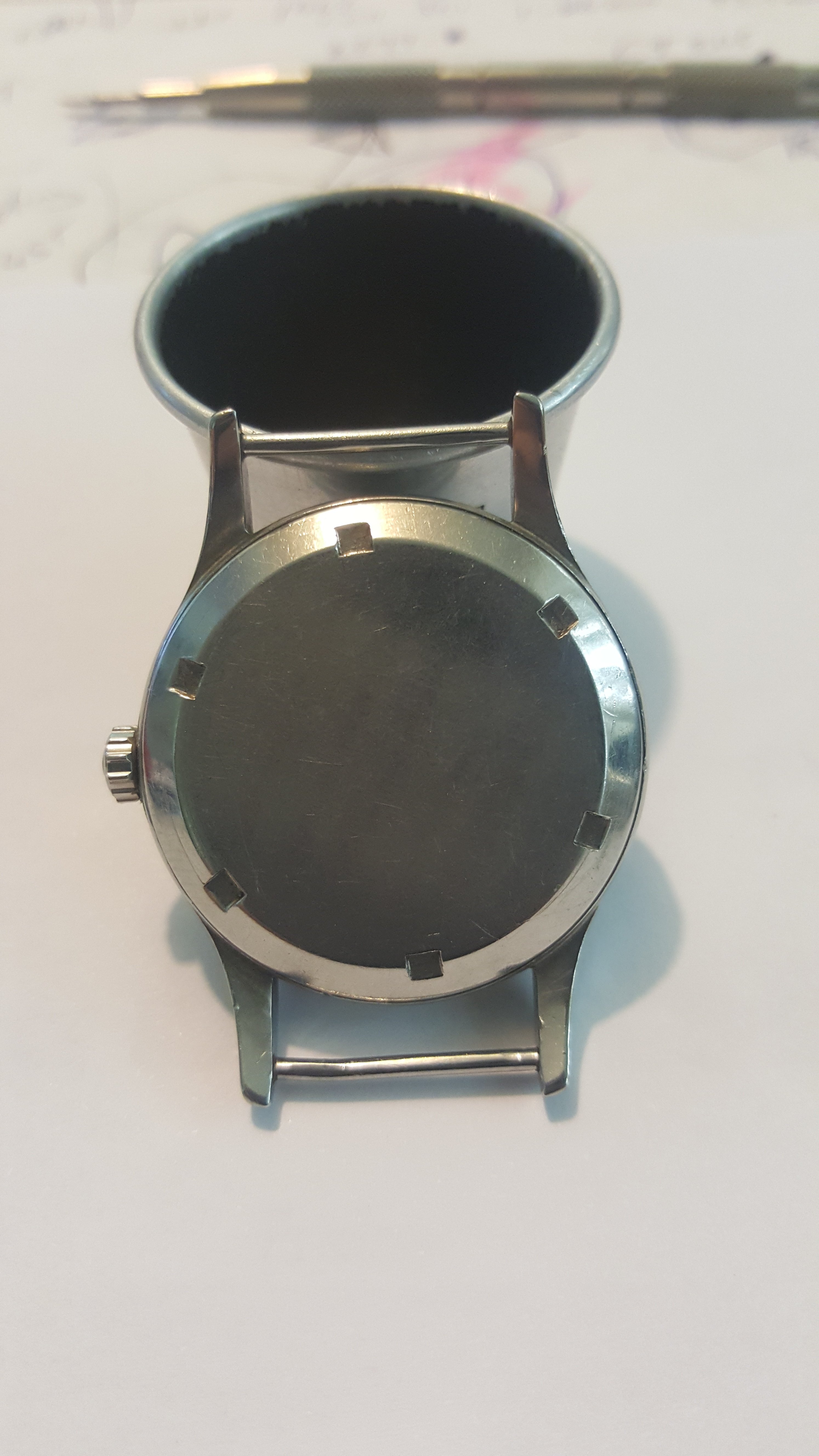 In the second watch, the seller claims that the watch is ‘ALL ORIGINAL’. As you say Achim, the "Do Hickey" is available (from Antoine) and the moisture absorbent paper disc from Zaf.