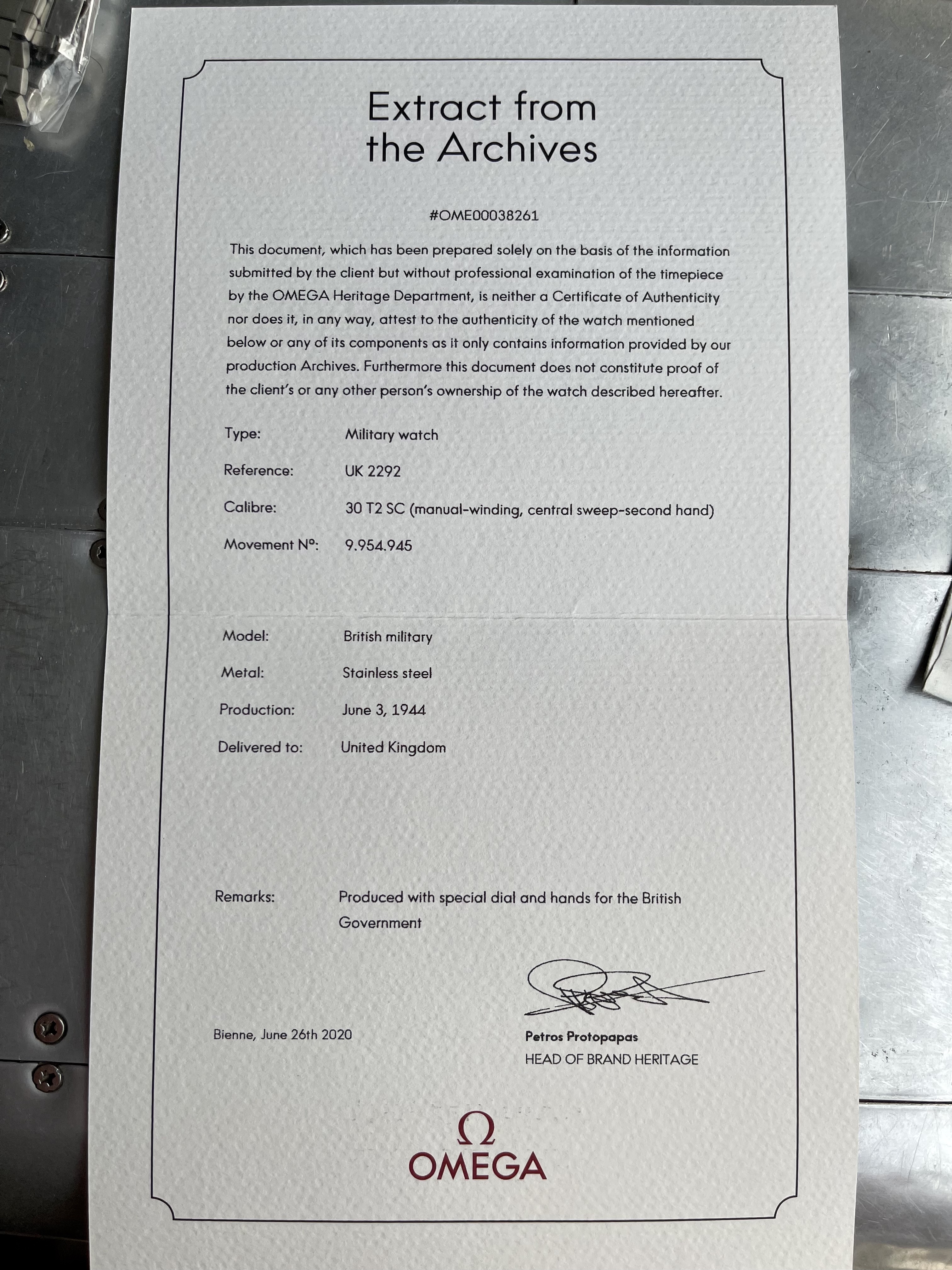 ·MWR is not always the source to go to..... there are not " the MWR guys..." ; there is no proof so far and it is only 2-3 guys there. i go with the stuff i can proof ; like the Omega Factory order form. without an order form, Omega would do nothing . i researched Military Omegas with John Diethelm from Omega in the mid 90`s. these here and some military issued Railmaster for the FAP and PAF. here is the original order form from the Omega Factory . nothing mentioned there like All Stainless steel.... just back and bezel ring. but, who knows for sure? turbulent times during WW2..... kind regards. Achim
