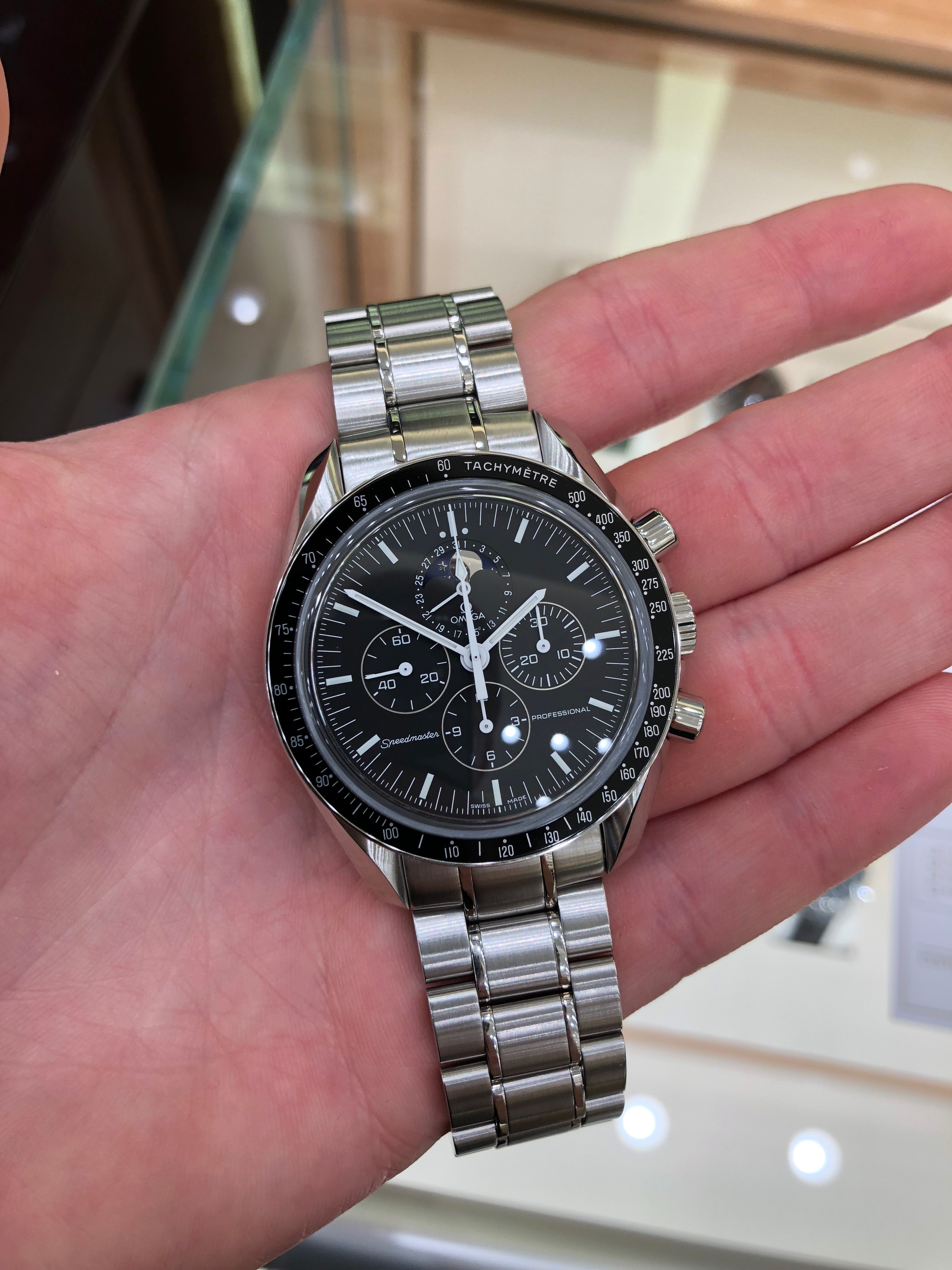Went in yesterday, got them down to $4750, and, well, here it is! Thanks for the encouragement, everyone! Very happy with this, even if I might have been able to source one from a trusted seller for a bit less. It feels good to add a new Omega again -- I've taken a detour over the last year or so and gotten into Rolex and AP, and those are frustrating brands to deal with as it seems like anything I'd want has a really long waitlist. Omega, and more specifically, the Speedmaster, is what started my journey into the hobby, and one thing I've learned since then is that nothing beats the Speedy. I'm also reminded why Omega is my favorite brand: watchmaking that beats anything in the price range, awesome history, lots of variations, no (or at least much less) snobbery, no waitlists (for the most part), and the fact that the brand is just more fun than any others.