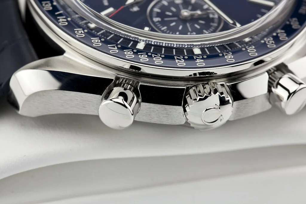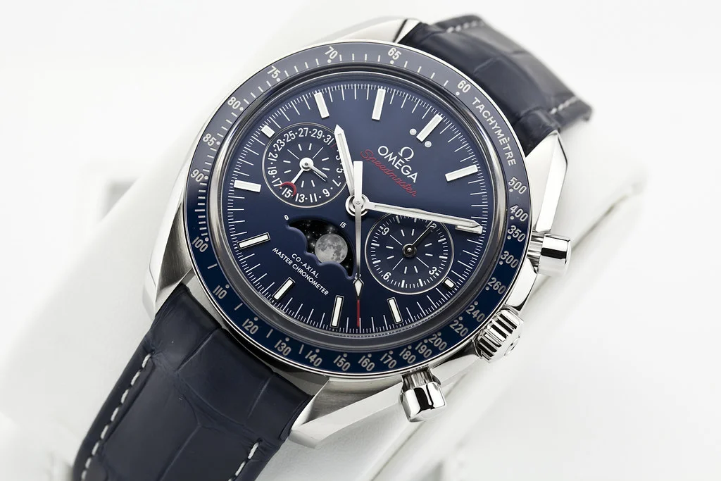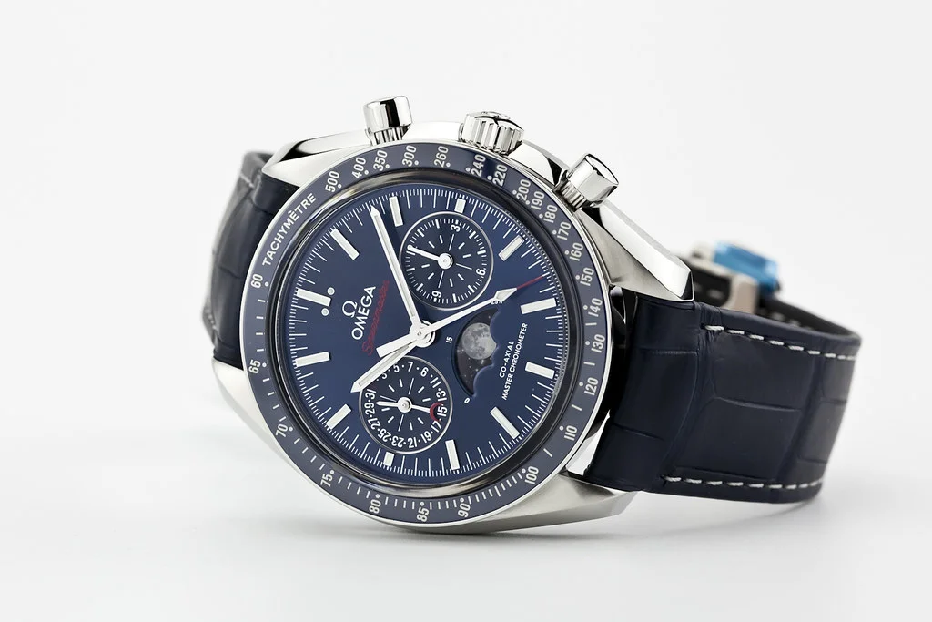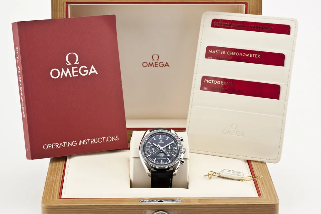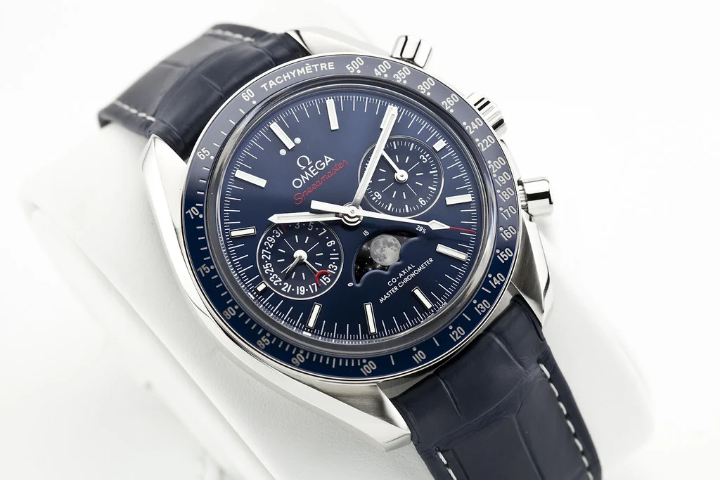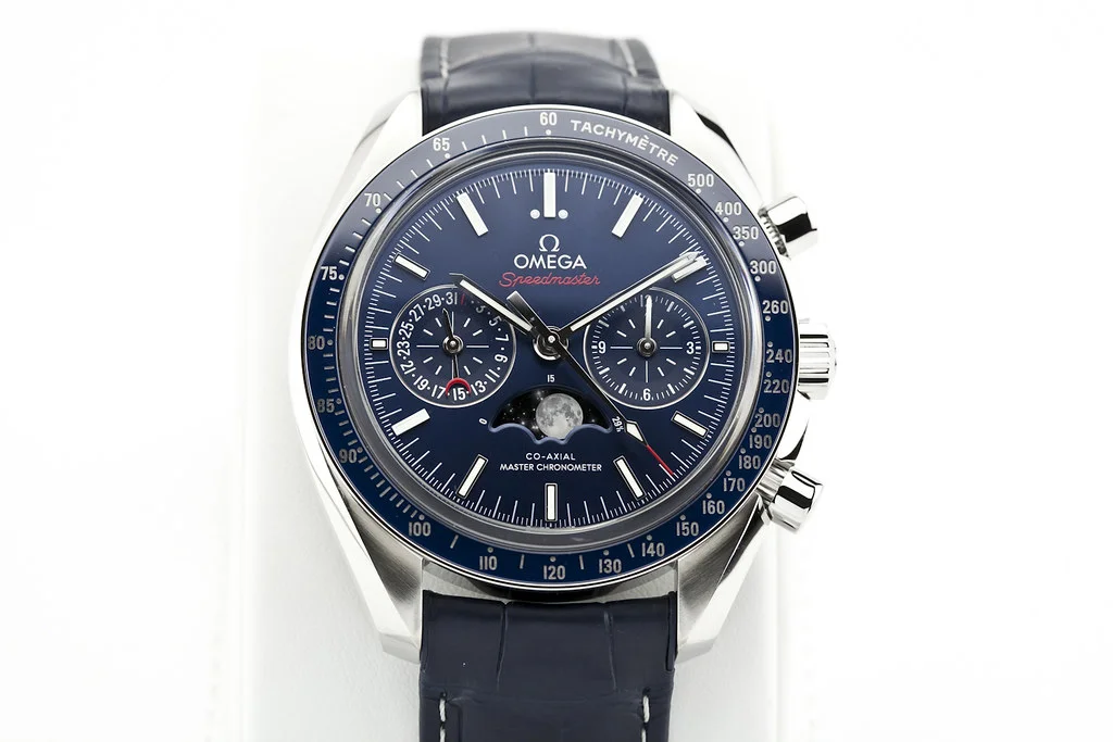 ·Up for sale is a brand new Omega Speedmaster Moonphase Chronograph 44.25mm Blue Dial on Leather Strap, reference # 304.33.44.52.03.001. It comes complete with all boxes, papers, booklets, hang tag and Omega Warranty Card dated December 2024.