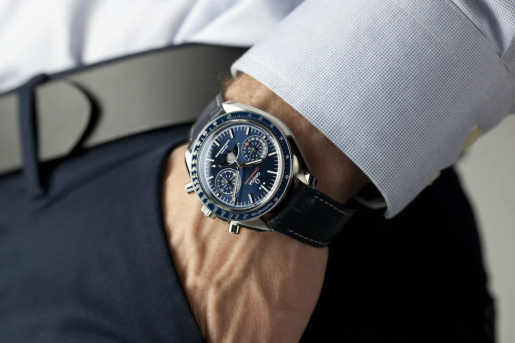·Up for sale is a brand new Omega Speedmaster Moonphase Chronograph 44.25mm Blue Dial on Leather Strap, reference # 304.33.44.52.03.001. It comes complete with all boxes, papers, booklets, hang tag and Omega Warranty Card dated December 2024.