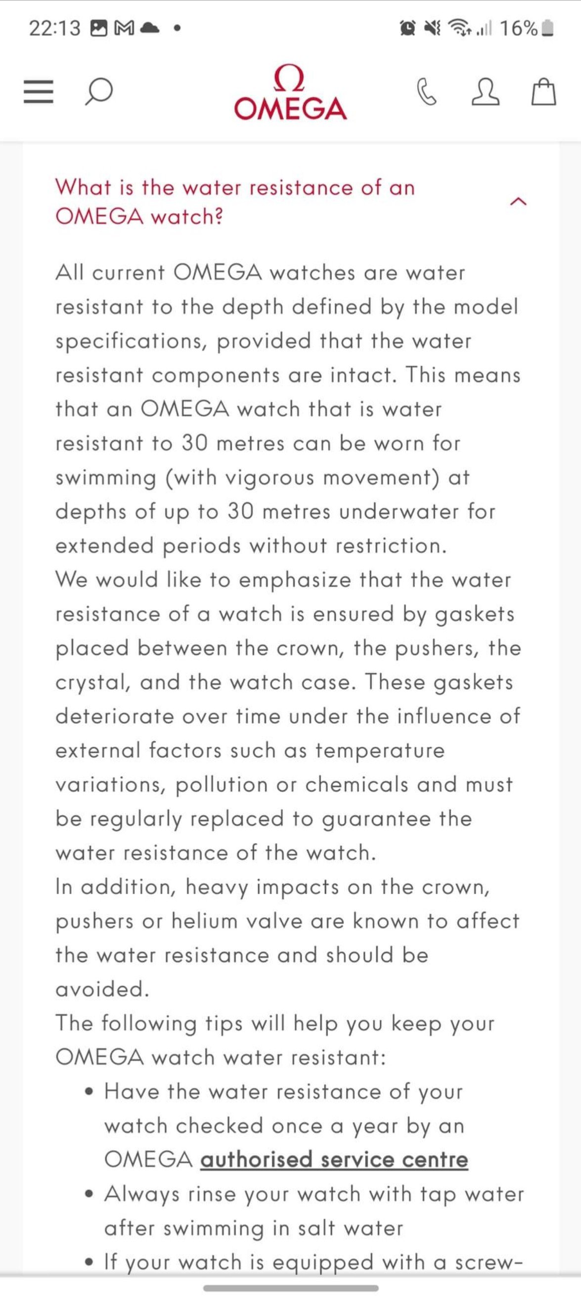 Saw this from Omega. Not sure what the water resistance is for this model and when it was last serviced? Be curious to know what they say too....
