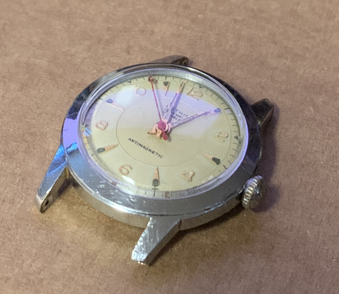 This one cleaned right up and I use it as a bench timer. One of the lugs is shorter than the others.