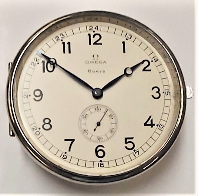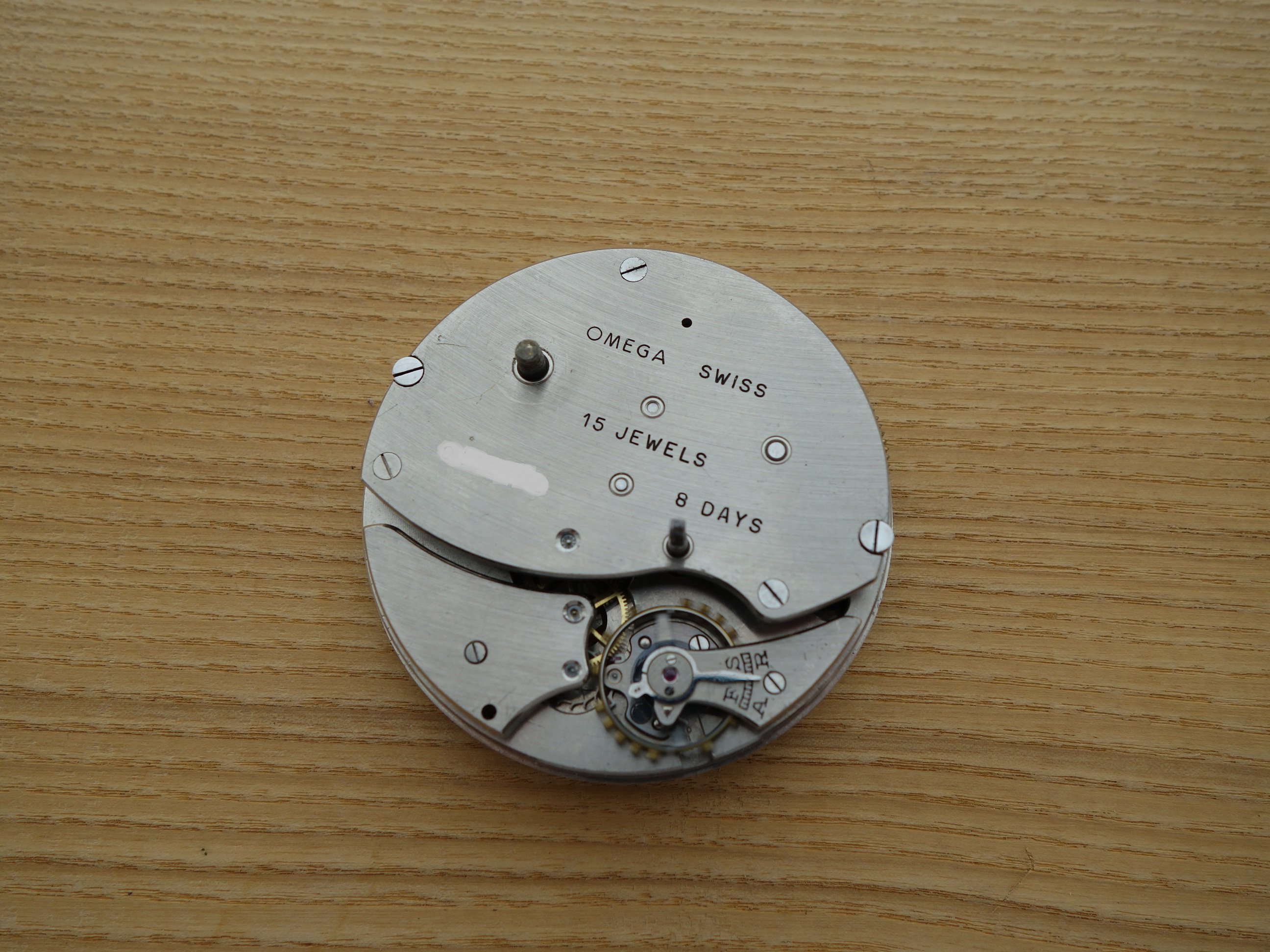 I'll wait for the experts to comment, but that doesn't look like any Omega movement that I've ever seen. No caliber number stamped anywhere, no serial number stamped anywhere, that swan neck regulator doesn't look like others that I've seen on Omega calibers, the metal and the finishing doesn't look correct, and I don't recall ever seeing the "8 Days" language on any Omega movement. Also, 60mm diameter?