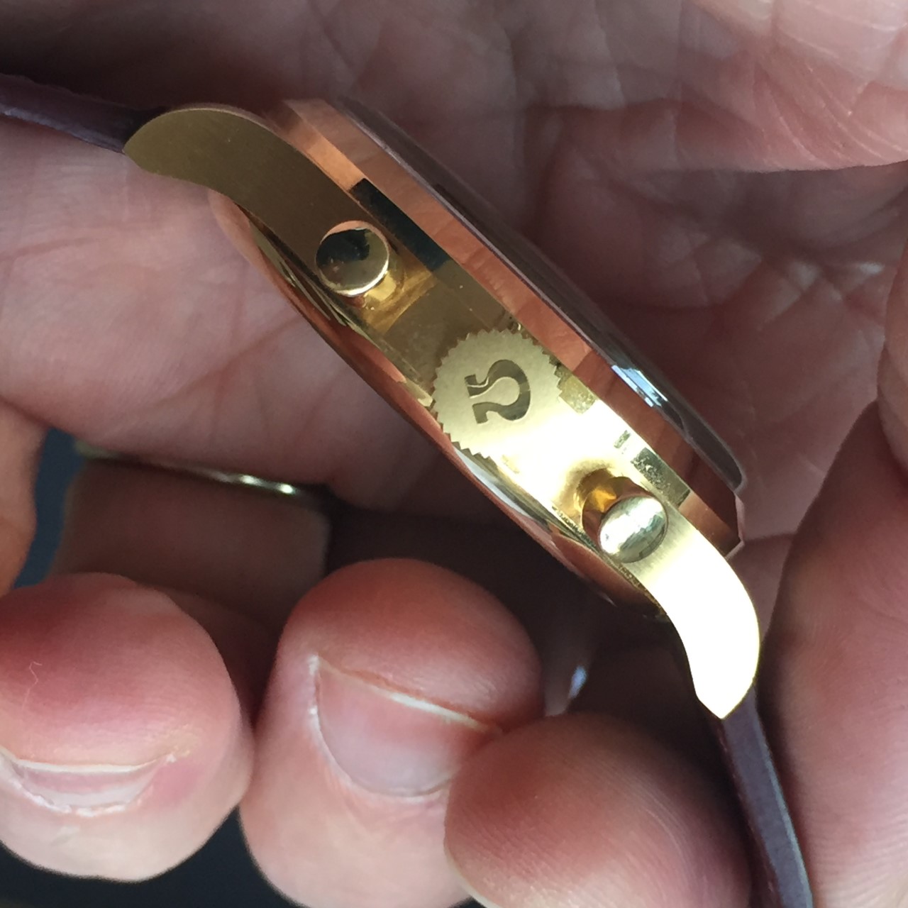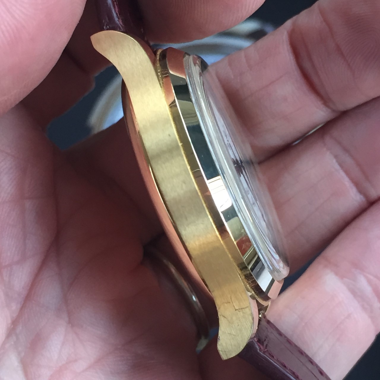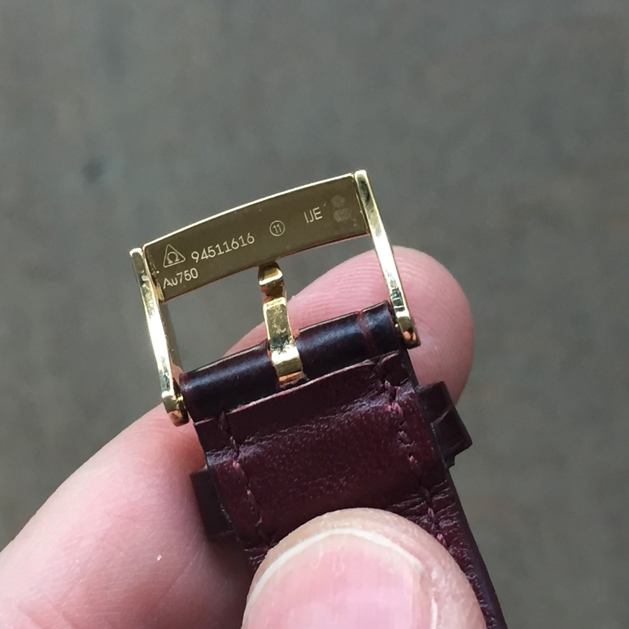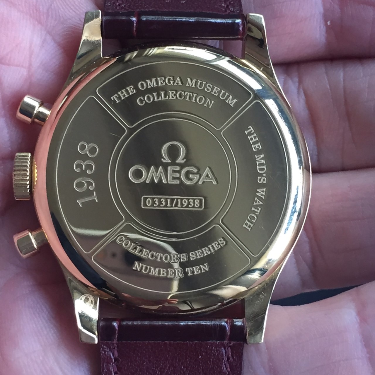 路For sale a solid gold chronograph powered by the co-axial calibre 3203. The watch has been worn only a few times and bears very, very little signs of wear (no scratches, no dings whatsoever). I am the first and sole owner. The watch was bought new from an AD in France in October 2017 (so it is still under warranty). It comes with original box and papers as shown here. The original buckle (18mm) and strap are shown separately here and are, of course, sold with the watch. I have added to the package a genuine Omega's 16mm solid gold buckle and a burgundy strap.
