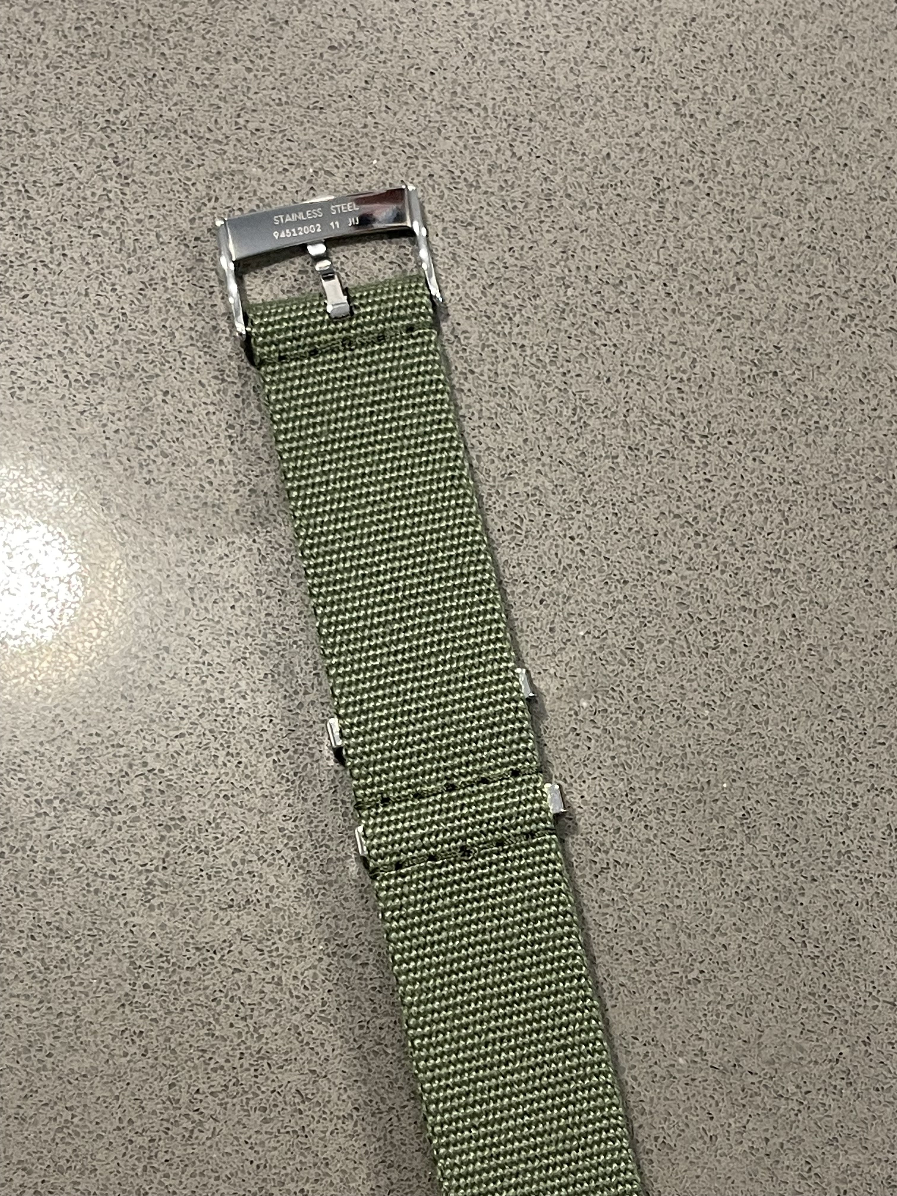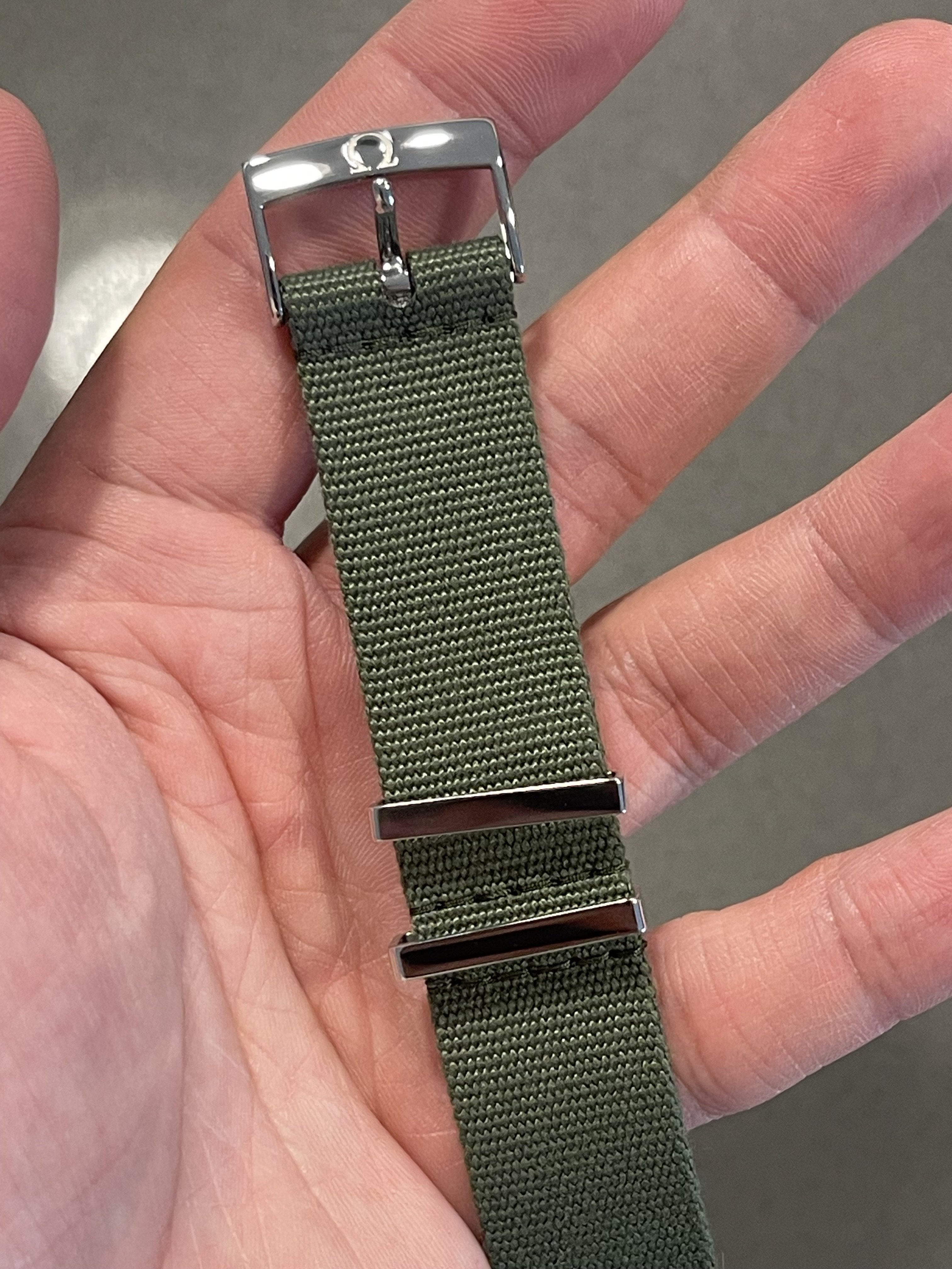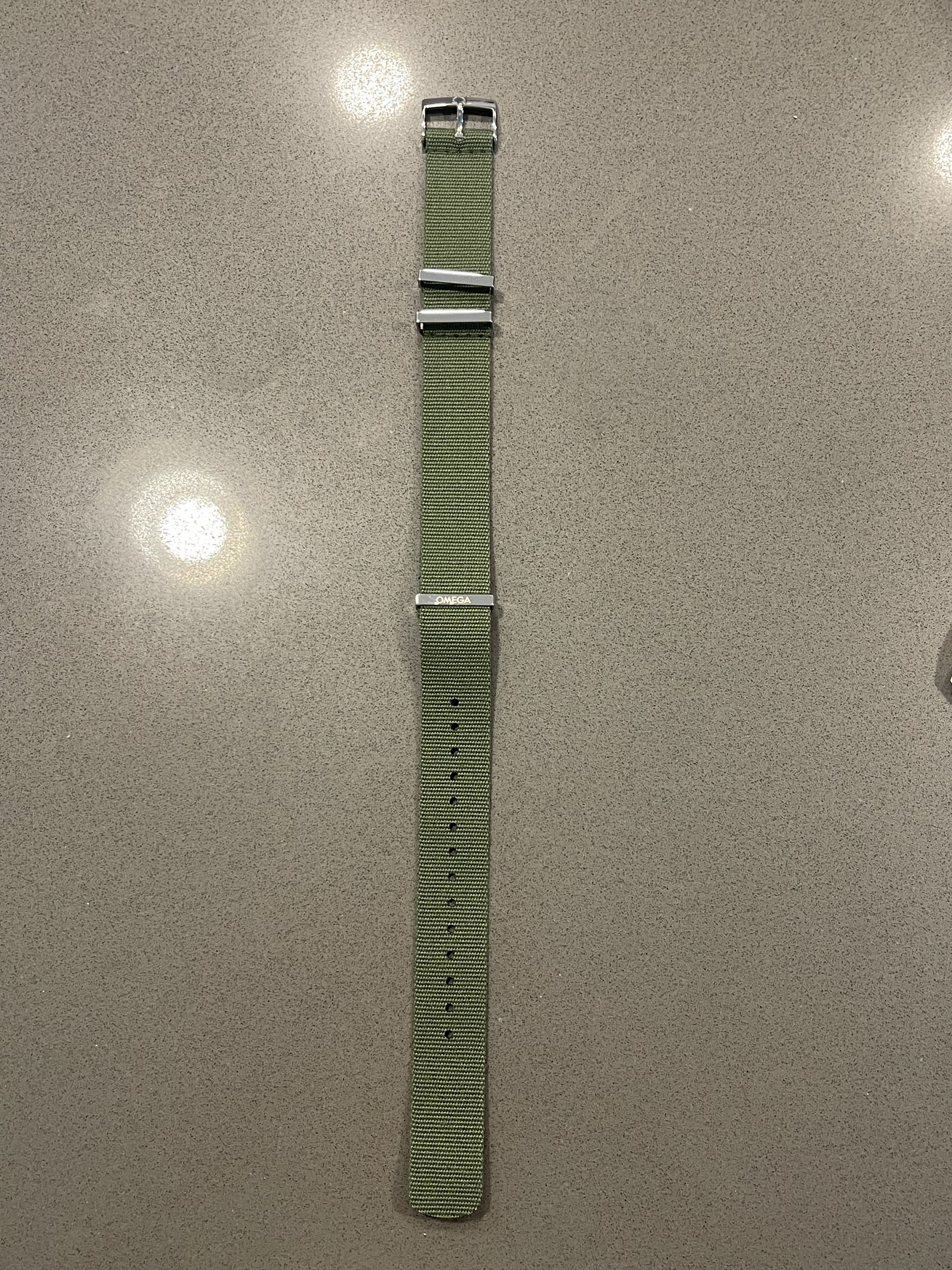 Selling an OMEGA Olive colored NATO strap in very gently-used condition. Almost zero signs of wear and will fit 19/20mm width straps.