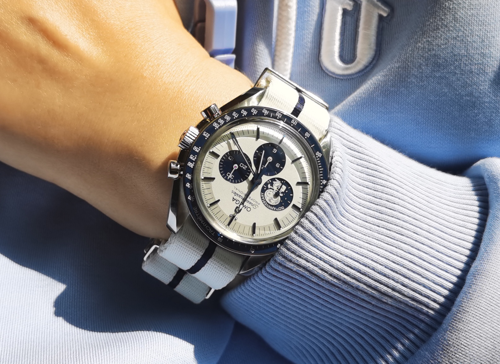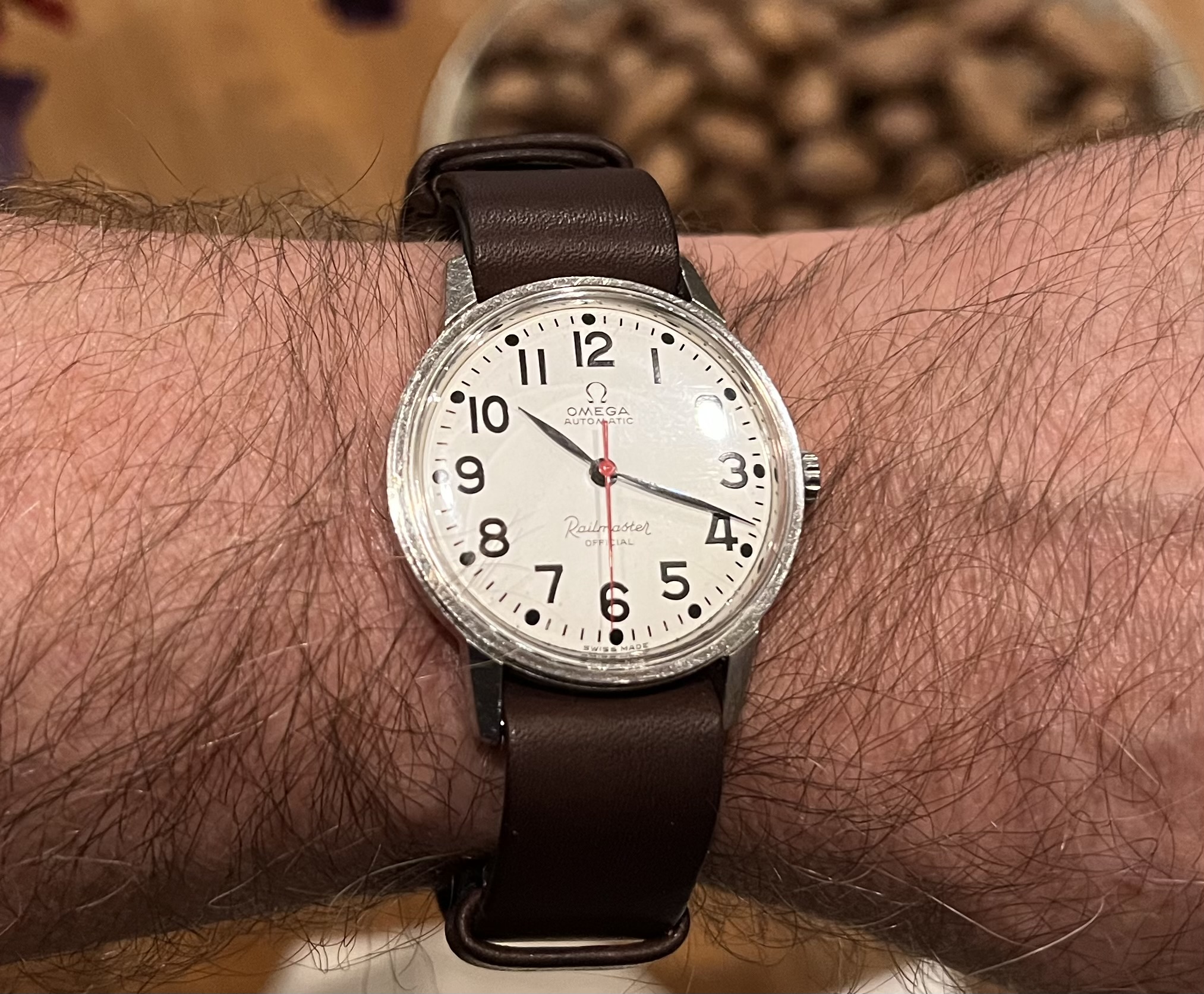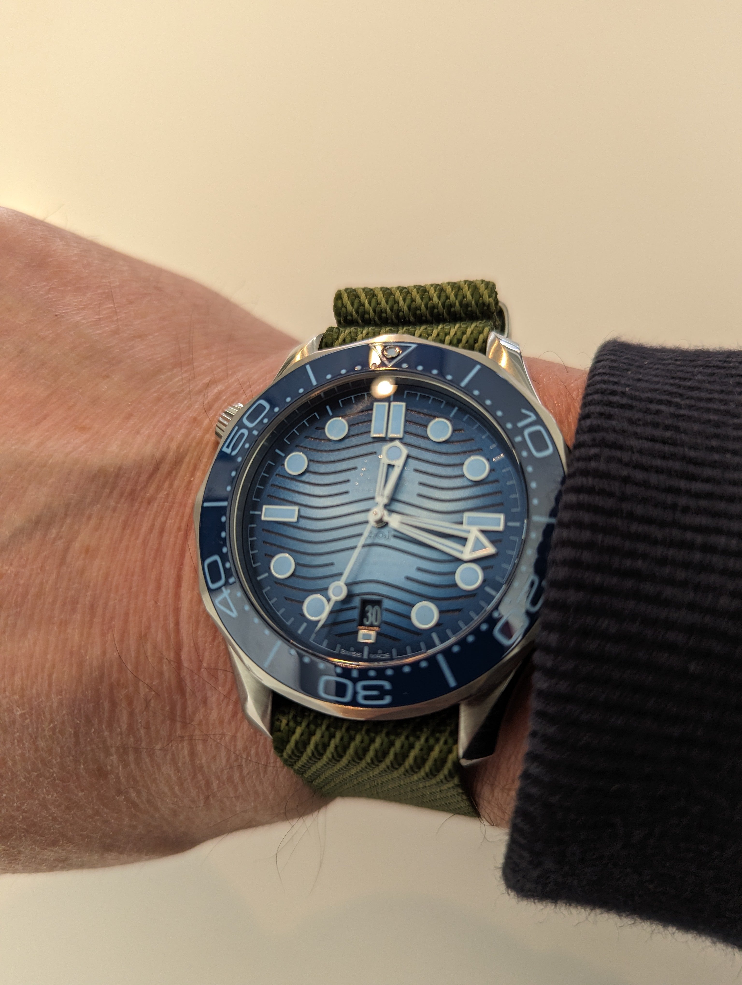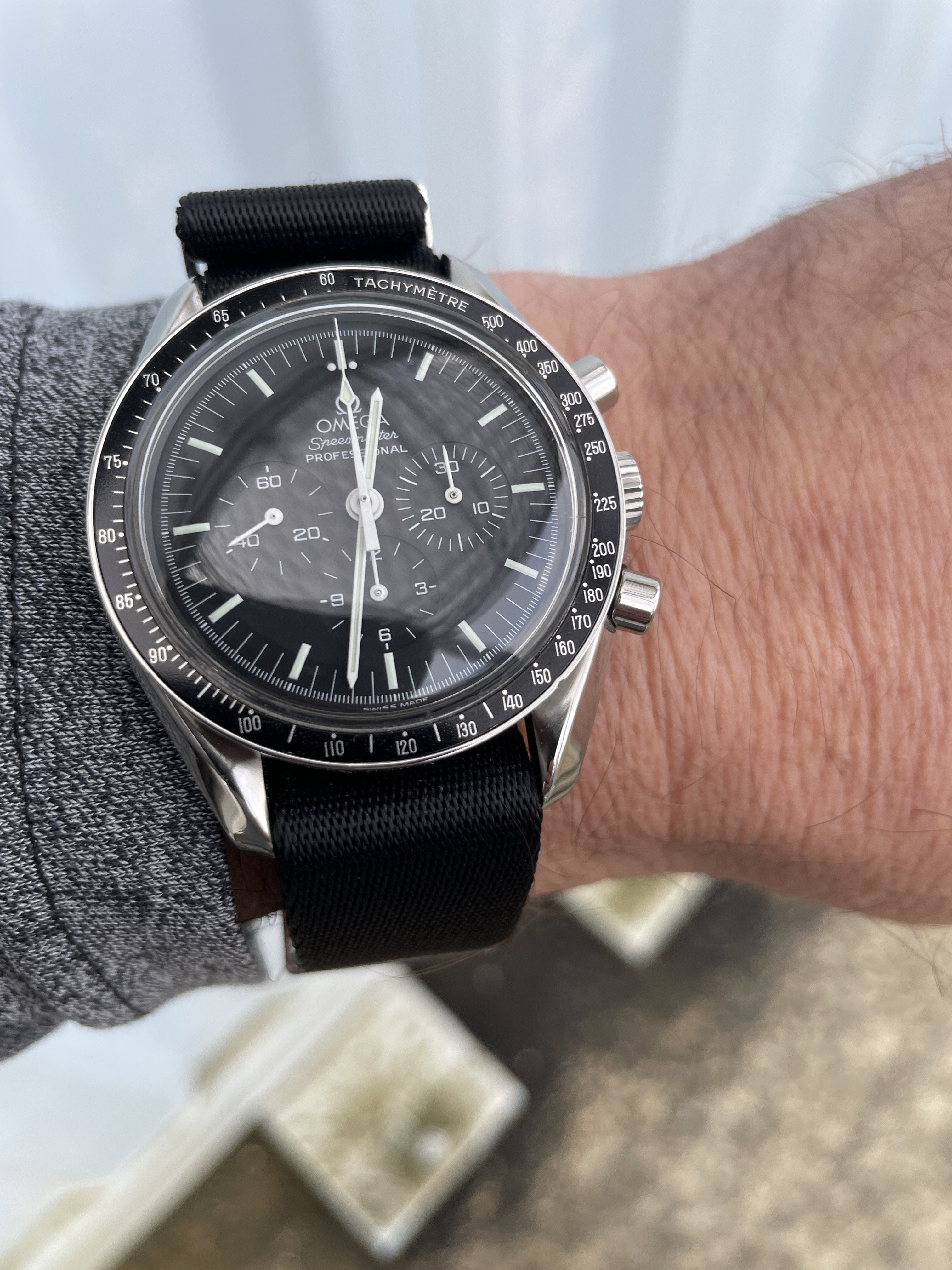 Freshly serviced just got it back today, on black and grey Omega Nato.