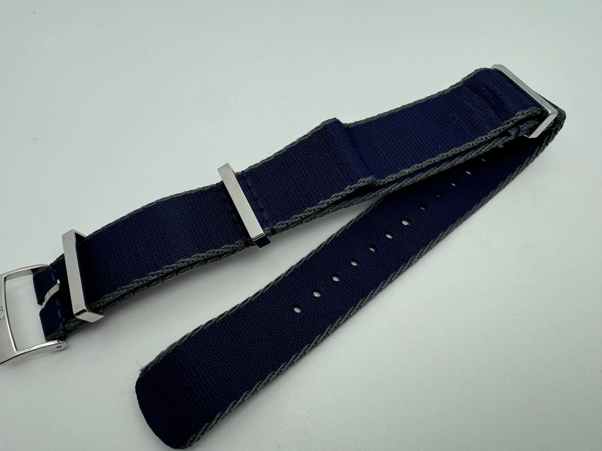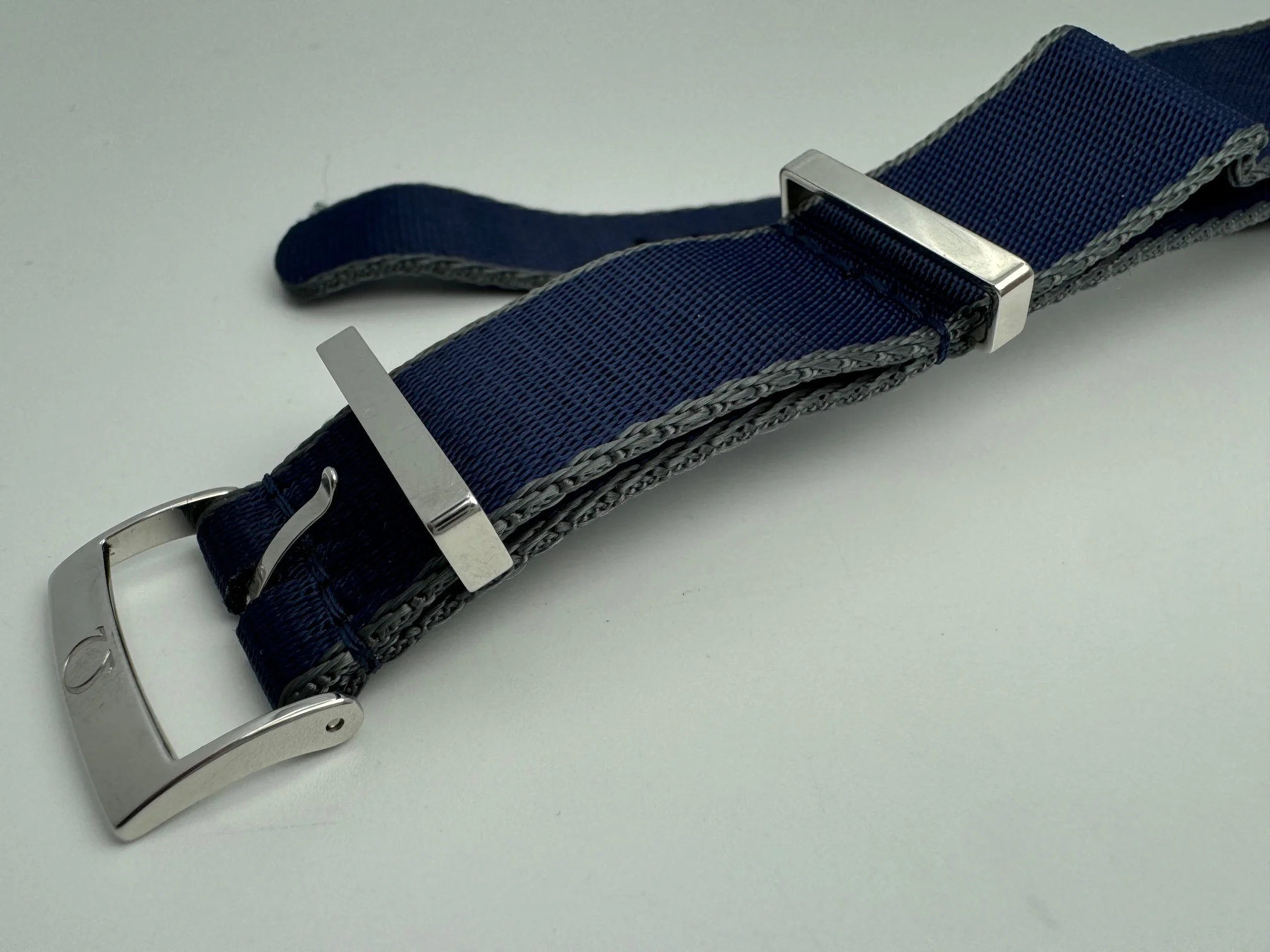 Posts 1,432 Likes 1,431 sgrossma ·Aug 7, 2025 For sale is an Omega NATO Polyamide Fabric Strap Blue/Grey CWZ007887 20mm. The strap is worn, but in excellent overall condition with some light wear on the keepers. Current MSRP is $190. Asking $110 shipped via USPS mail.
