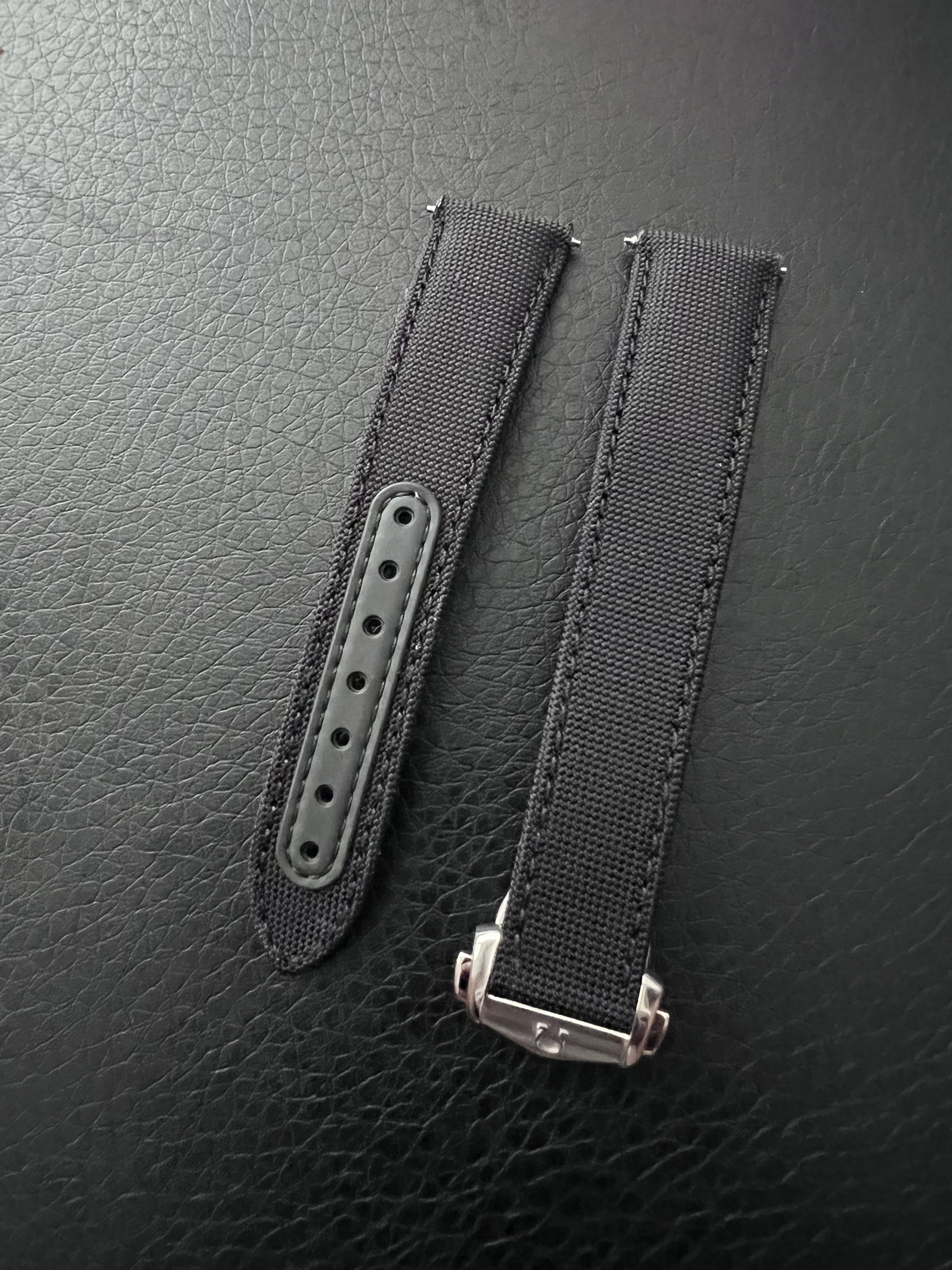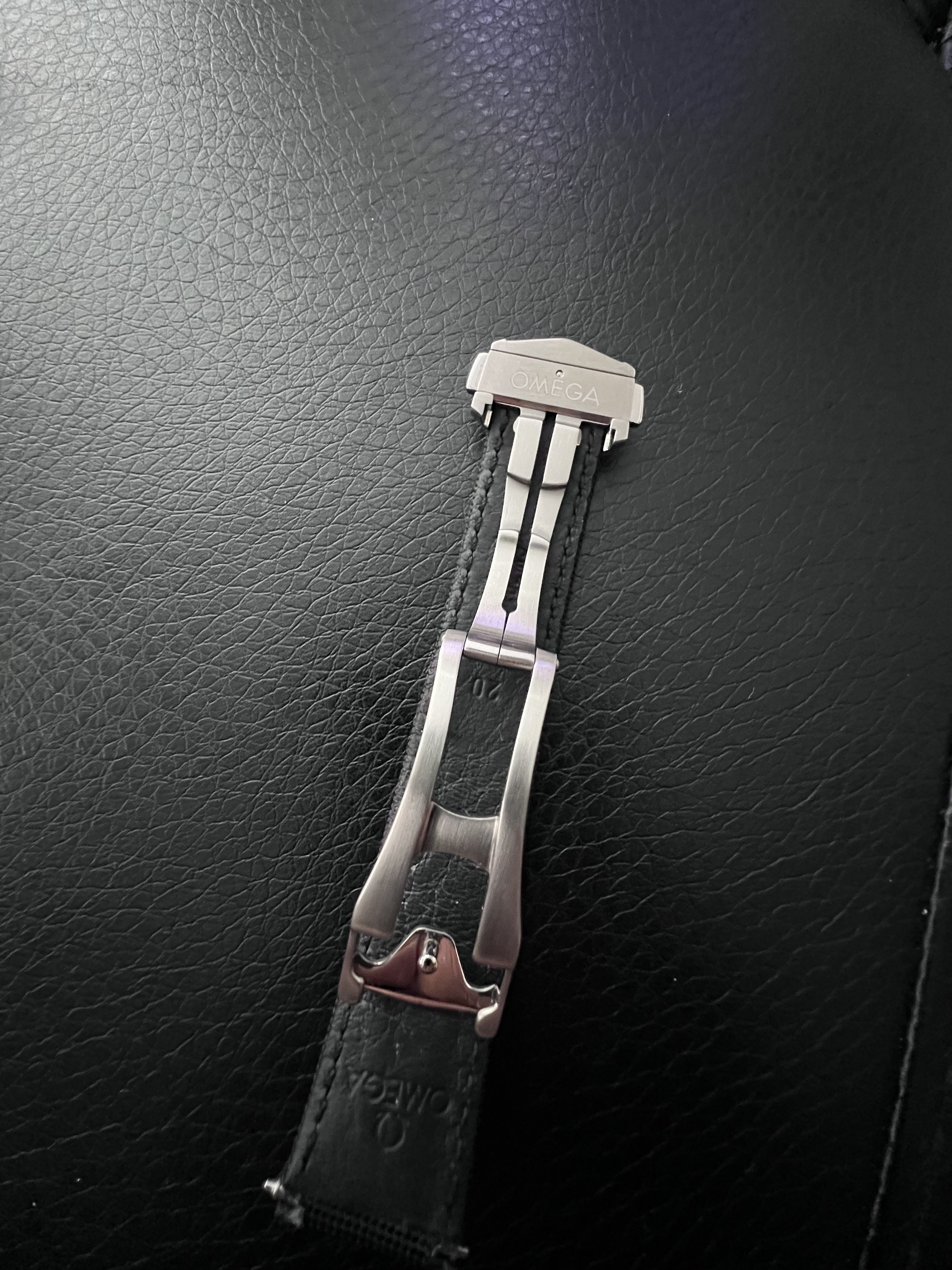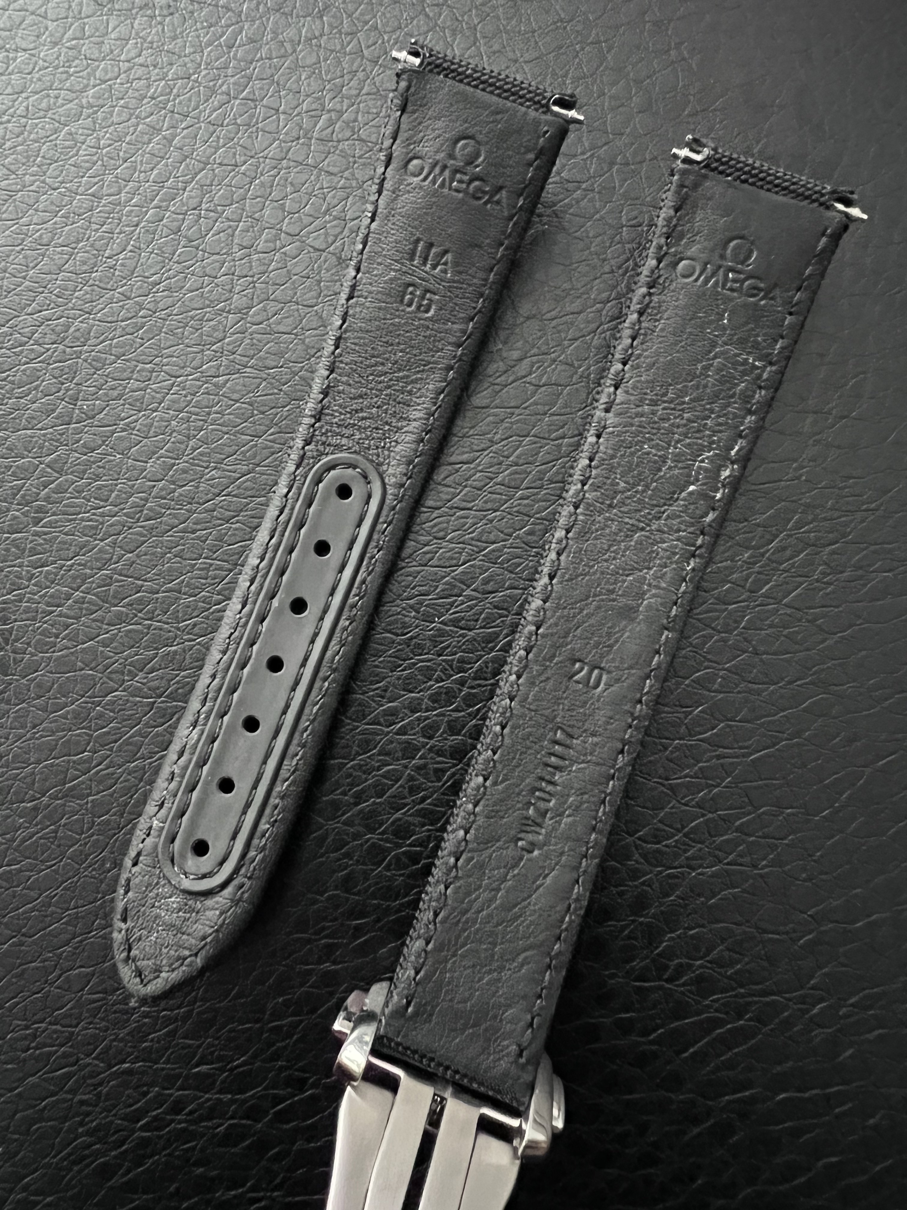 ·LIKE NEW GENUINE OMEGA DEPLOYMENT STRAP 20mm X 16mm CWZ014117 Black Fabric c/w Black Stitching (springbars included) and 16mm Deployant clasp STZ007387. This setup is an option in the new 3861 Speedmaster. Both are in perfect condition and genuine Omega pieces. I’d like to sell together but will piece out.