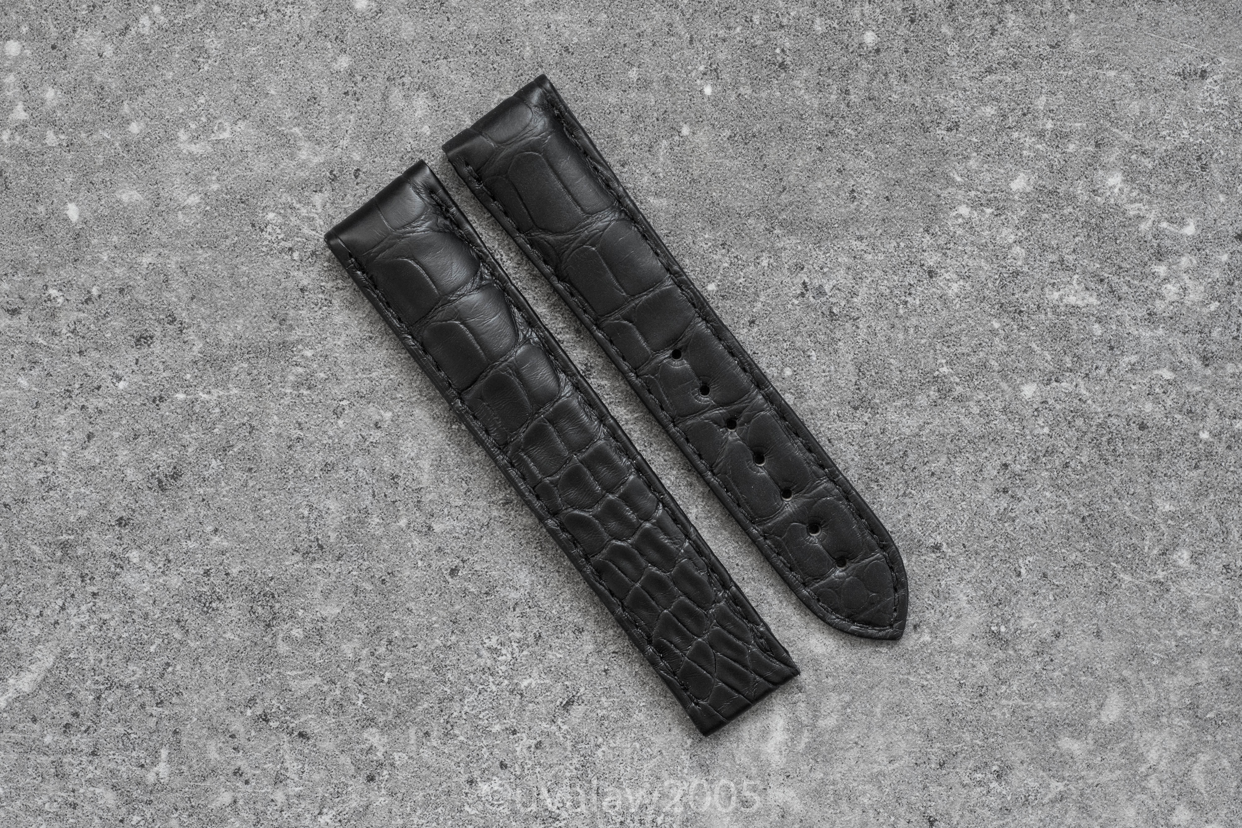 ·For sale is my Omega matte black alligator leather deployant strap, ref. 98000278, in like new condition. Strap was mounted to a deployant clasp but never worn. 20mm wide at the lugs and 18mm at the clasp. Will fit 41mm Seamaster Pro, 42mm Planet Ocean, and 42mm Speedmaster, as well as other watches with 20mm lugs.