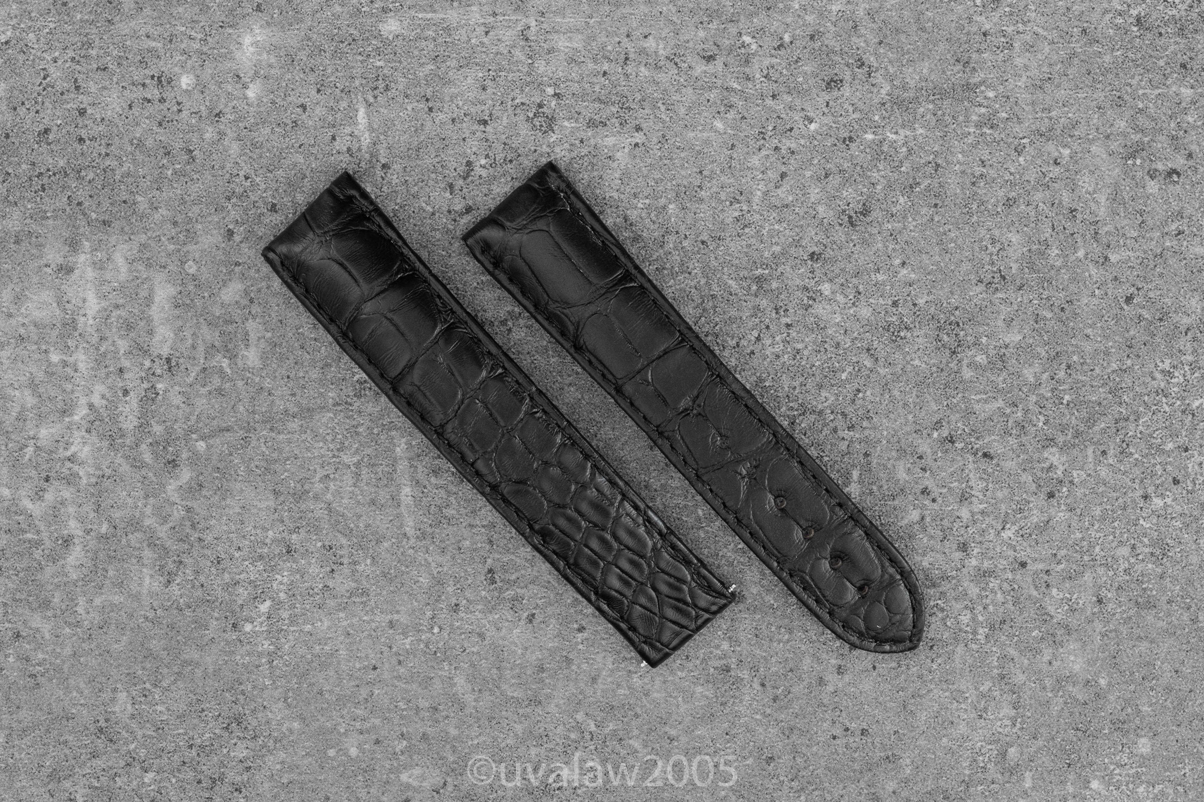 ·For sale is my Omega matte black alligator leather deployant strap, ref. 98000278, in excellent condition. Gently worn a few times with no tears or stains. 20mm wide at the lugs and 18mm at the clasp. Will fit 41mm Seamaster Pro, 42mm Planet Ocean, and 42mm Speedmaster, as well as other watches with 20mm lugs.