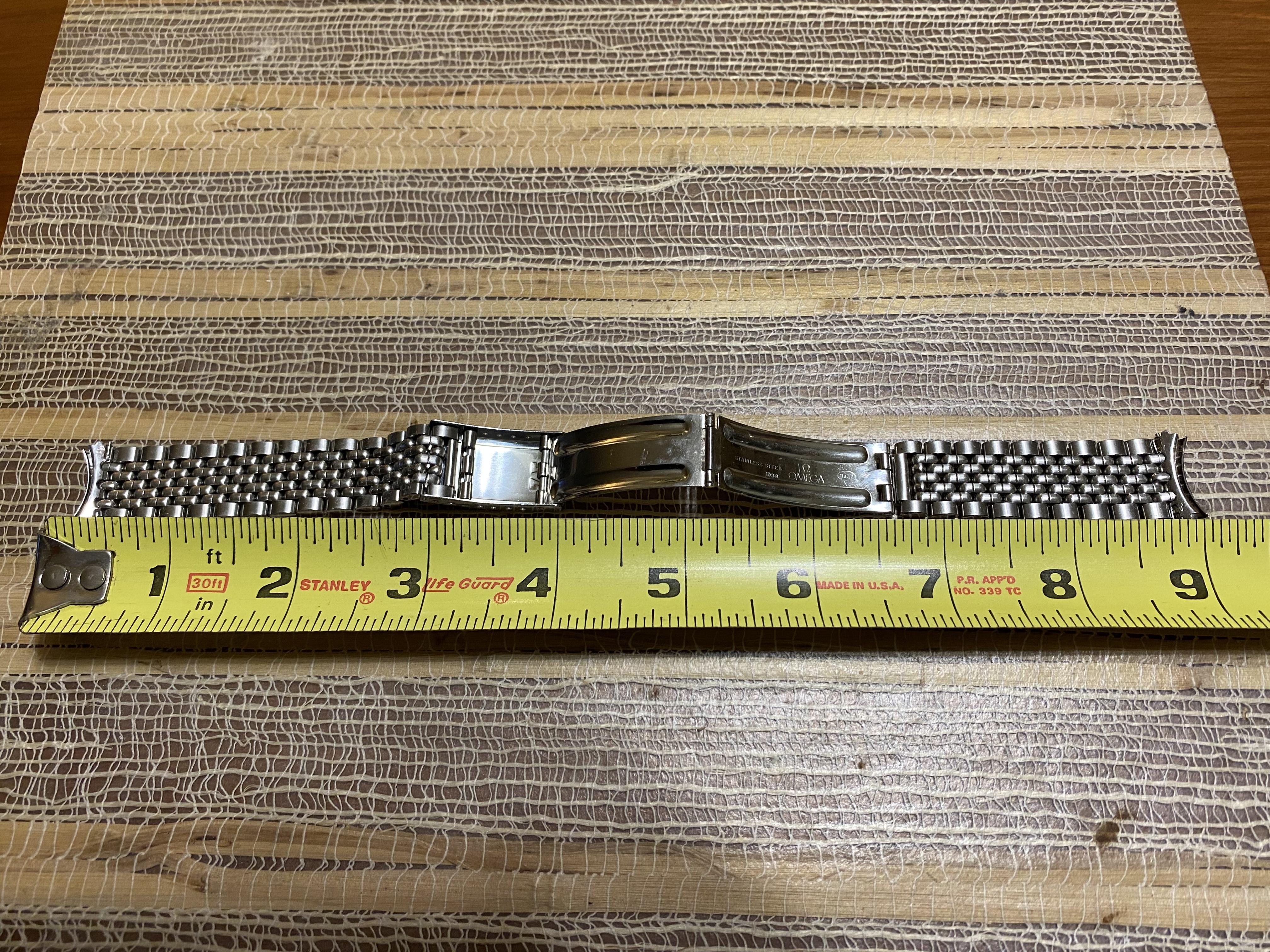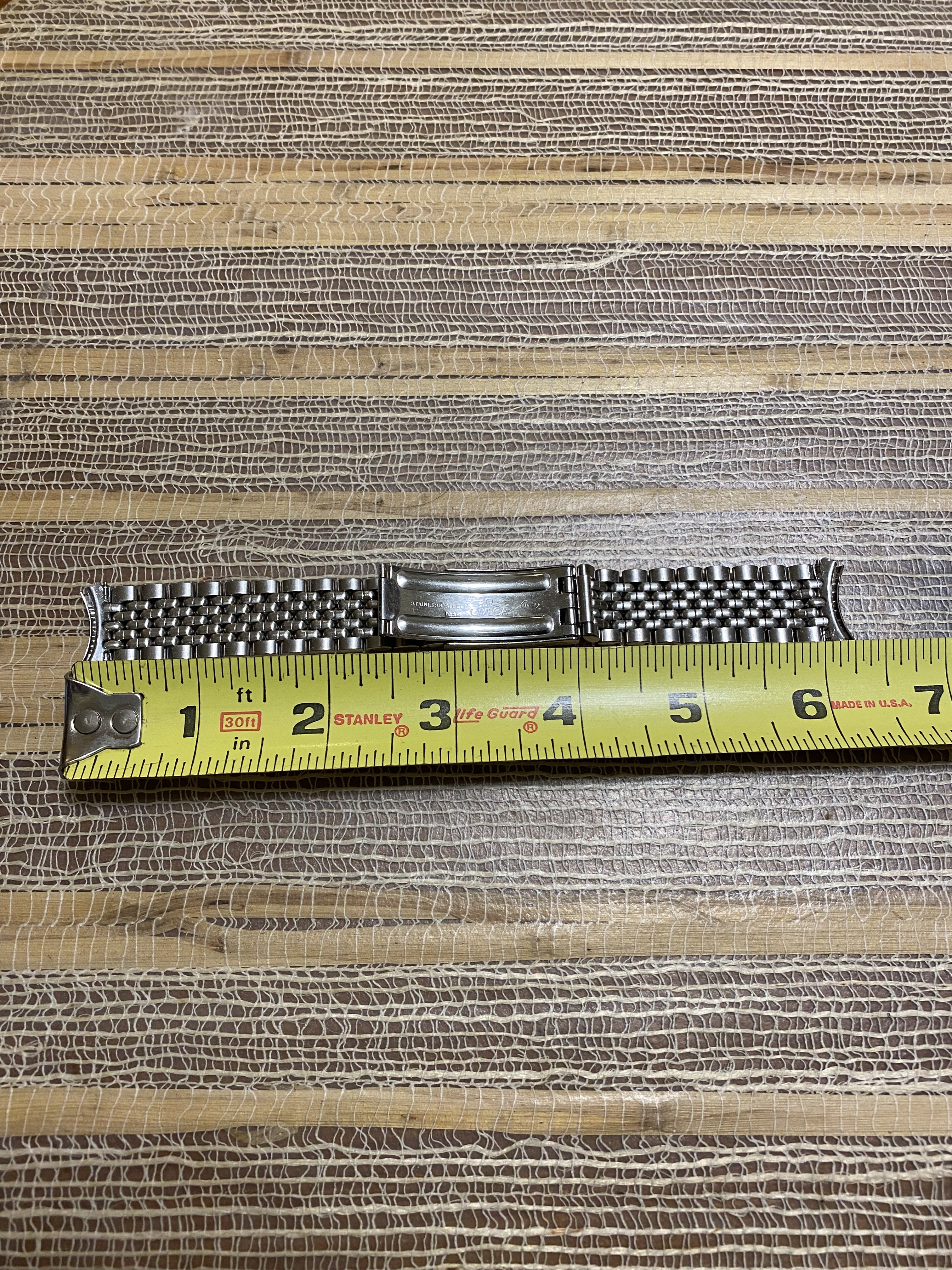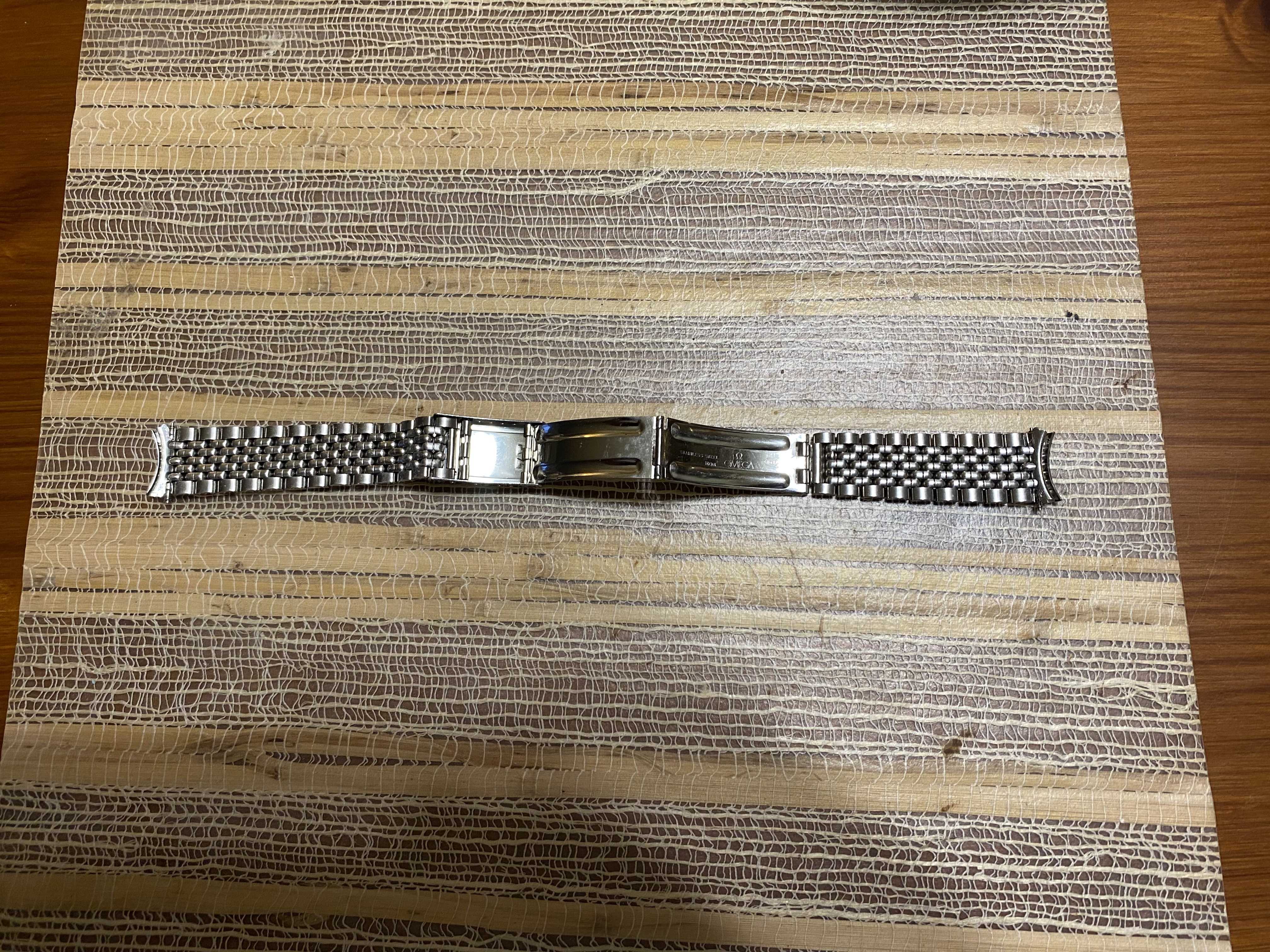 ·Good day all. For sale is a very nice OEM Omega No.12/1036 five row beads of rice stainless steel bracelet. Can be sold with or without a pair of OEM Omega No.11 end links and will fit many vintage Omega models with an 18mm lug width. The bracelet is 6.25” in length with the end links and in excellent condition with no stretch and no significant scratches, scuffs or dents. The clasp closes tightly as it should. The bracelet is currently sized to fit a 7.5” wrist and there are unused expansion holes still remaining on the clasp so the bracelet can be sized up or down. I’d like to net $225 USD for the bracelet only and $275 USD for the bracelet with the end links. Buyer pays shipping and insurance via USPS priority mail at my cost. Payment via wire transfer, PayPal F&F, Zelle, Venmo, Wise or Revolut. USA buyers preferred. Returns accepted with no questions asked if initiated within 7 days of receipt, bracelet and links are returned in same condition as received, and buyer pays for return shipping and insurance. Thanks for looking and thanks to OF for the space.