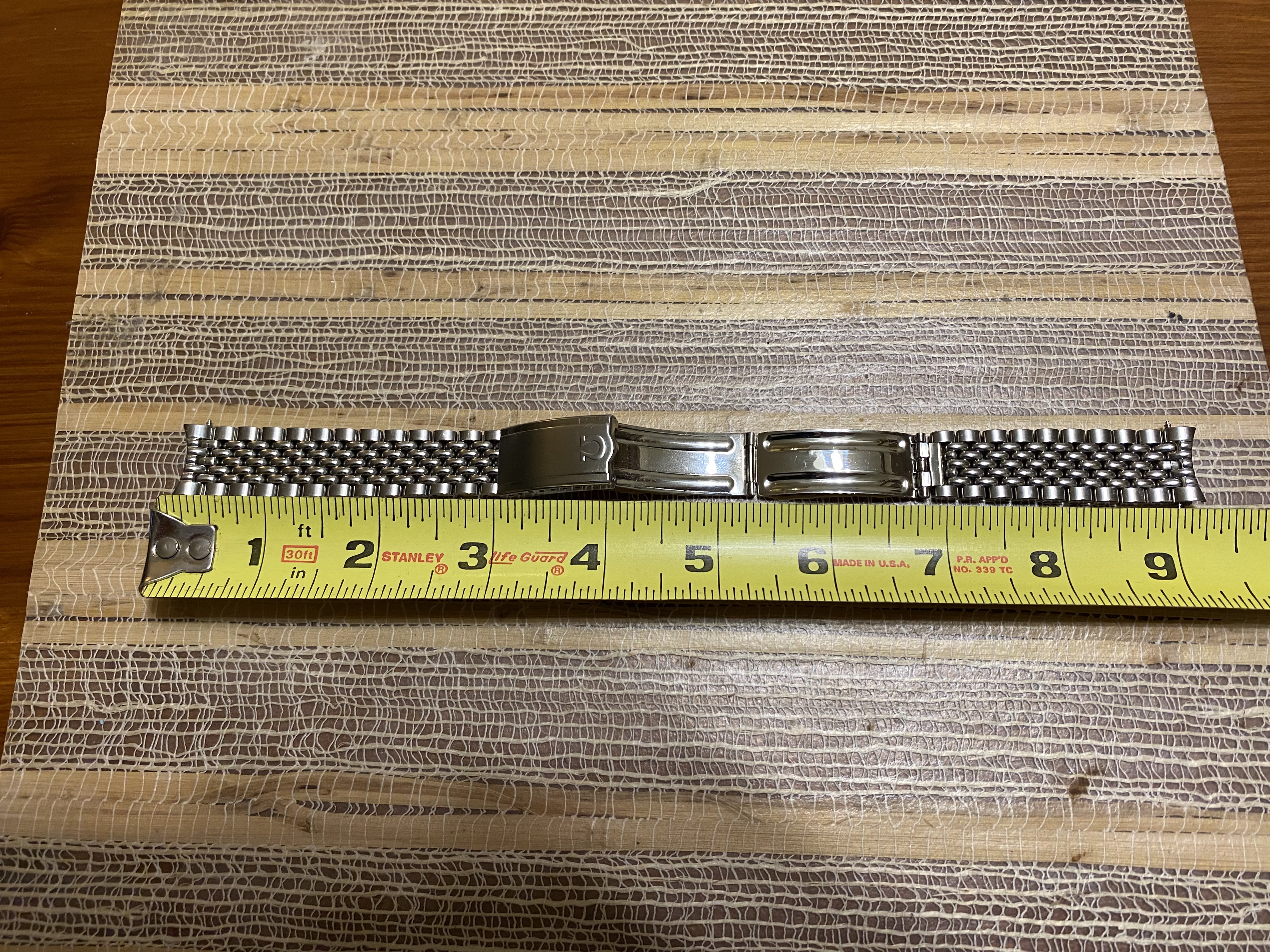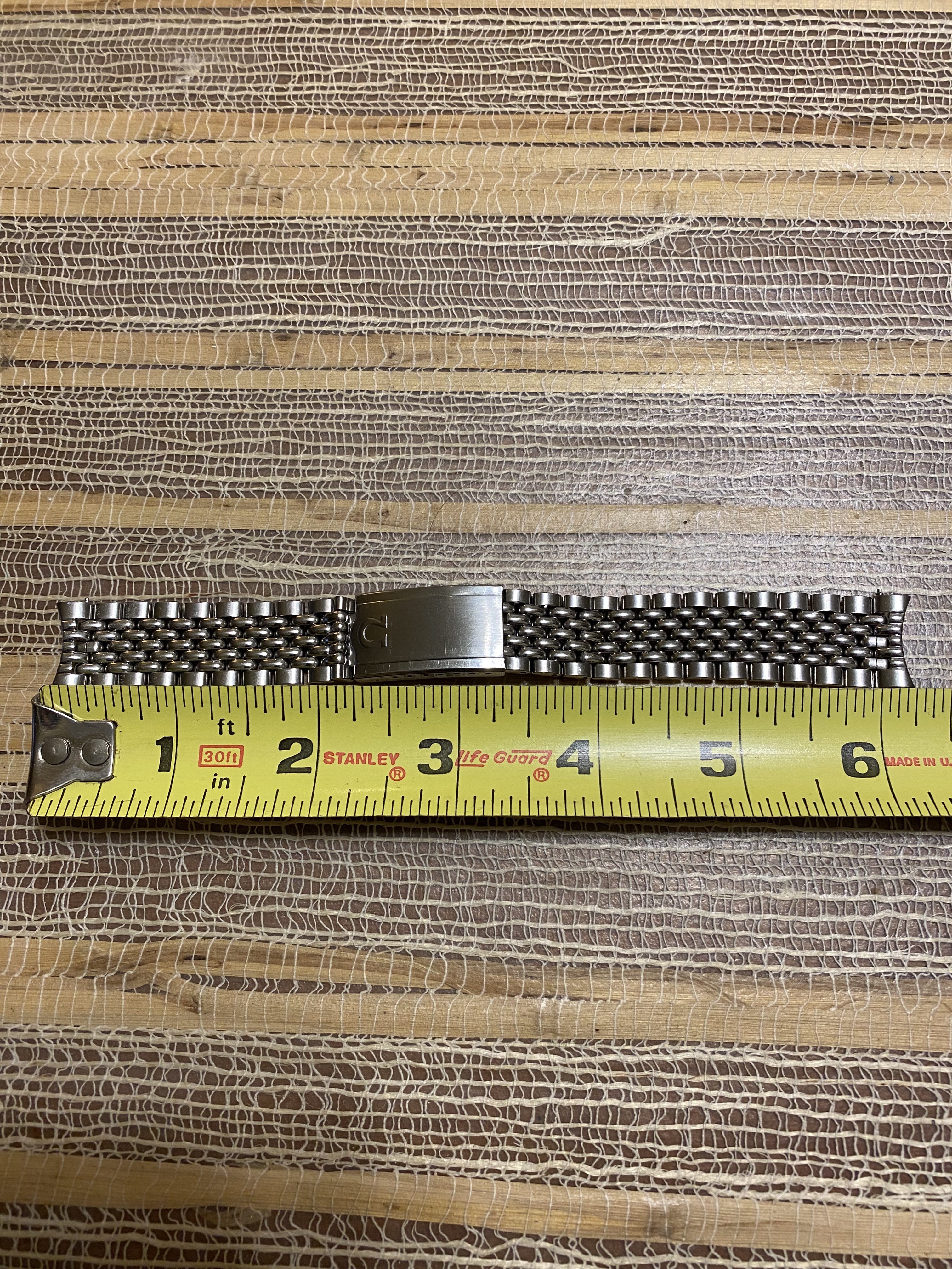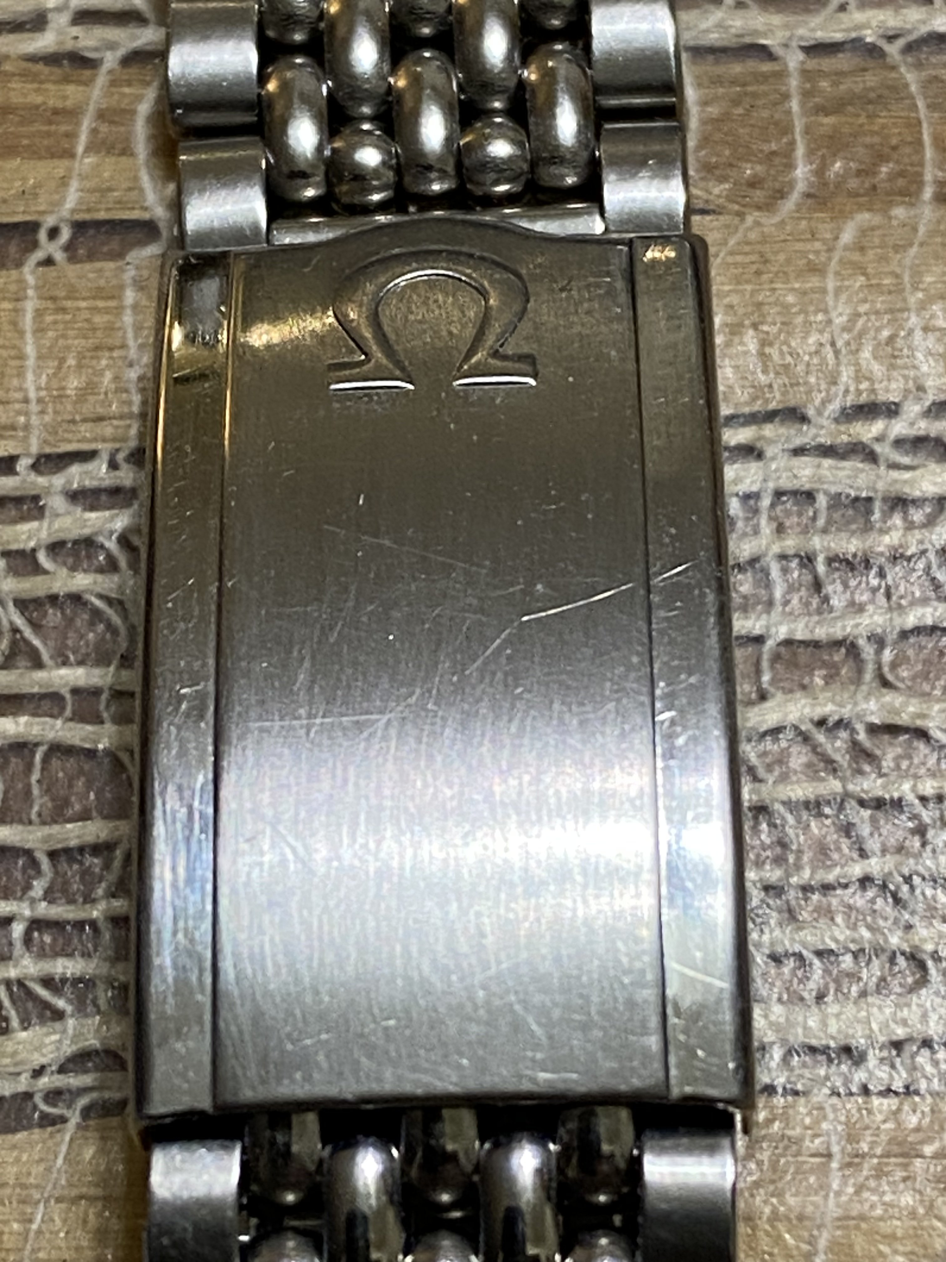 ·Good day all. For sale is a very nice OEM Omega No.12/1036 five row beads of rice stainless steel bracelet. Can be sold with or without a pair of OEM Omega No.11 end links and will fit many vintage Omega models with an 18mm lug width. The bracelet is 6.25” in length with the end links and in excellent condition with no stretch and no significant scratches, scuffs or dents. The clasp closes tightly as it should. The bracelet is currently sized to fit a 7.5” wrist and there are unused expansion holes still remaining on the clasp so the bracelet can be sized up or down. I’d like to net $225 USD for the bracelet only and $275 USD for the bracelet with the end links. Buyer pays shipping and insurance via USPS priority mail at my cost. Payment via wire transfer, PayPal F&F, Zelle, Venmo, Wise or Revolut. USA buyers preferred. Returns accepted with no questions asked if initiated within 7 days of receipt, bracelet and links are returned in same condition as received, and buyer pays for return shipping and insurance. Thanks for looking and thanks to OF for the space.