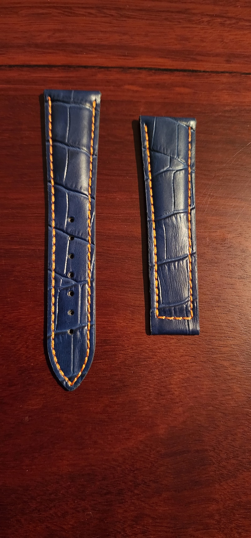 ··IG: #blubarb19Appreciate your thoughts on this strap. The owner bought it online about eight years ago. The strap looks like genuine leather and the stitching looks good, but I am not sure if that ref. number aligns to a blue/orange strap. Also,