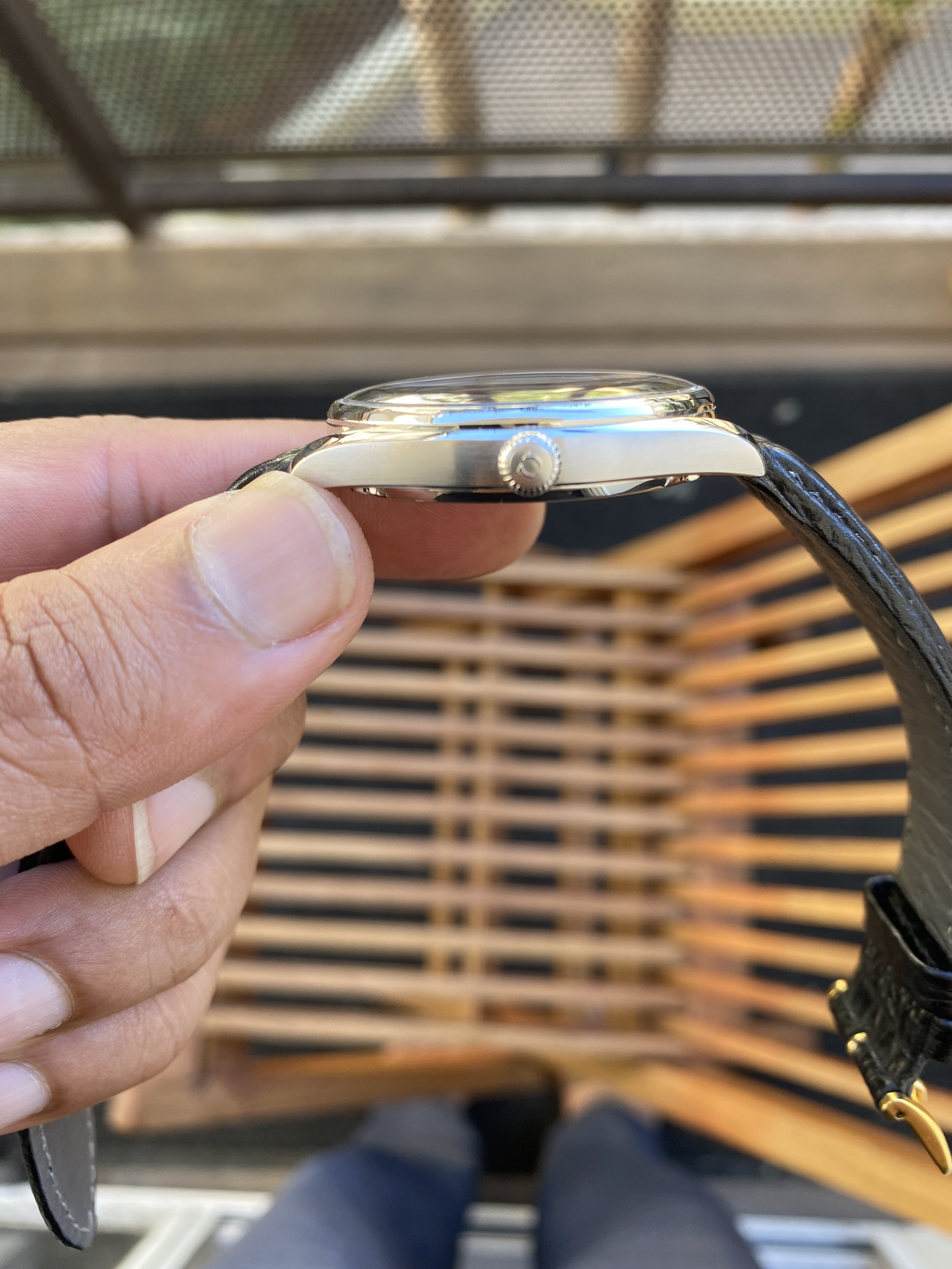 Strap and buckle: It comes with the original strap but I have put it on a Hirsch shark skin strap that I will include.