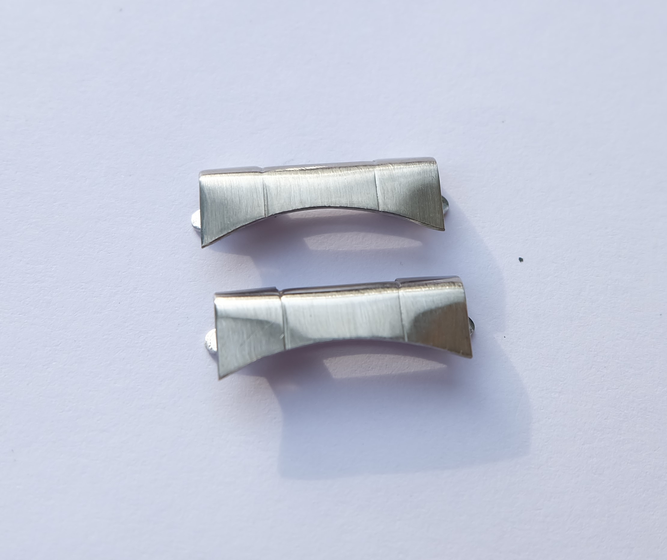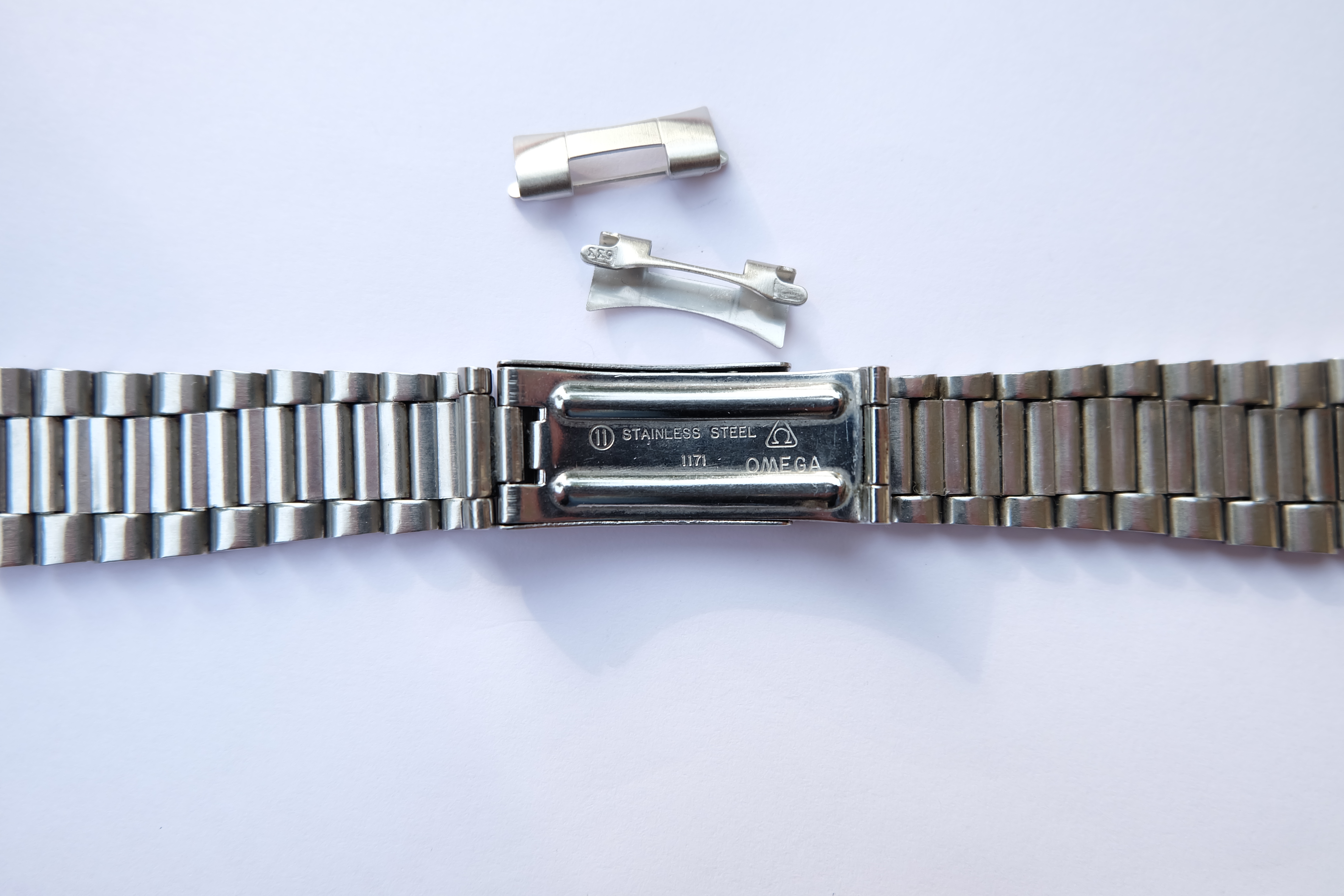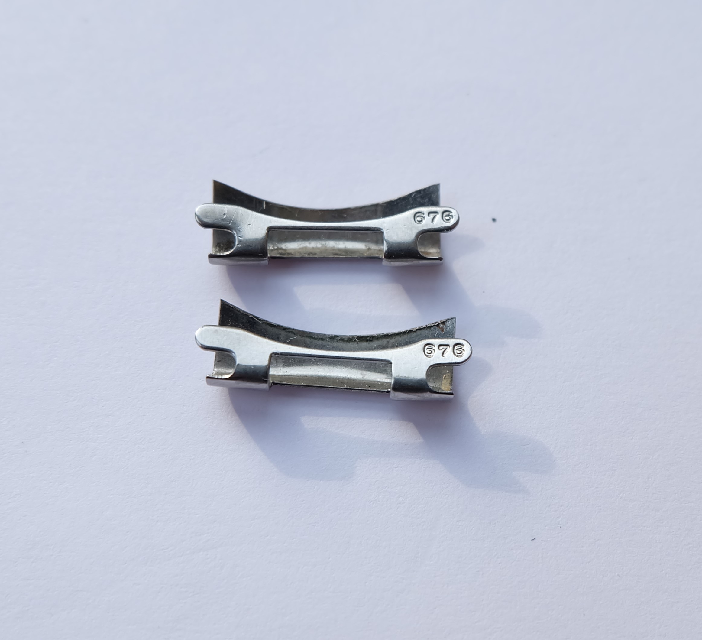 Also for sale, a pair of 676 Omega steel end links in 20mm. These will also fit 1171 bracelets and Speedmaster/Seamaster watches. £75 + £10 world shipping (net.) See last two photos.
