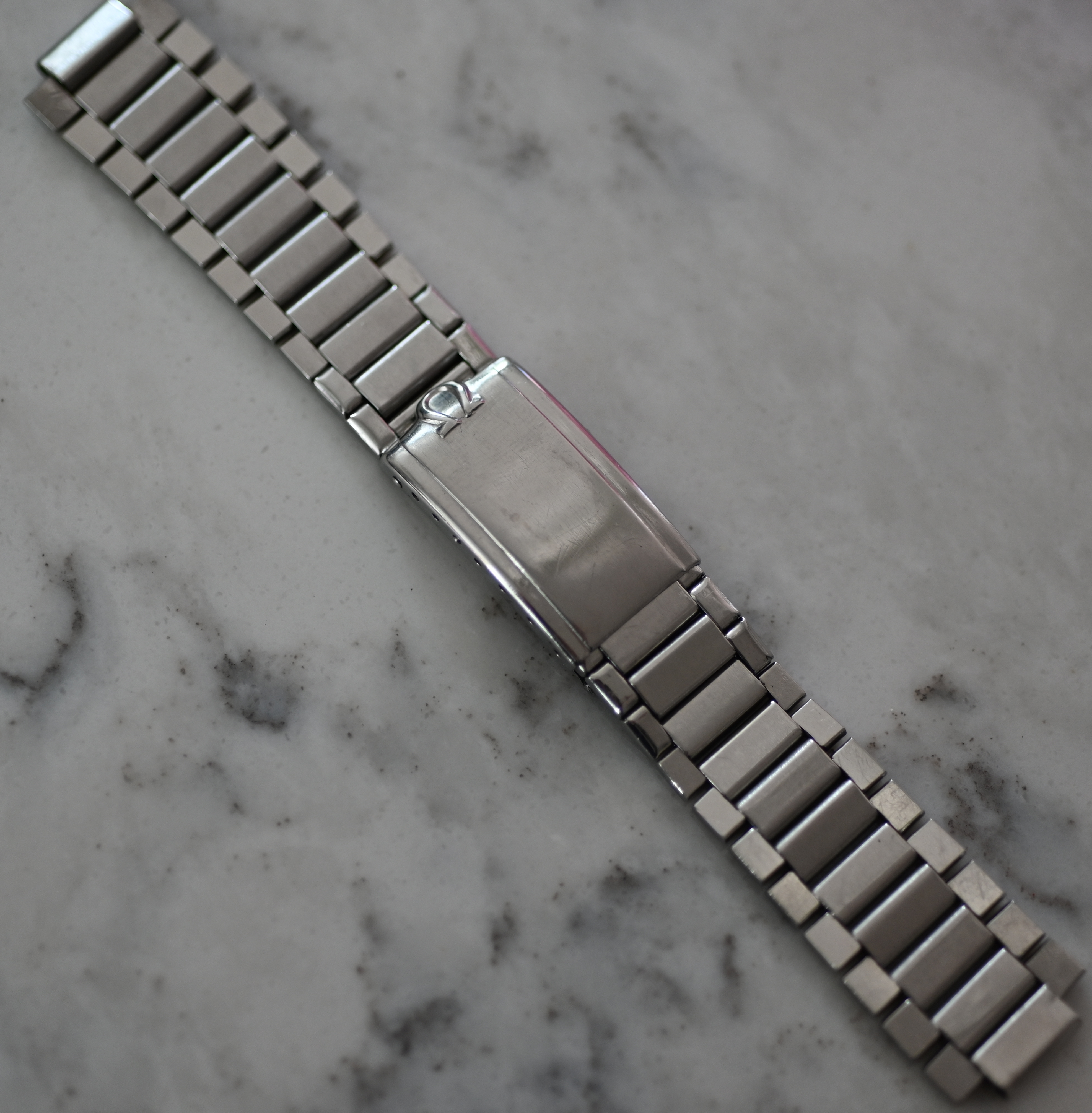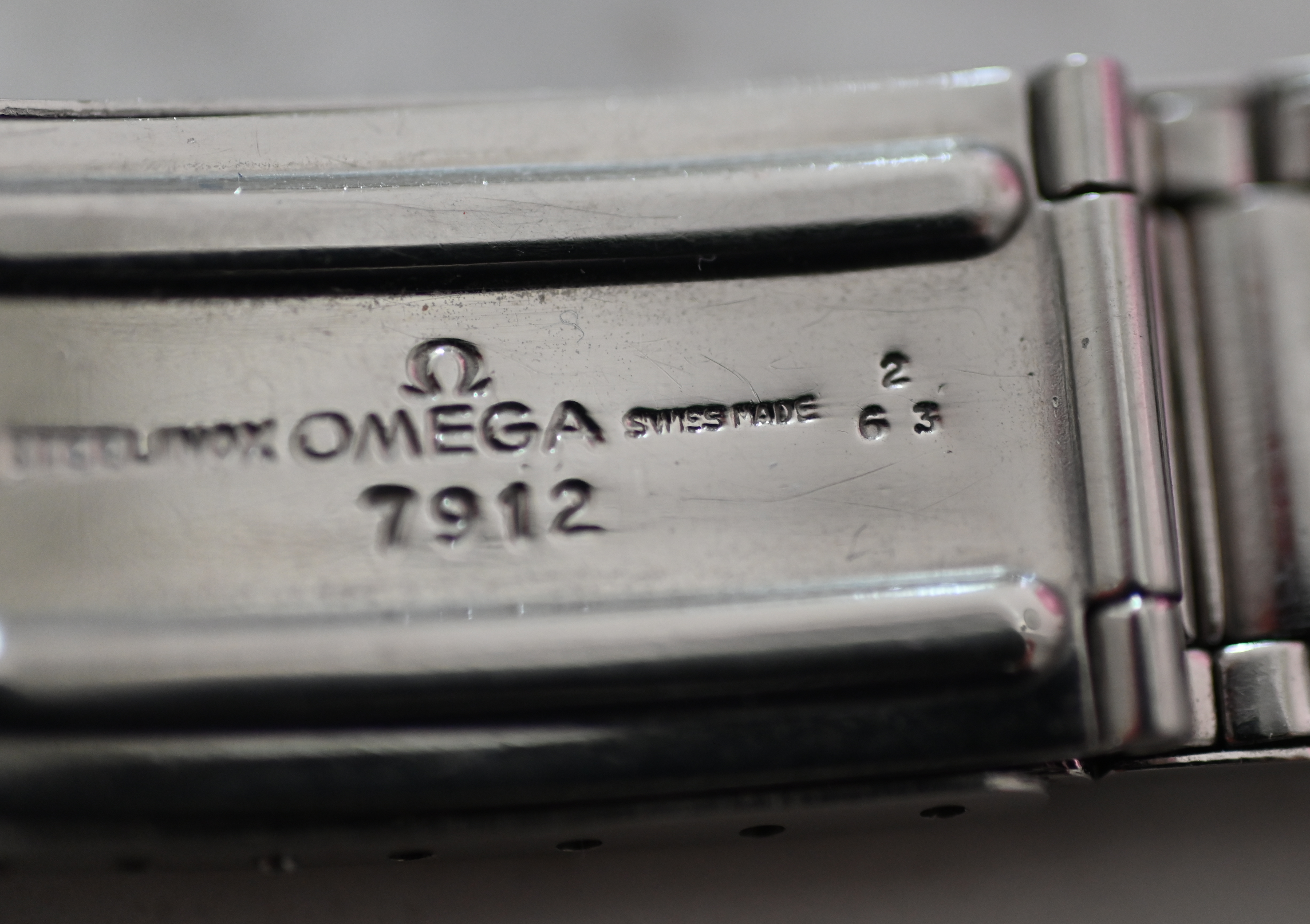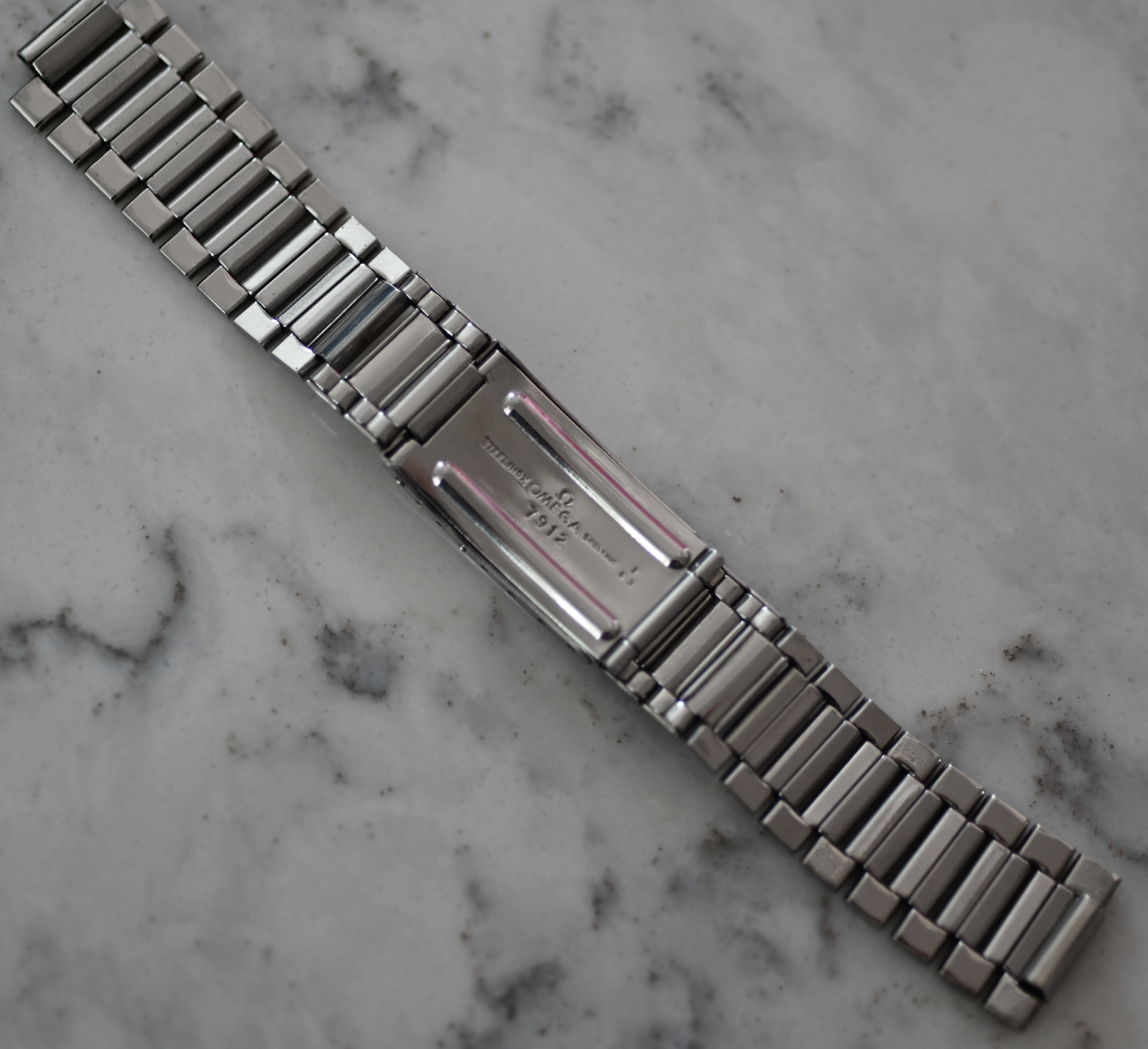 7912 / 2-63 steel bracelet, unrestored with some wear but lots of life left in it. One of the elastic links lost it's elasticity the rest are still stong.