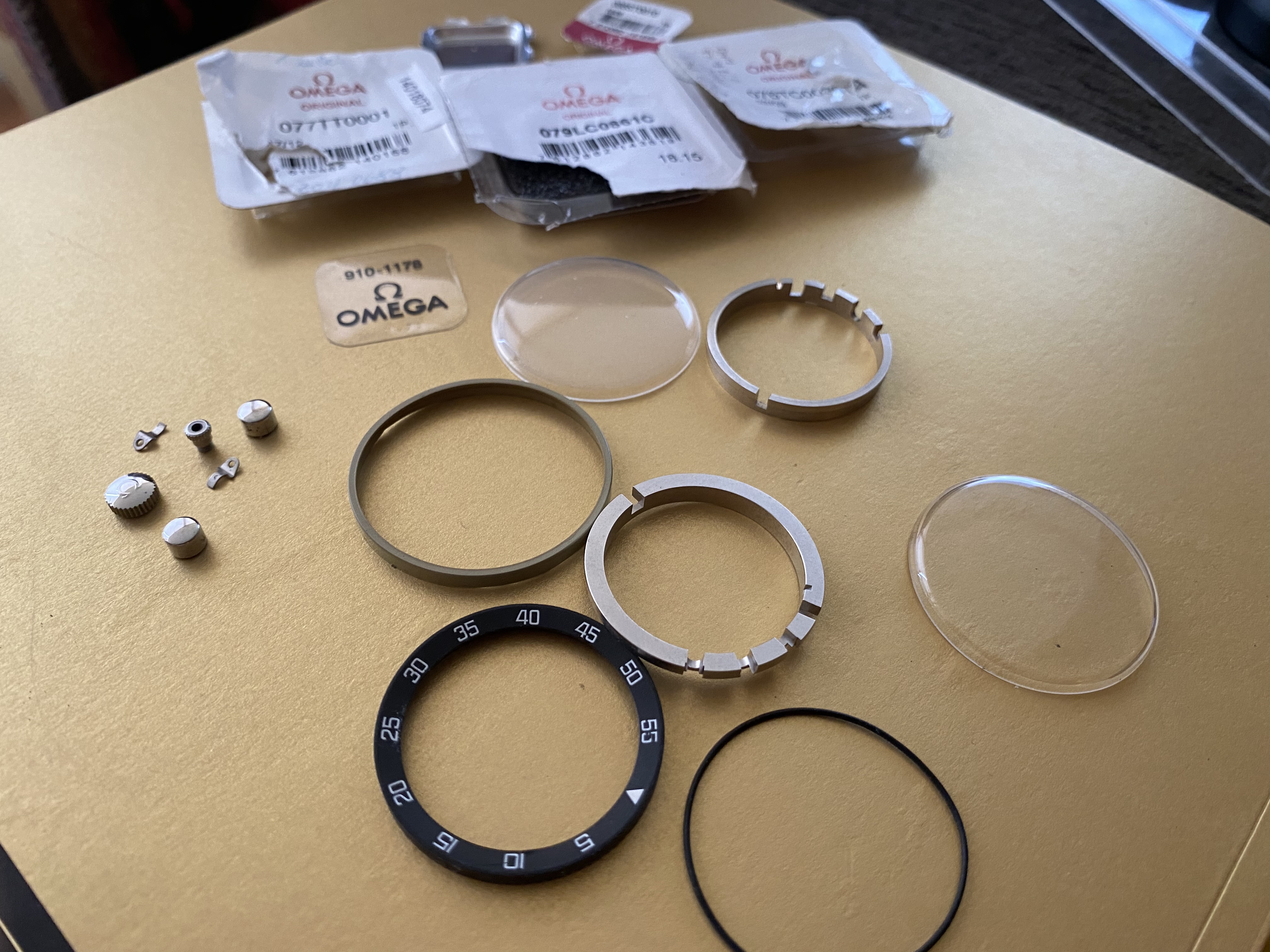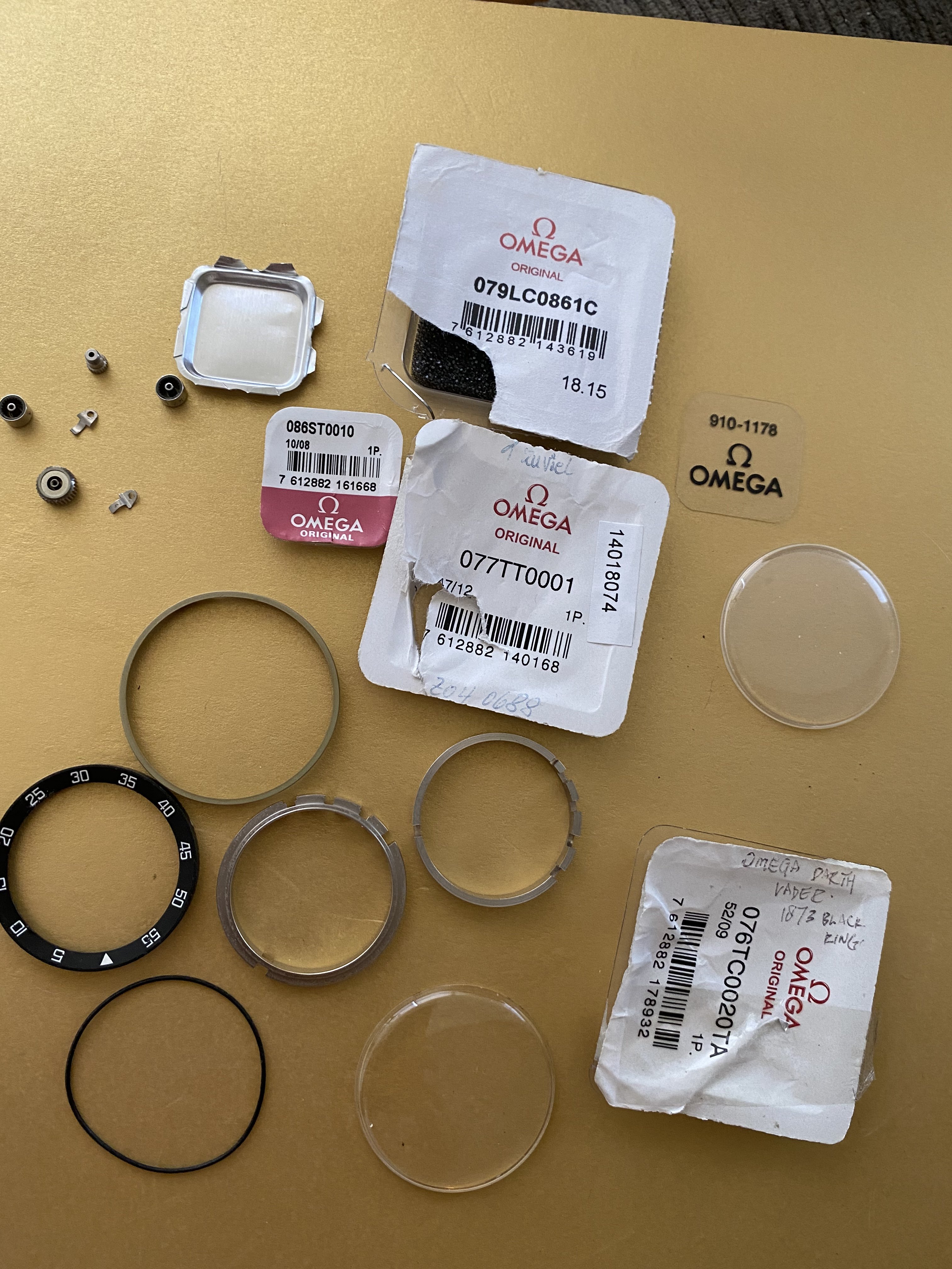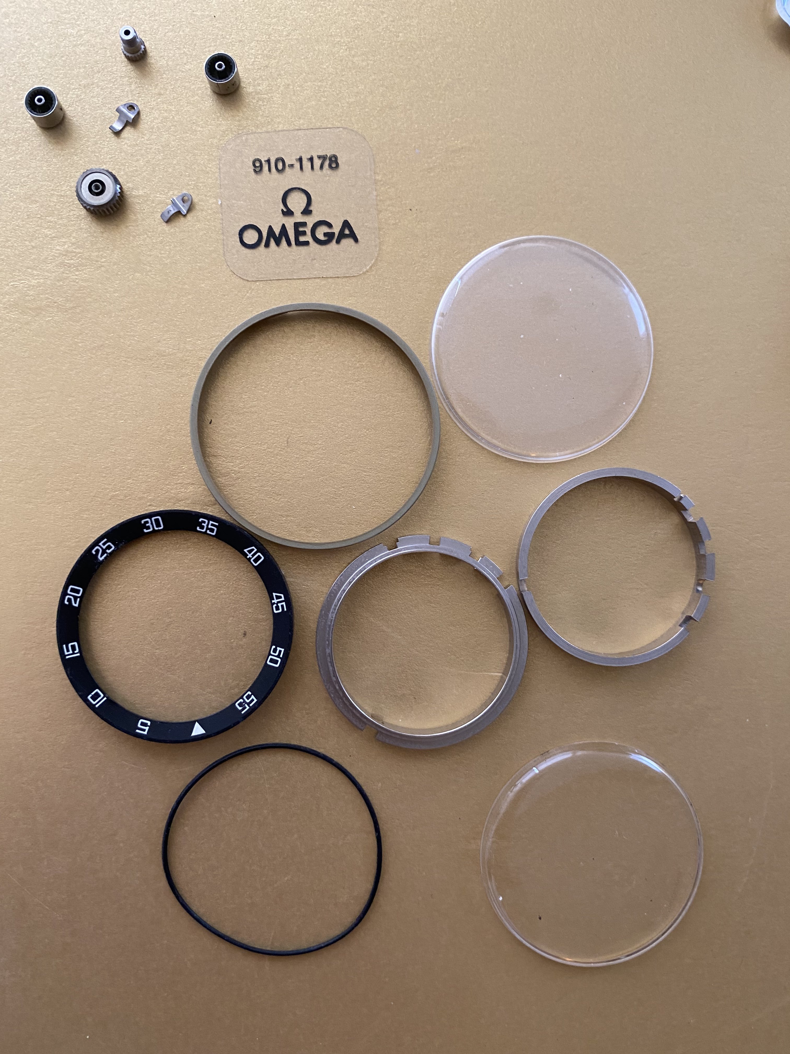 crown and pushers, some packaging with parts number, not sure if they helps or if they are even for the parts, not intended to mislead or perhaps better off you assume they are not meant for them. Sold as a lot at $200 inclusive of shipping , please see photos just taken.