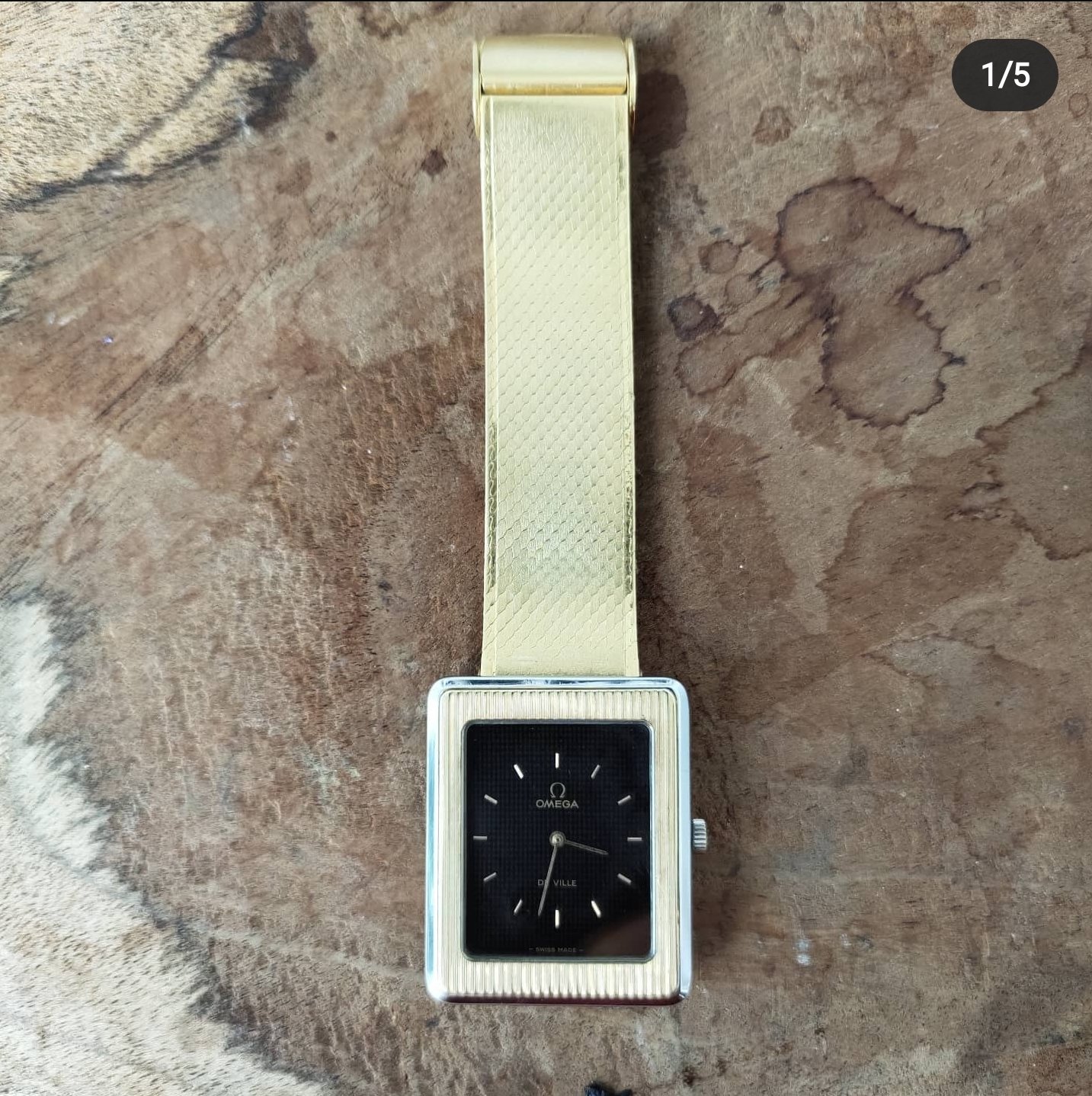 路Ive made a post long ago about this, but it was in terrible condition. Recently, a better one popped up but one similar issue is found. From the pictures you can see that the "De Ville" gold plaque is missing. Another thing to point out is that, I have my doubts on the crown, as the ones ive seen are all in gold and not in steel. As for the movement, that I am not sure whether it is real or not. Can anyone confirm the authenticity of it? And since the gold "De Ville" plaque was supposed to be solid gold too, how much would a non complete one like this cost?