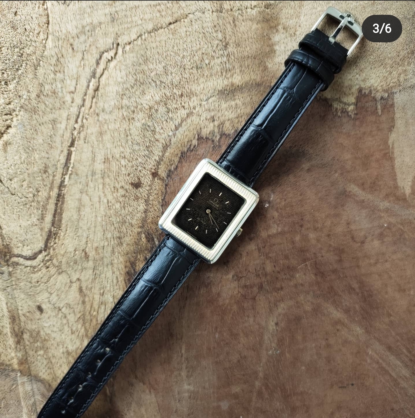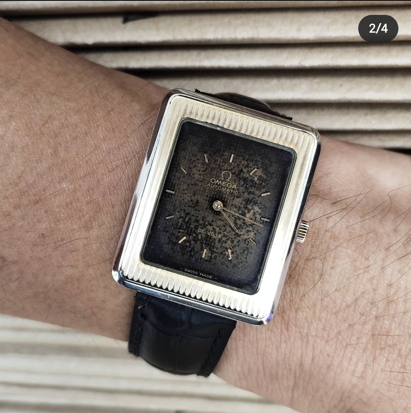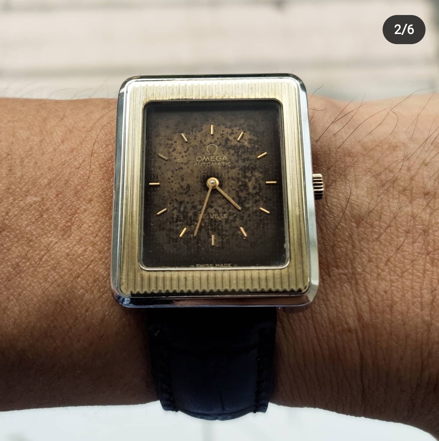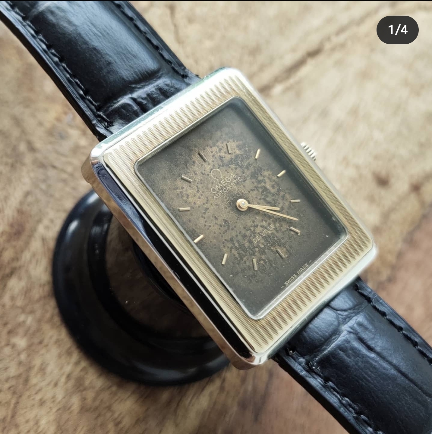路Continuing with my previous post, this is one of the other pieces i was interested in. It is an Omega de ville Pave d'Or. The seller says it has a solid 14k gold bezel with an aged dial (its sorta pushing the boundaries of a patina for me but still alright i guess). It has cal. 711 which is supposedly the thinnest calibre omega has ever produced too. Lastly, they claim its all real except the strap and buckle.