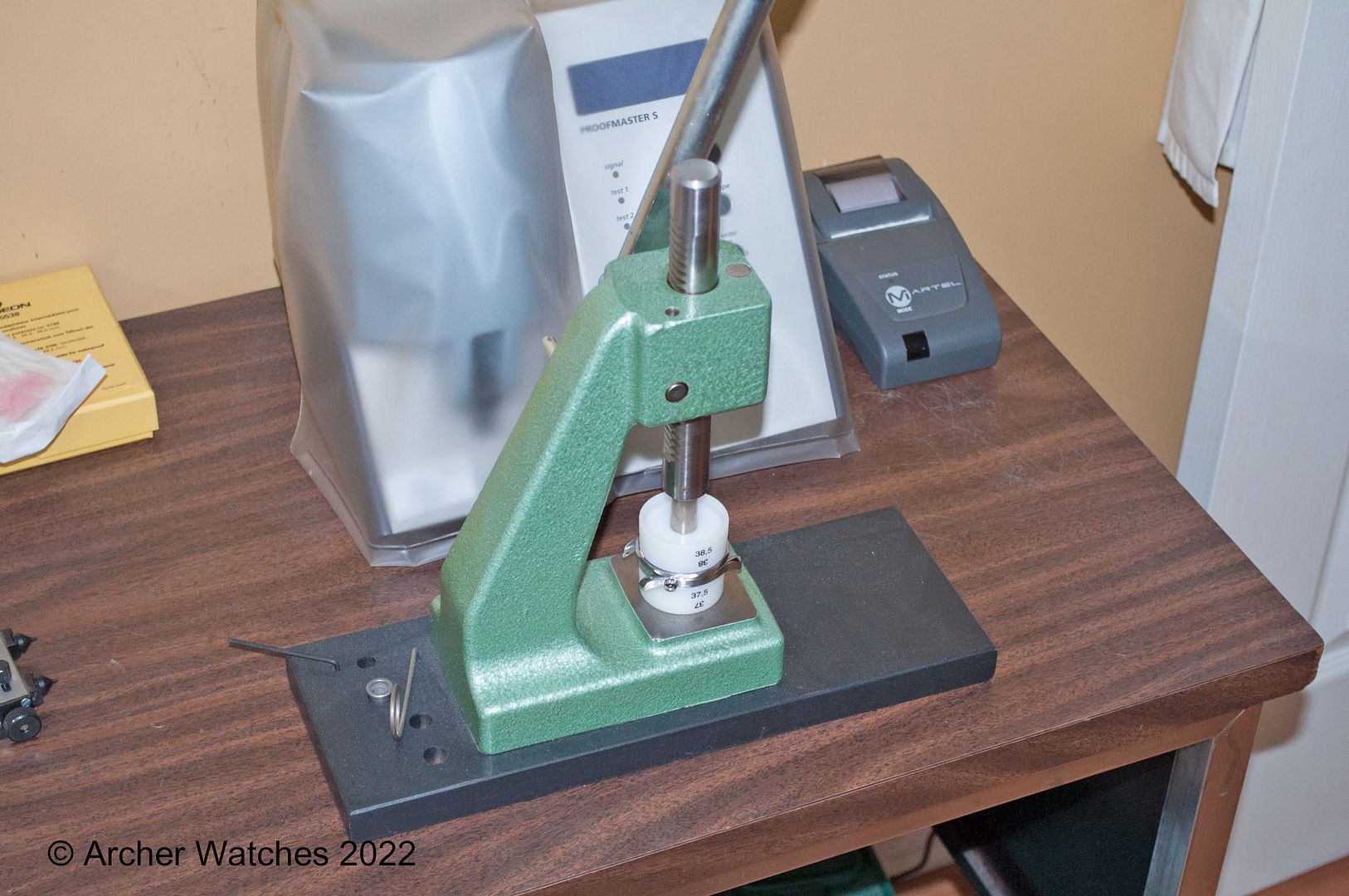 Then I use the press to snap the bezel back in place, making sure to line it up correctly: