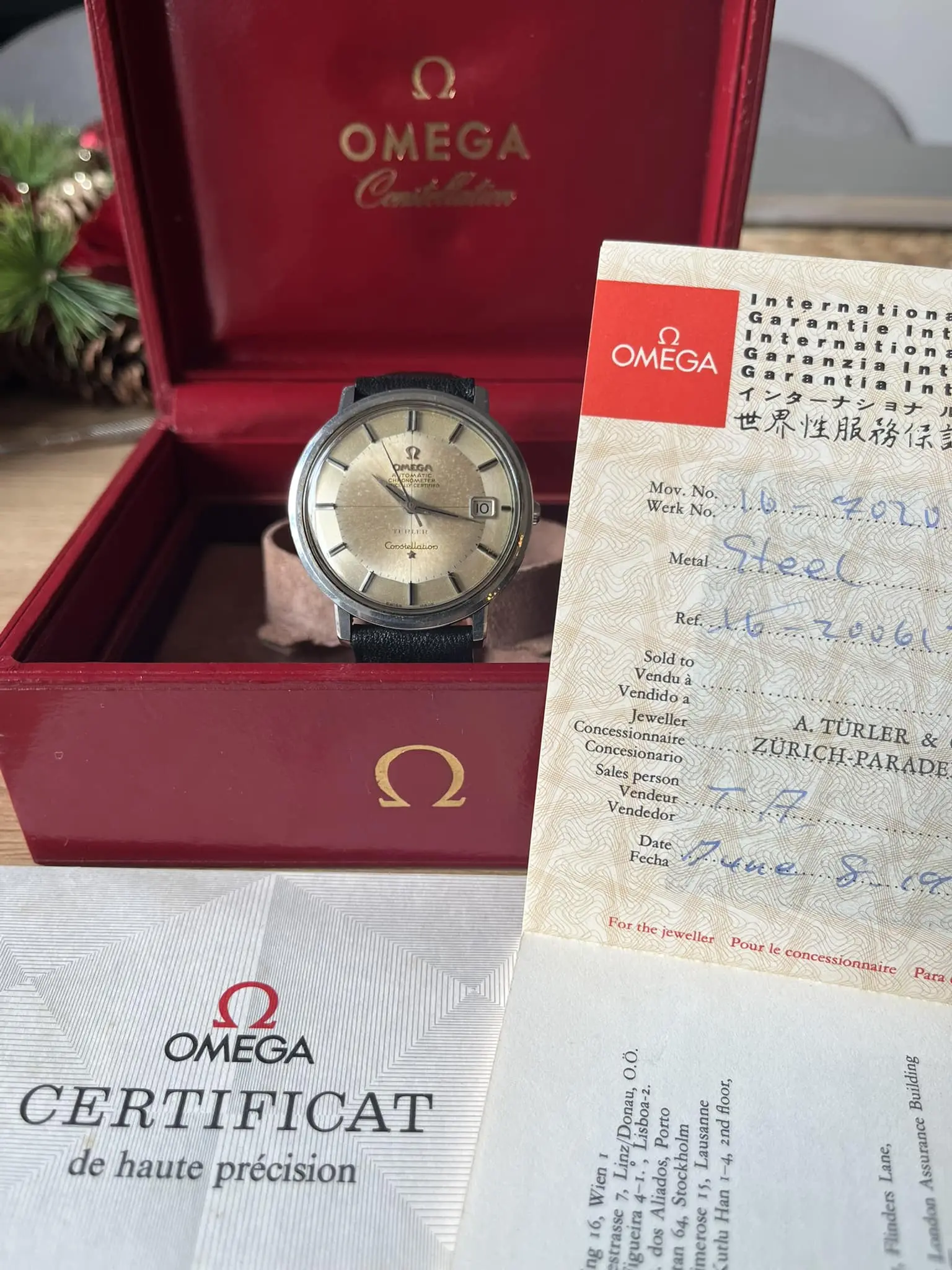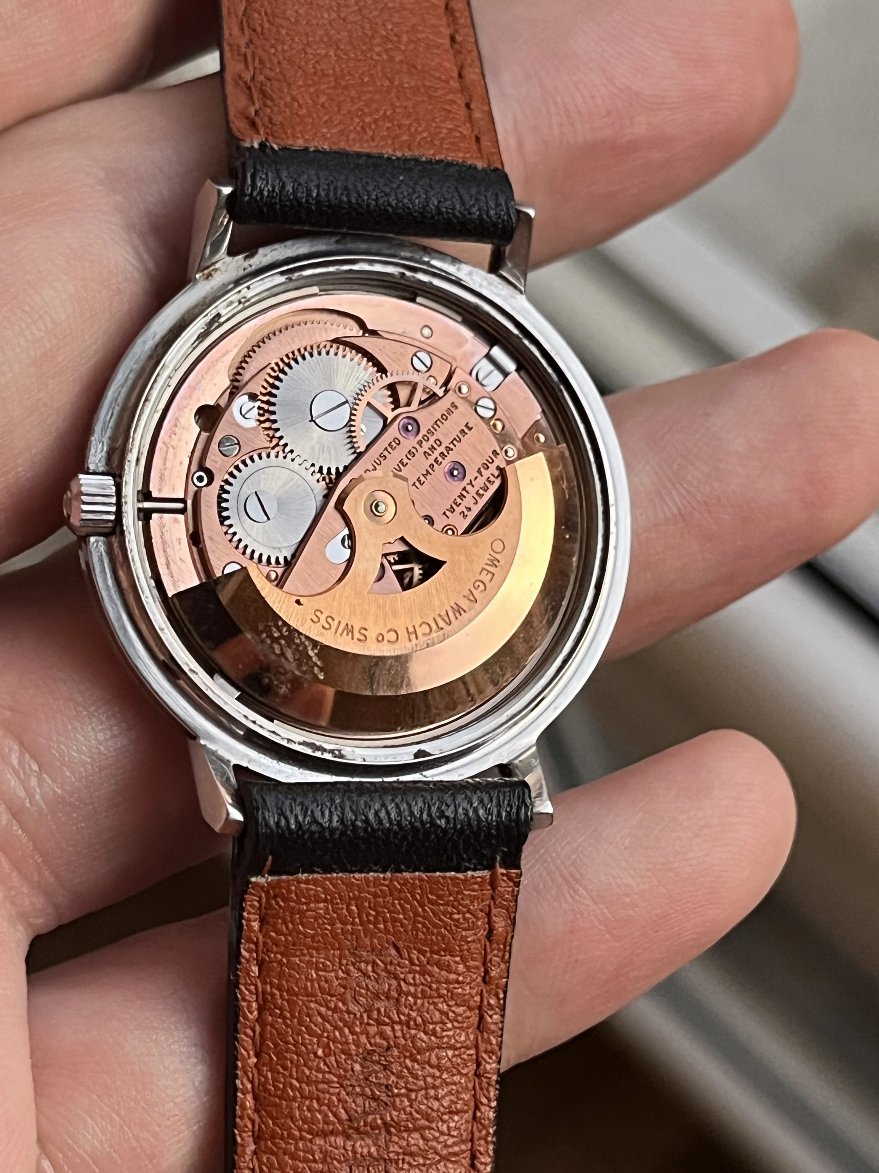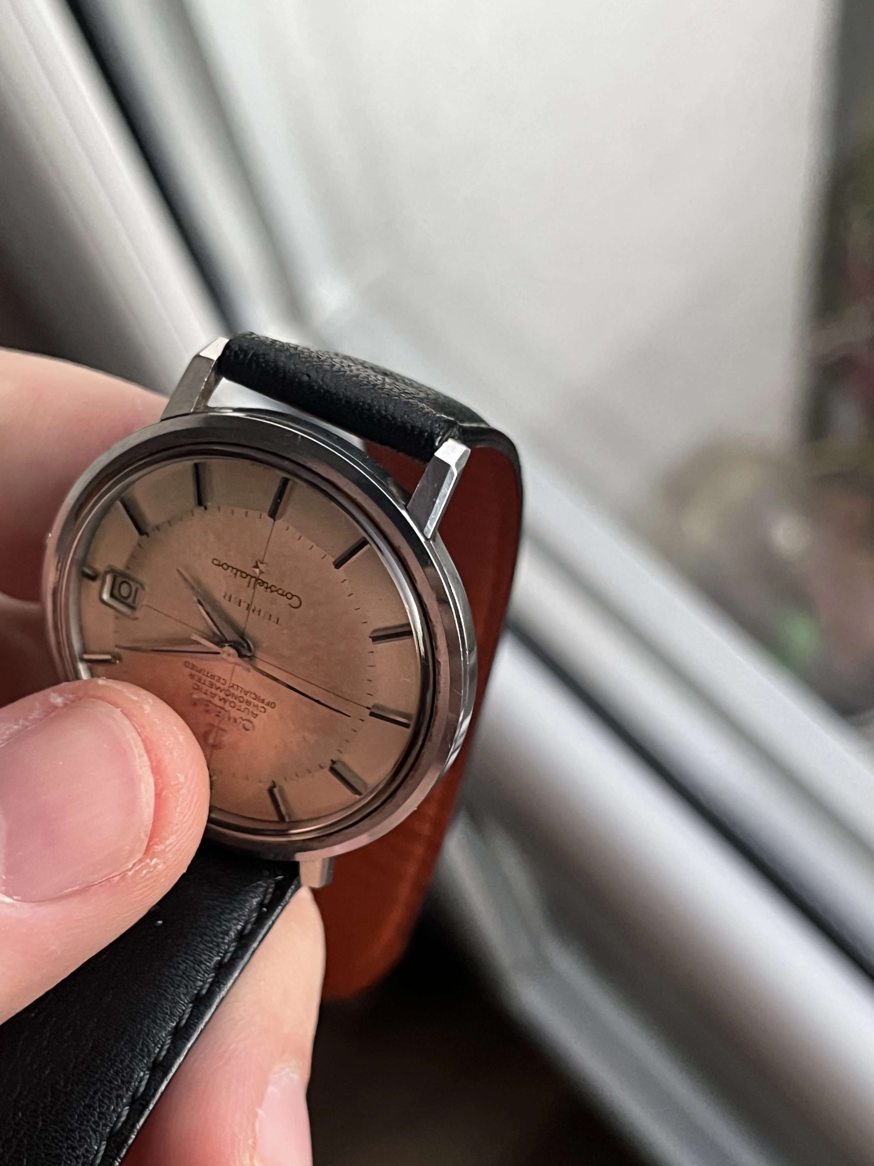 The patina is rather even and not distracting, decently sharp case, non-luminous dial and hands which is always preferable imo than having to deal with flaking tritium, the 35.5mm larger hidden crown cases are among my favorite Constellations.