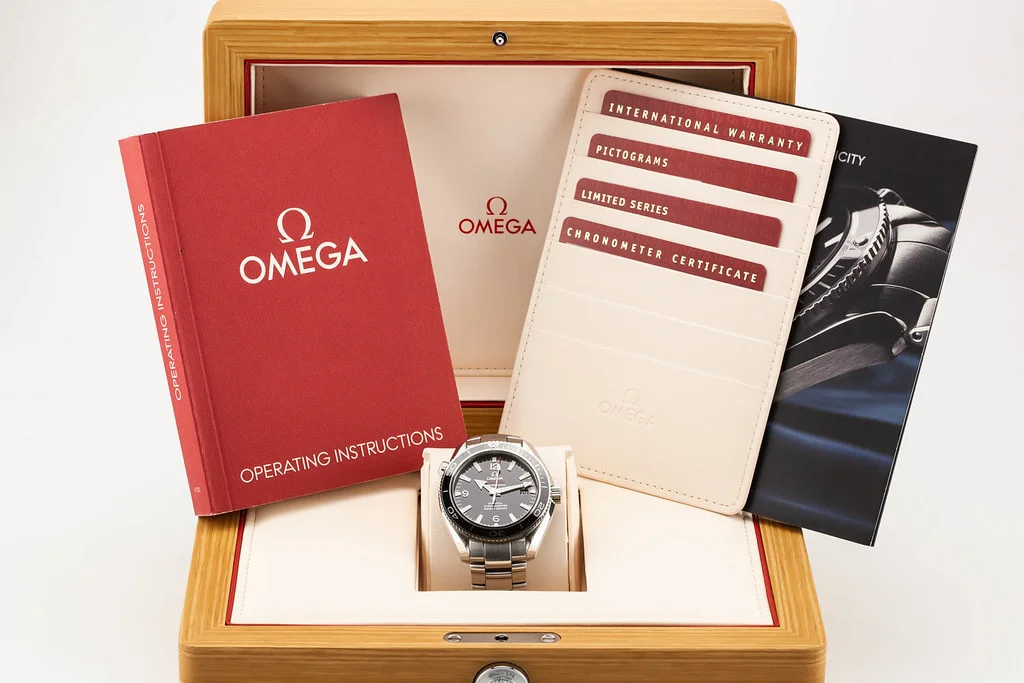 ·Up for sale is an excellent condition Omega Planet Ocean 2500 Liquidmetal Limited Edition 42mm Black Dial on Bracelet, reference # 222.30.42.20.01.001. It comes with everything shown - new boxes, papers, booklets, and Omega Warranty Card dated November 2010. One of 1948 pieces.